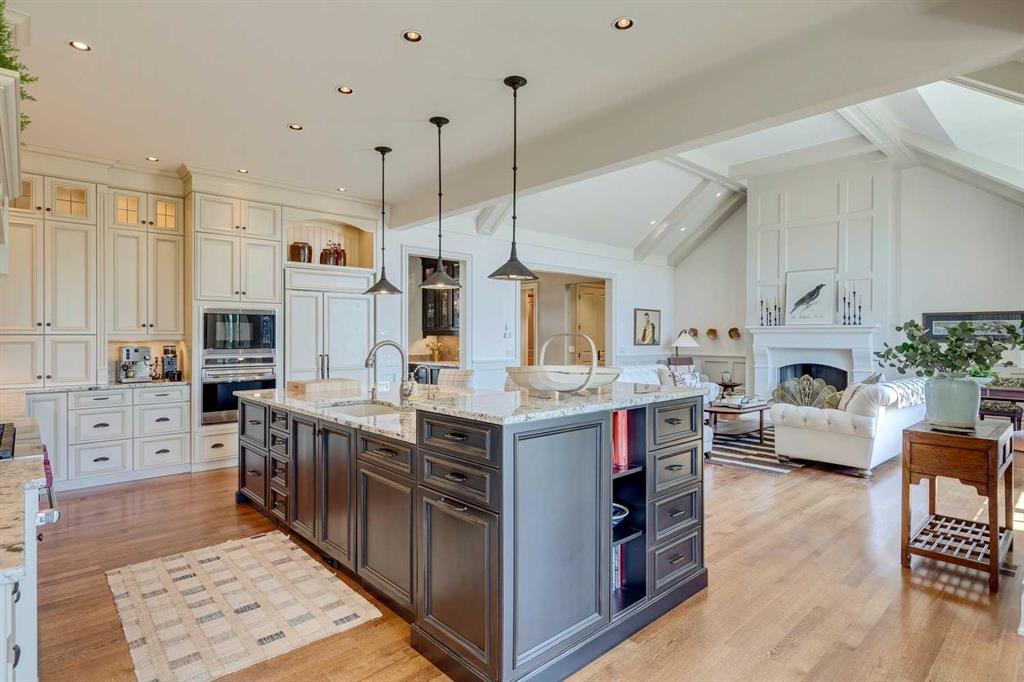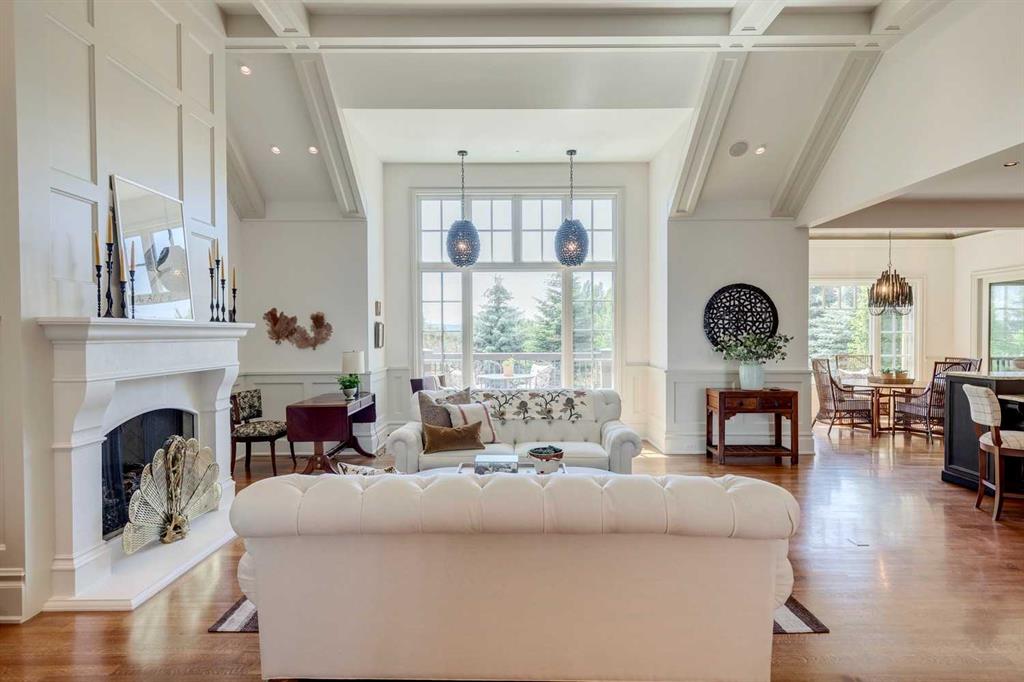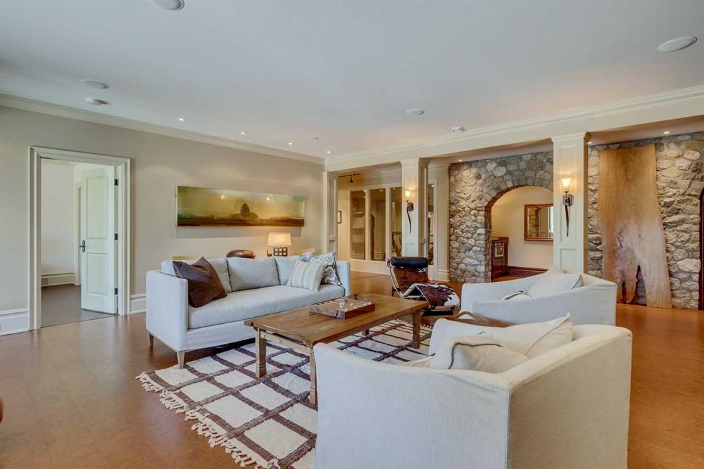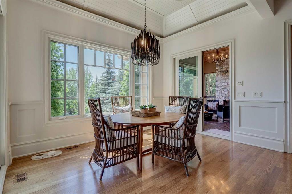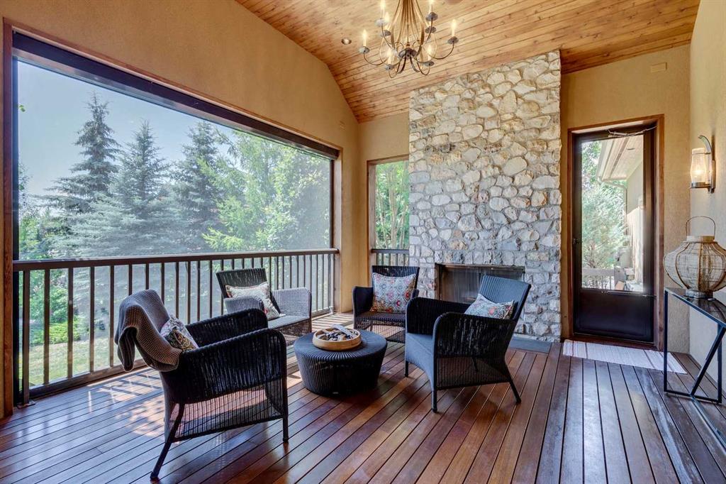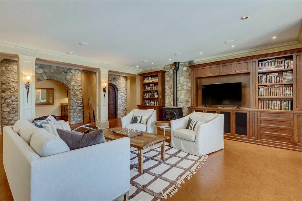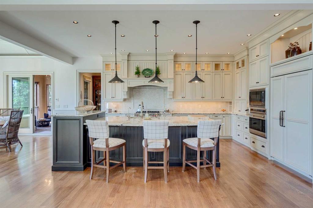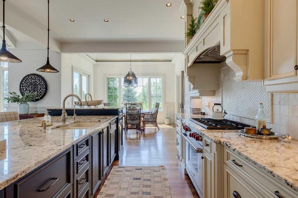 Nestled within the prestigious Morgans Rise estate community, this custom built 4 bedroom bungalow by Gallaghers Homes showcases refined craftsmanship with over 6,285 SF of luxurious living space, thoughtfully situated on a meticulously landscaped 2-acre parcel. Hear the gurgling water feature and the bird songs as you contemplate the beauty of the world famous Rocky Mountains. Step inside this luxurious architectural gem to experience premium finishes including site installed 1/4 sawn oak hardwood, cork flooring, glittering Schonbek chandeliers, intricate wainscoting and narrow French passage doors adorned with beveled and leaded glass. The grand foyer with its diamond-patterned limestone and marble tile opens to a sophisticated open-concept living area enhanced by Bermuda and double cornice ceilings. At the heart of the home is a chef's dream kitchen featuring a Wolf 6-burner gas range, wall oven and warming drawer, Subzero fridge and 2 fridge drawers and a Meile dishwasher. There is a spacious island, custom cabinetry, bronzed hardware and a walk-through pantry tucked behind the kitchen. Enjoy casual meals in the sunlit breakfast nook. Have morning coffee on the raised wood deck or cozy up with the gas heater or build a fire in the wood burning fireplace on the 3 season screened porch. A formal dining room with built-in bookshelves and wet bar makes entertaining a pleasure. The principal bedroom is a serene retreat complete with a sitting area, walk-in closet with a dressing table, and a spa-like 6-piece ensuite featuring a steam shower, soaker tub, towel warmer and double vanity. The main level also includes a den/flex room with fireplace, a laundry room and mudroom. The walk-out level is designed for comfort and entertaining. It is anchored by a spacious family room and gas fireplace that opens to the patio. There is a private guest suite with a 4 piece ensuite bath, 2 additional bedrooms, a full and half bath, fitness room, wine cellar, and wet bar, 2 oversized storage rooms, cedar closet and lockers. Other appliances include a Subzero wine fridge, Subzero bar fridge, Sharp microwave drawer, 2 Fisher & Paykel dishwasher drawers, central vacuum system and a front loading Meile front load washer and dryer. Additional features include 4 fireplaces, an elevator, heated 4-car garage, Split faced fieldstone detailing inside and out, central a/c, water softener and purifier, cistern, underground sprinklers and a security system. Recent updates include fresh Farrow and Ball paint, new site installed oak hardwood flooring in the principal bedroom, warm cork flooring in the walk out level bedrooms, new lighting, chandeliers and pot lights, updated electrical wiring, updated Mother Board and hydraulics on the elevator and additional fruit trees/berry plants/perennials. Plenty of room to build a pool or guest house. This is more than a home in the country; it's an opportunity for an elevated lifestyle in this exceptional property only 6 minutes from Calgary's West Side.