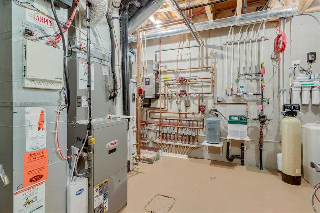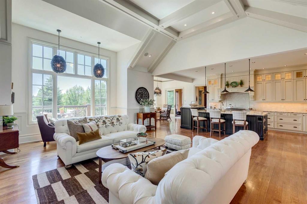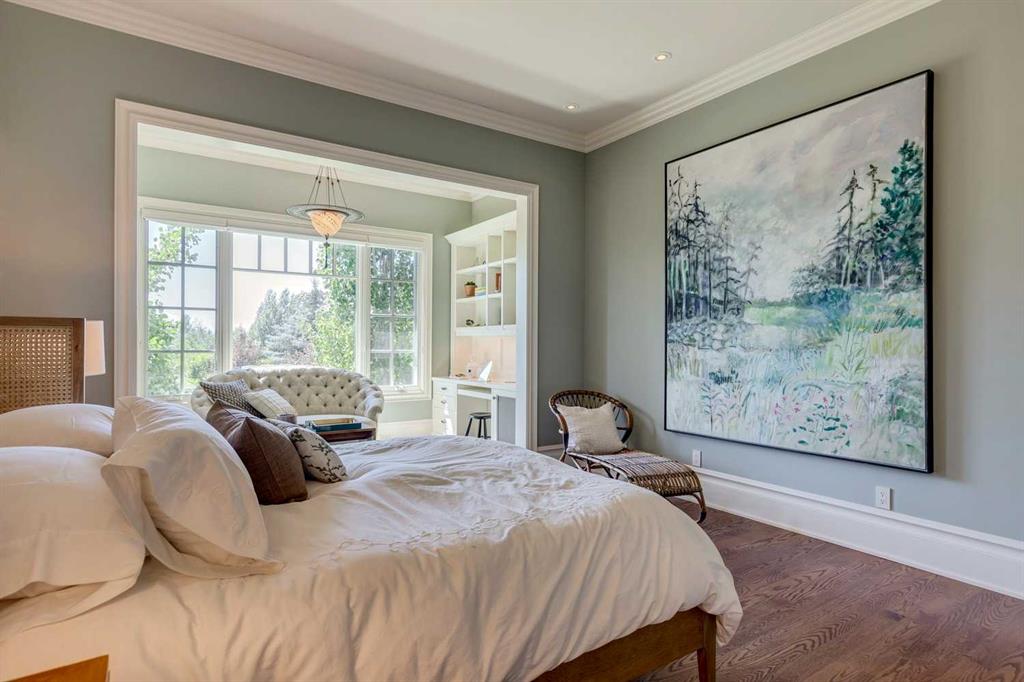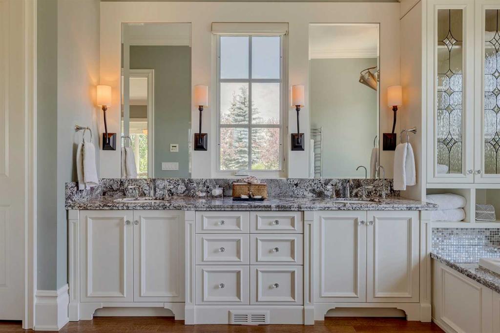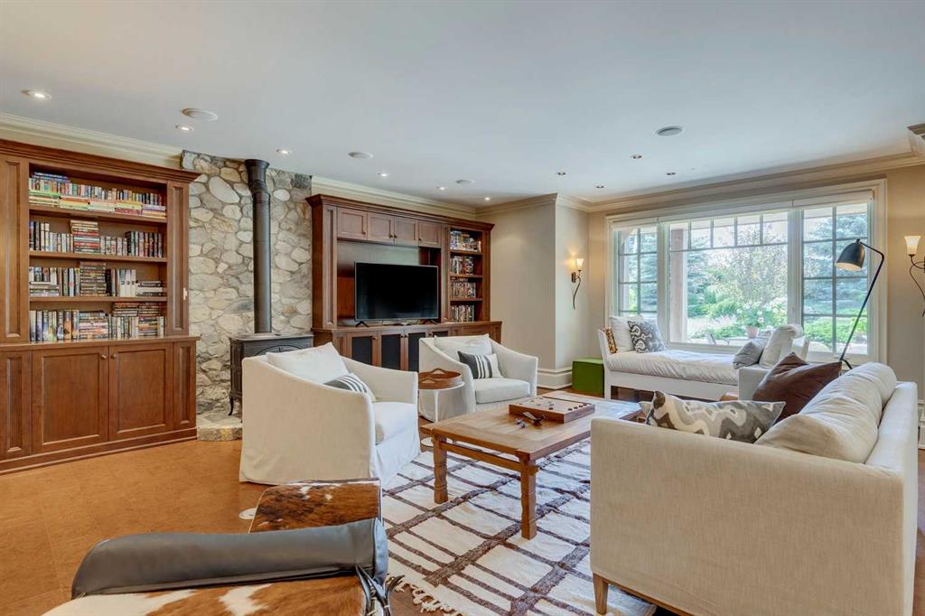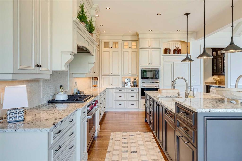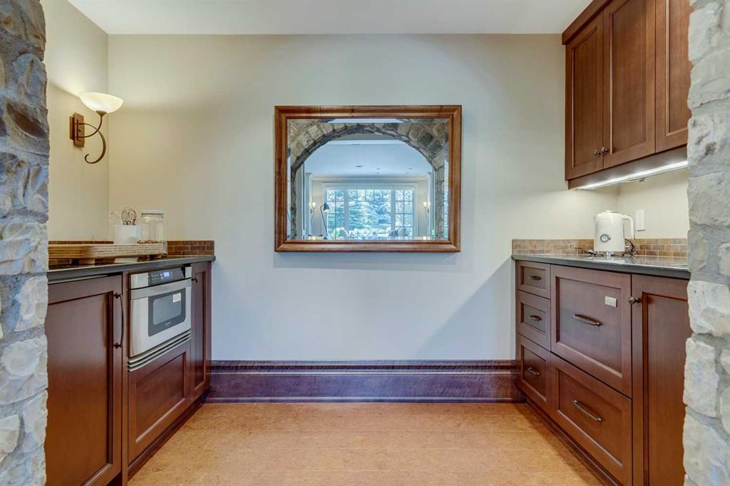 Nestled within the prestigious Morgans Rise estate community, this custom built 4 bedroom bungalow by Gallaghers Homes showcases refined craftsmanship with over 6,285 SF of luxurious living space, thoughtfully situated on a meticulously landscaped 2-acre parcel. Hear the gurgling water feature and the bird songs as you contemplate the beauty of the world famous Rocky Mountains. Step inside this luxurious architectural gem to experience premium finishes including site installed 1/4 sawn oak hardwood, cork flooring, glittering Schonbek chandeliers, intricate wainscoting and narrow French passage doors adorned with beveled and leaded glass. The grand foyer with its diamond-patterned limestone and marble tile opens to a sophisticated open-concept living area enhanced by Bermuda and double cornice ceilings. At the heart of the home is a chef's dream kitchen featuring a Wolf 6-burner gas range, wall oven and warming drawer, Subzero fridge and 2 fridge drawers and a Meile dishwasher. There is a spacious island, custom cabinetry, bronzed hardware and a walk-through pantry tucked behind the kitchen. Enjoy casual meals in the sunlit breakfast nook. Have morning coffee on the raised wood deck or cozy up with the gas heater or build a fire in the wood burning fireplace on the 3 season screened porch. A formal dining room with built-in bookshelves and wet bar makes entertaining a pleasure. The principal bedroom is a serene retreat complete with a sitting area, walk-in closet with a dressing table, and a spa-like 6-piece ensuite featuring a steam shower, soaker tub, towel warmer and double vanity. The main level also includes a den/flex room with fireplace, a laundry room and mudroom. The walk-out level is designed for comfort and entertaining. It is anchored by a spacious family room and gas fireplace that opens to the patio. There is a private guest suite with a 4 piece ensuite bath, 2 additional bedrooms, a full and half bath, fitness room, wine cellar, and wet bar, 2 oversized storage rooms, cedar closet and lockers. Other appliances include a Subzero wine fridge, Subzero bar fridge, Sharp microwave drawer, 2 Fisher & Paykel dishwasher drawers, central vacuum system and a front loading Meile front load washer and dryer. Additional features include 4 fireplaces, an elevator, heated 4-car garage, Split faced fieldstone detailing inside and out, central a/c, water softener and purifier, cistern, underground sprinklers and a security system. Recent updates include fresh Farrow and Ball paint, new site installed oak hardwood flooring in the principal bedroom, warm cork flooring in the walk out level bedrooms, new lighting, chandeliers and pot lights, updated electrical wiring, updated Mother Board and hydraulics on the elevator and additional fruit trees/berry plants/perennials. Plenty of room to build a pool or guest house. This is more than a home in the country; it's an opportunity for an elevated lifestyle in this exceptional property only 6 minutes from Calgary's West Side.