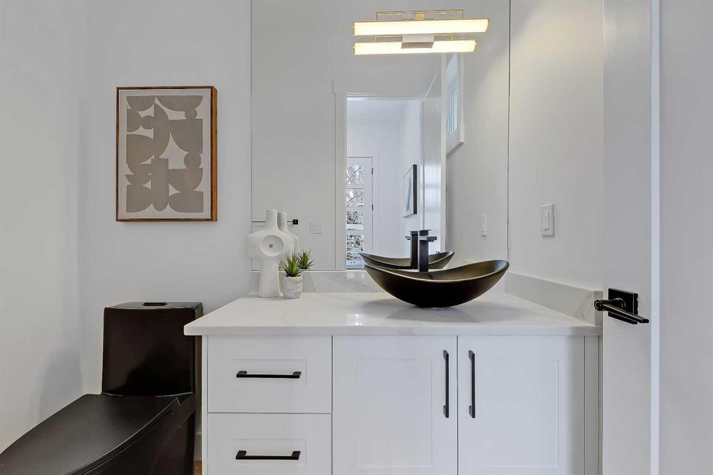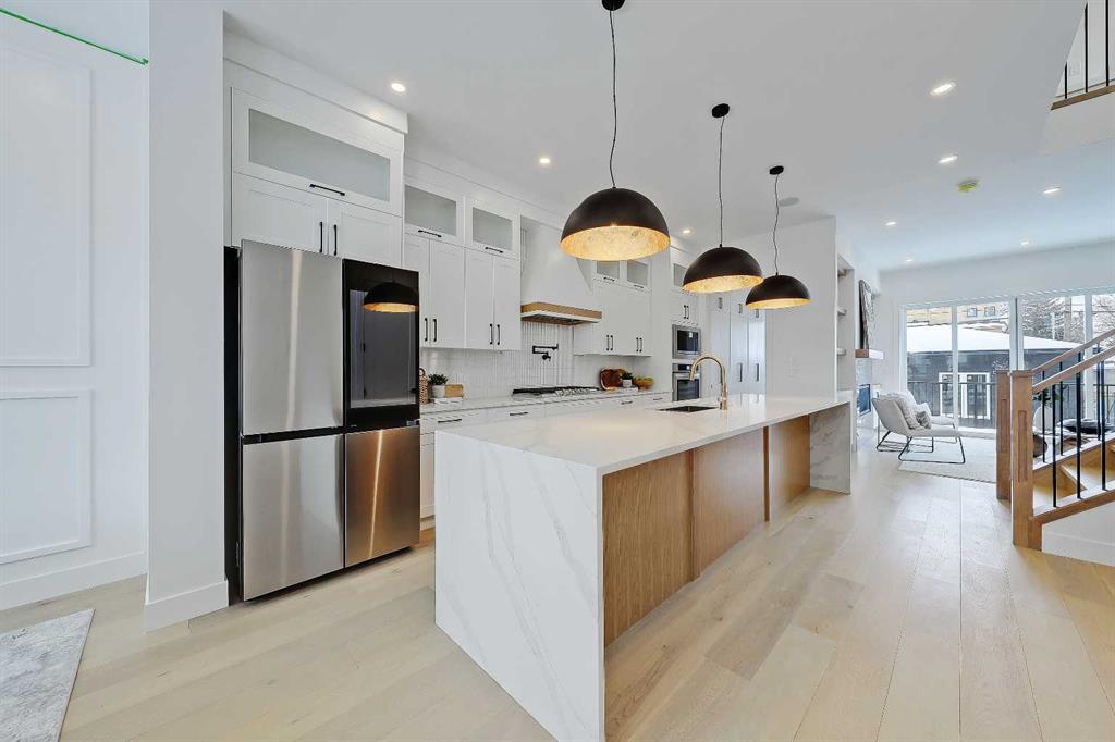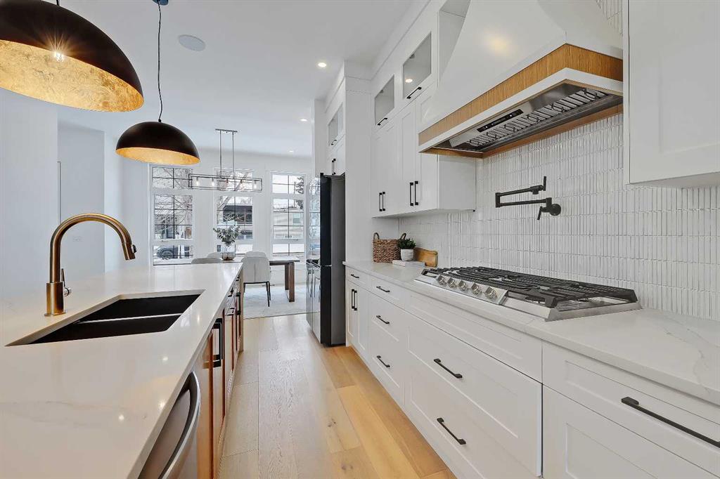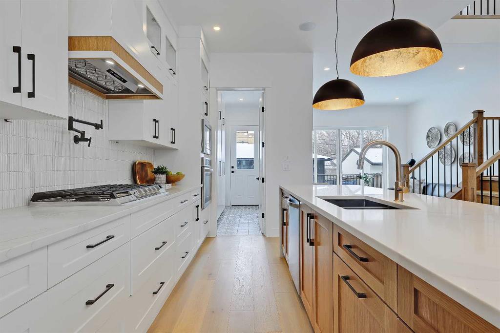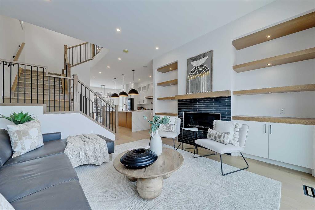 You’ll want to grab this one before it’s gone! This stunning, red brick SEMI-DETACHED home w/ 2-BED SUITE (subject to permits and approvals by the city) in beautiful GLENBROOK is everything your family wants and needs in an upgraded, brand-new infill home. Glenbrook offers you everything you want in an idyllic inner-city neighbourhood – quiet, tree-lined streets, kids playing in the parks, walkable amenities and local schools, with quick access to Downtown, shopping, the mountains, and more! You’re right by the Glenbrook Community Assoc., AE Cross School, the Glenbrook Park Off-Leash Area, Optimist/George Blundun Arenas, and Richmond Road for lots of shopping options! And your spacious home is just as great as the community it’s in! The open-concept main floor features 10-ft ceilings, engineered hardwood flooring, a large foyer with access to the elegant powder room, a dedicated dining room with views of the front yard, and a chef-inspired kitchen with direct/walkthrough access to the rear mudroom – perfect for grocery trips! The central kitchen features a large island with a quartz countertop, ceiling-height custom cabinetry, a full-height kit kat tile backsplash, and a lovely stainless steel appliance package with a gas cooktop. The mudroom enjoys built-in cabinetry and direct access to the double detached garage, and is separated from the rear living room, a nice touch for everyday convenience. The living room centres on an inset gas fireplace with built-in millwork and a large sliding glass door overlooking the backyard. Upstairs, enjoy more living space in the loft area that’s perfect for work-from-home w/ a built-in desk! The primary suite features a vaulted ceiling, a large walk-in closet, and an elegant 5-pc ensuite with tile floors, a freestanding soaker tub, dual sinks, a modern vanity with quartz counter, and a walk-in shower with full-height tile surround. There are also two secondary bedrooms, a modern 5-pc bath with dual sinks, and a large laundry room with quartz folding counter and tile floors. Through a private, secure side entrance, you enter the lower level and the 2-bed basement suite (subject to permits and approvals by the city), which features everything a young couple, mother-in-law, or renters need! This contemporary space comes with luxury vinyl plank flooring, a dedicated laundry room, a lovely kitchen with quartz counters and full-height cabinetry, an open living room, two good-sized bedrooms with built-in closets (one being a walk-in), and a fully equipped 4-pc bathroom with tub/shower combo with full-height tile surround. This is the perfect space for a mortgage helper or welcoming in family! Don’t hesitate – let’s chat about turning this brand-new semi-detached infill into your family’s new home today!