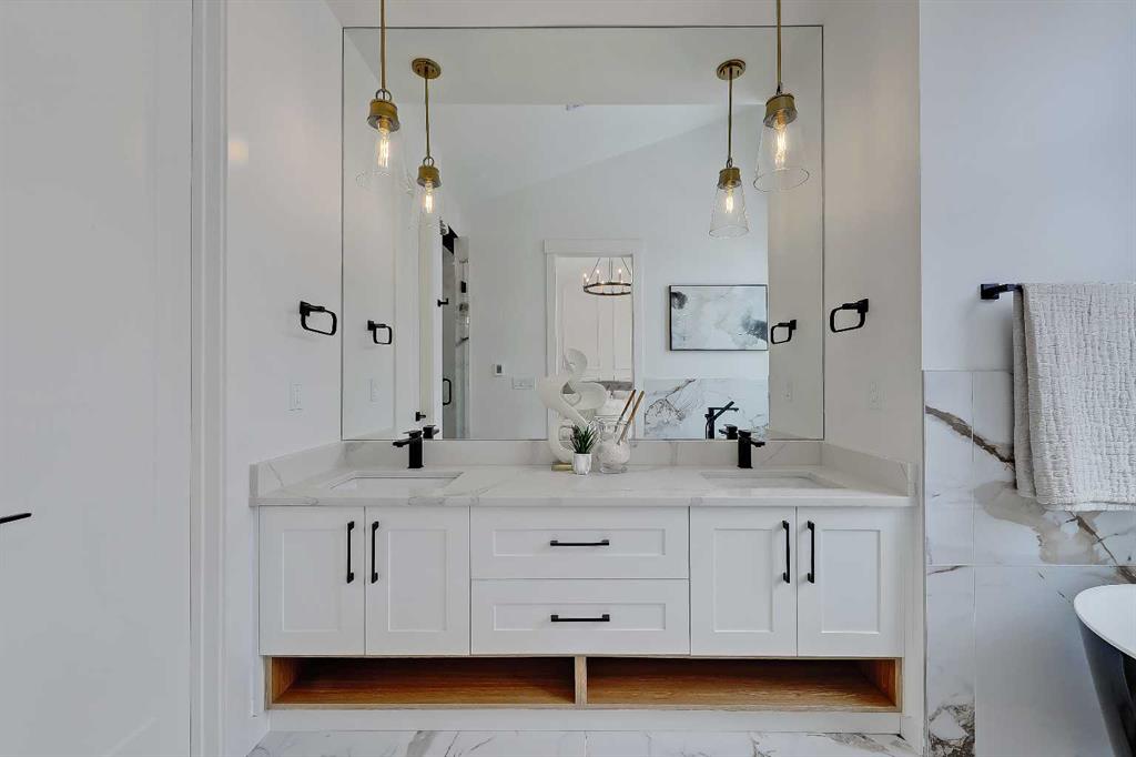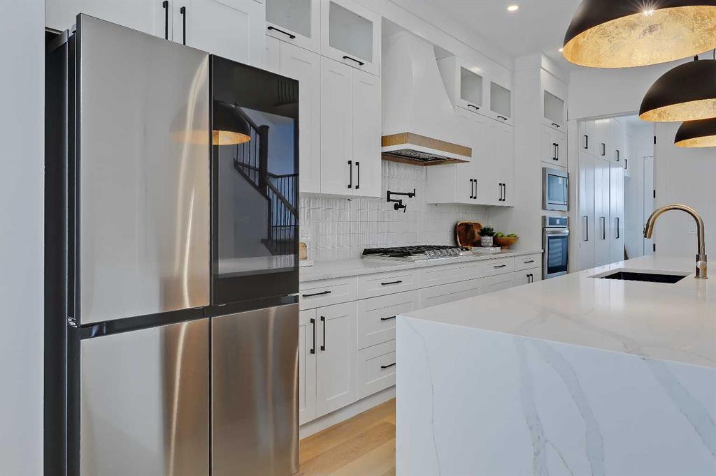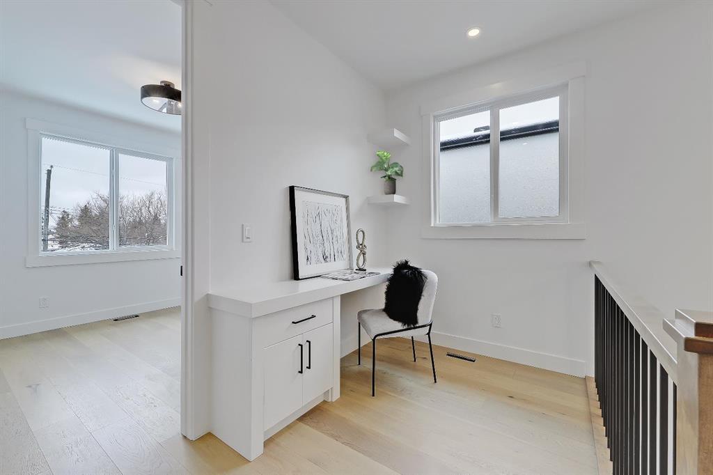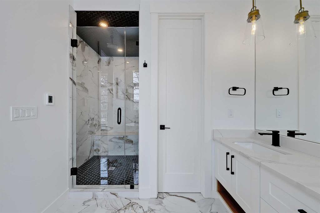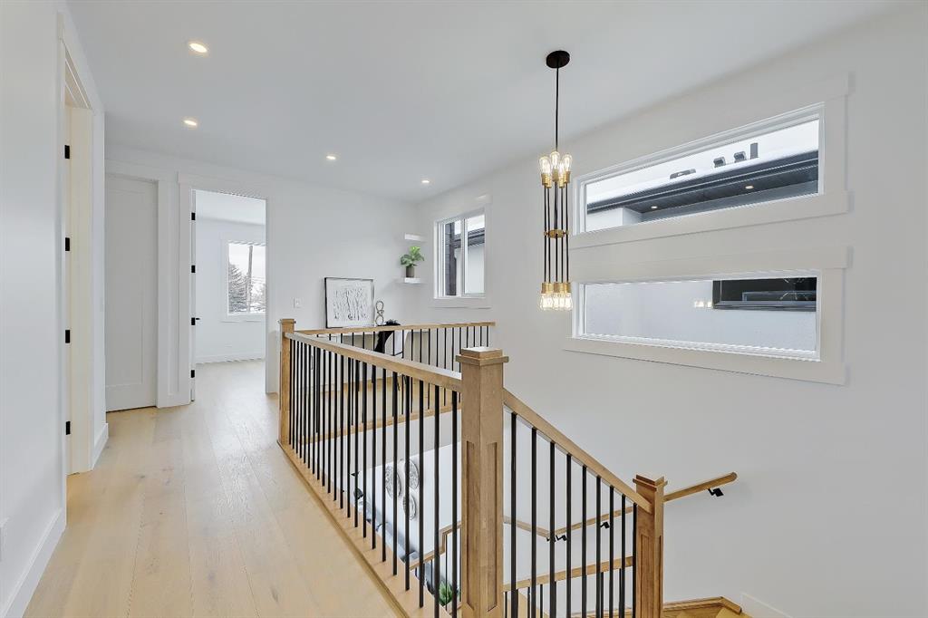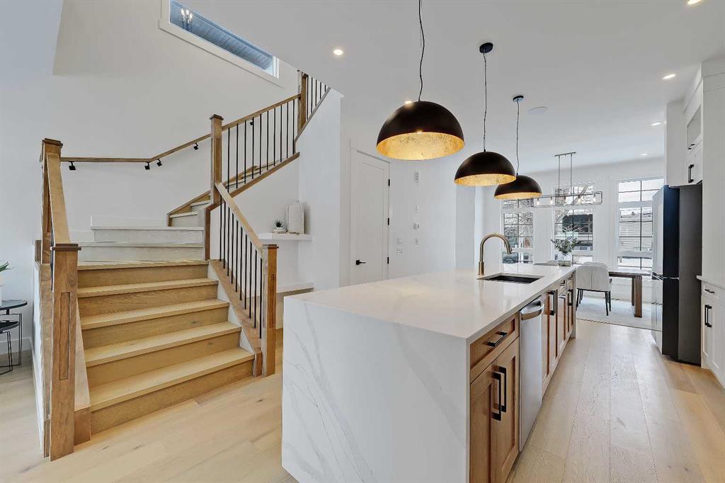 You’ll want to grab this one before it’s gone! This stunning, red brick SEMI-DETACHED home w/ 2-BED SUITE (subject to permits and approvals by the city) in beautiful GLENBROOK is everything your family wants and needs in an upgraded, brand-new infill home. Glenbrook offers you everything you want in an idyllic inner-city neighbourhood – quiet, tree-lined streets, kids playing in the parks, walkable amenities and local schools, with quick access to Downtown, shopping, the mountains, and more! You’re right by the Glenbrook Community Assoc., AE Cross School, the Glenbrook Park Off-Leash Area, Optimist/George Blundun Arenas, and Richmond Road for lots of shopping options! And your spacious home is just as great as the community it’s in! The open-concept main floor features 10-ft ceilings, engineered hardwood flooring, a large foyer with access to the elegant powder room, a dedicated dining room with views of the front yard, and a chef-inspired kitchen with direct/walkthrough access to the rear mudroom – perfect for grocery trips! The central kitchen features a large island with a quartz countertop, ceiling-height custom cabinetry, a full-height kit kat tile backsplash, and a lovely stainless steel appliance package with a gas cooktop. The mudroom enjoys built-in cabinetry and direct access to the double detached garage, and is separated from the rear living room, a nice touch for everyday convenience. The living room centres on an inset gas fireplace with built-in millwork and a large sliding glass door overlooking the backyard. Upstairs, enjoy more living space in the loft area that’s perfect for work-from-home w/ a built-in desk! The primary suite features a vaulted ceiling, a large walk-in closet, and an elegant 5-pc ensuite with tile floors, a freestanding soaker tub, dual sinks, a modern vanity with quartz counter, and a walk-in shower with full-height tile surround. There are also two secondary bedrooms, a modern 5-pc bath with dual sinks, and a large laundry room with quartz folding counter and tile floors. Through a private, secure side entrance, you enter the lower level and the 2-bed basement suite (subject to permits and approvals by the city), which features everything a young couple, mother-in-law, or renters need! This contemporary space comes with luxury vinyl plank flooring, a dedicated laundry room, a lovely kitchen with quartz counters and full-height cabinetry, an open living room, two good-sized bedrooms with built-in closets (one being a walk-in), and a fully equipped 4-pc bathroom with tub/shower combo with full-height tile surround. This is the perfect space for a mortgage helper or welcoming in family! Don’t hesitate – let’s chat about turning this brand-new semi-detached infill into your family’s new home today!