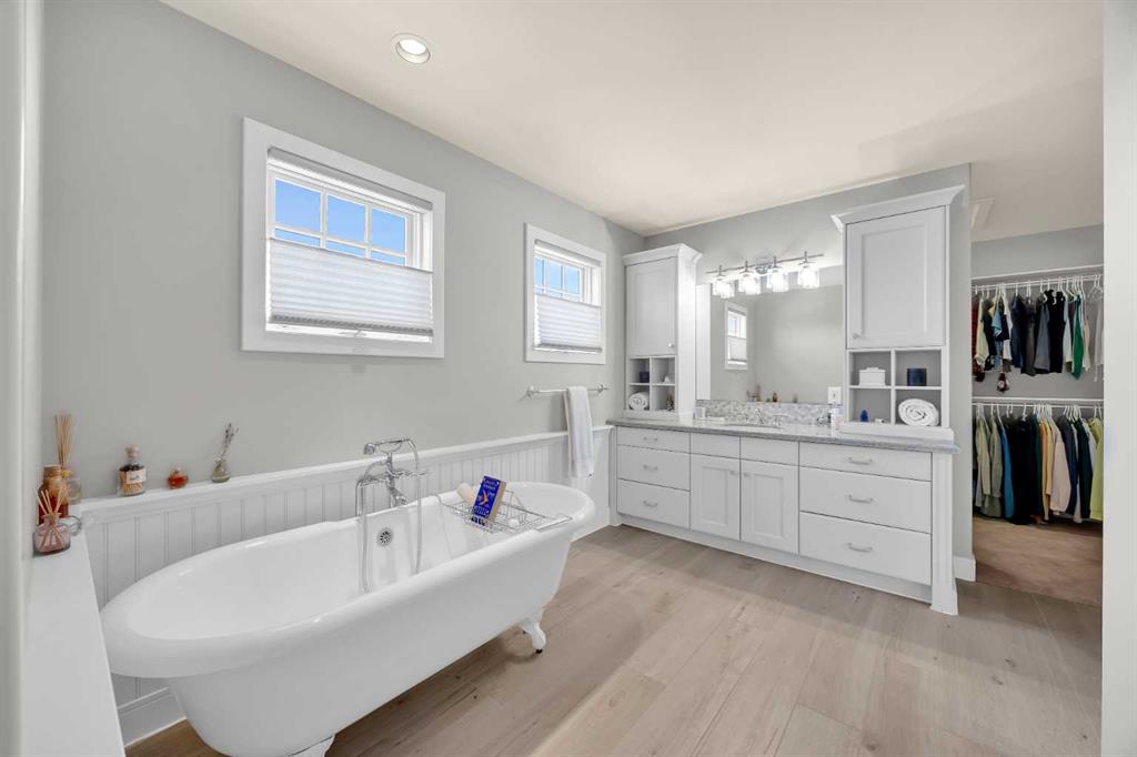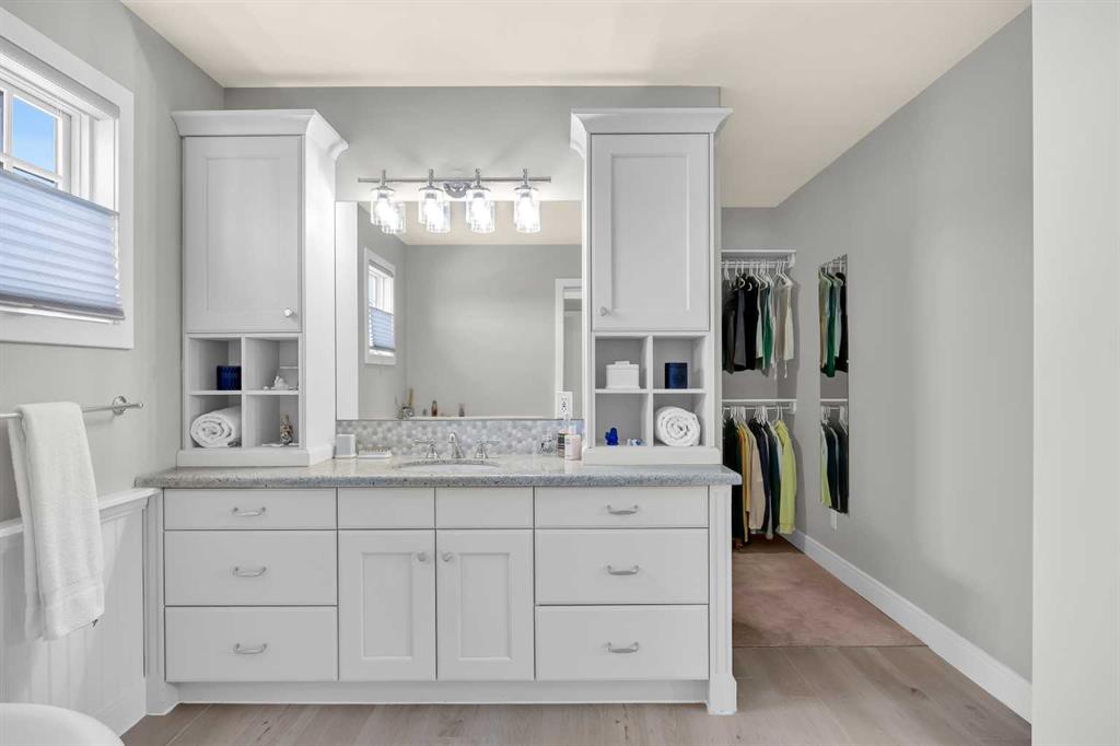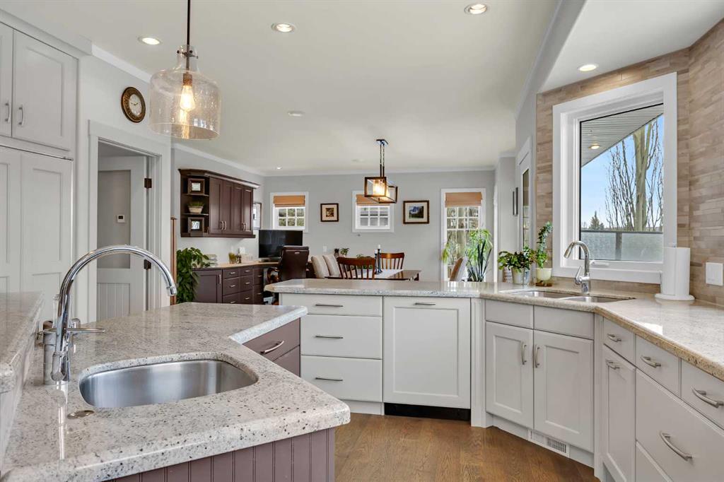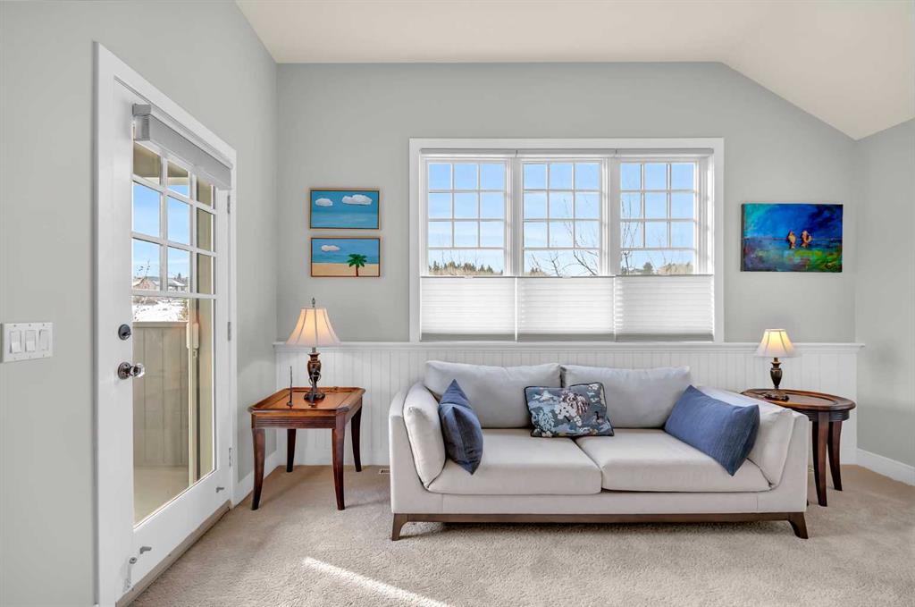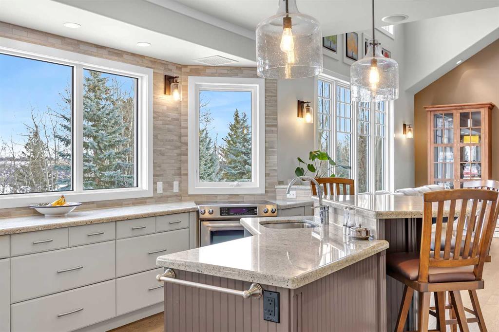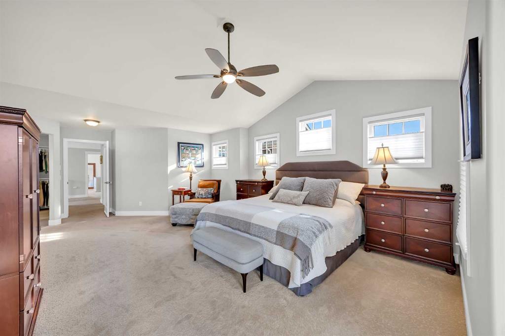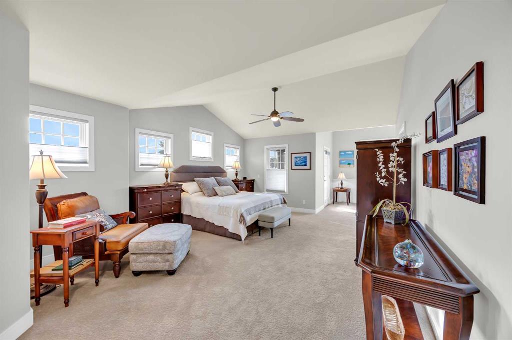 Perfectly positioned, the home enjoys SERENE WATER VIEWS of Emerald Bay to the east and unobstructed views of the rolling fairways of Springbank Links Golf Course to the west. Set on a MANAGEABLE 0.28 ACRE-LOT, it delivers acreage-style privacy with significantly less upkeep.