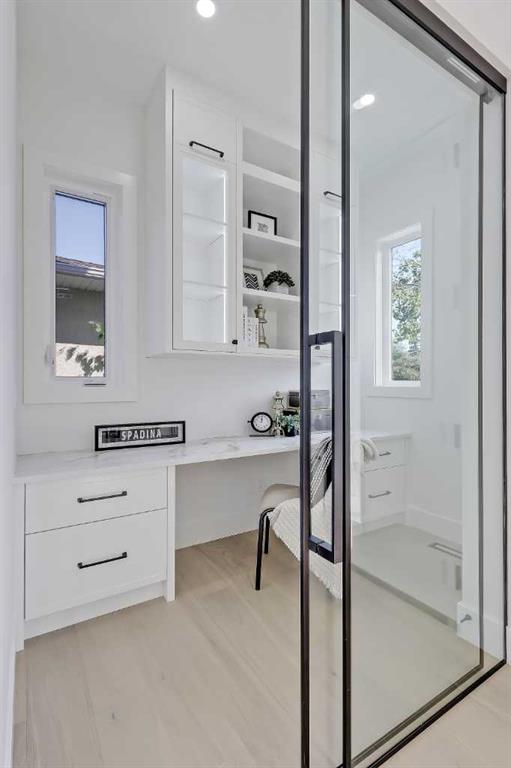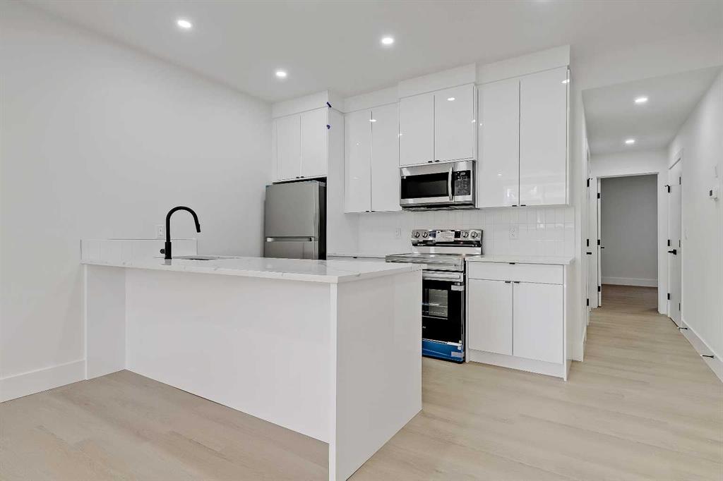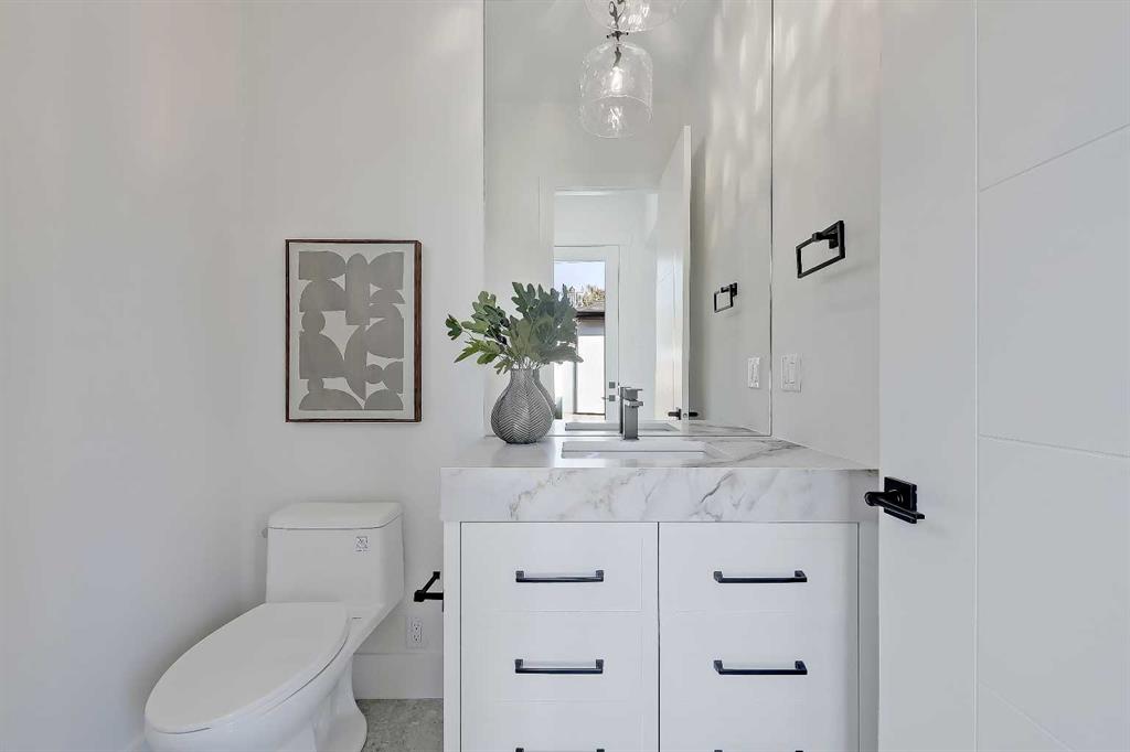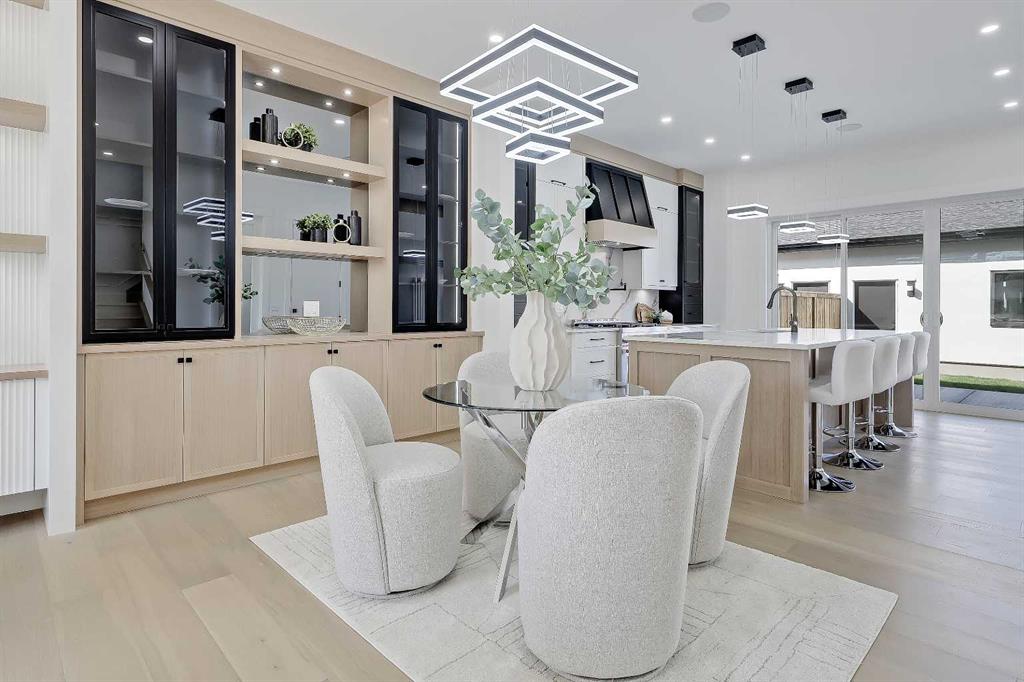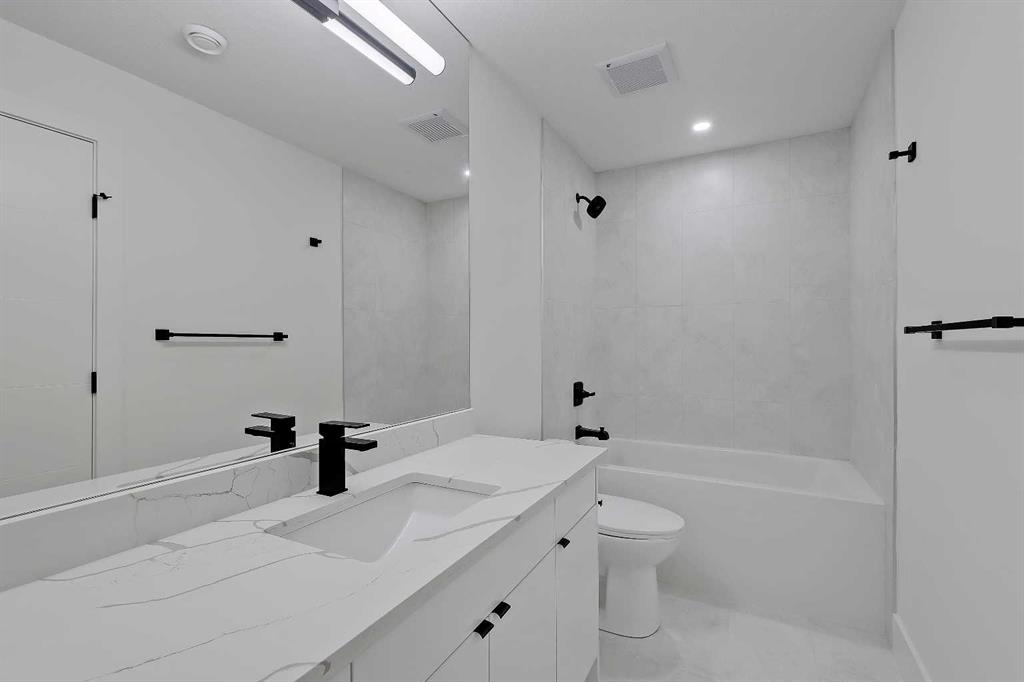 Tucked into the heart of SHAGANAPPI, this brand new 5-BED, SEMI-DETACHED home w/ LEGAL 2-BED SUITE (City approved) blends modern luxury with everyday comfort. Step through the arched entry to a welcoming foyer w/ walk-in coat closet, plus a stylish front OFFICE framed by glass doors, built-in desk & cabinetry—ideal for work-from-home. Wide-plank hardwood flows into the open-concept main floor, designed for living and entertaining. The living room centers on a sleek gas fireplace wall w/ designer tile surround and custom built-ins w/ inset lighting. At the back, the chef’s kitchen steals the show, anchored by a dedicated dining area w/ designer lighting, glass-front built-ins & in-cabinet lighting. High-end S/S appliances—gas range, custom hood fan, and DOUBLE WIDE FULL FRIDGE/FULL FREEZER, microwave & dishwasher—shine against an oversized quartz island built for gathering and stunning quartz backsplash with pot filler. A WALK-IN PANTRY w/ custom shelving adds smart storage. Bi-parting doors open to a large patio, extending the space outdoors. A chic powder room and mudroom w/ custom finishes complete this level. Upstairs, the primary suite feels like a retreat, w/ vaulted ceilings and oversized windows. The spa-inspired ensuite has it all: freestanding soaker tub, huge glass shower w/built in bench & rough in for steam, dual vanities w/ makeup desk, plus a dreamy walk-in closet. Two more bedrooms—each w/ TRAY CEILINGS with built-in lighting—share a stylish Jack & Jill bath w/ separated vanity & bath areas. The loft/study offers open shelving and flexible space for reading, working, or relaxing. A well-planned laundry room finishes this floor. The fully finished EXTENDED BASEMENT adds almost 1100sqft of additional living space. The legal 2-bed suite features quartz counters, S/S appliances, custom cabinets, private laundry, and its own side entrance w/ built-in storage. A bonus third space can connect to the suite or be locked off as a private GYM for the main home making it perfect for guests, family, or a rental incentive. Set in the vibrant Shaganappi community, this home puts Calgary’s best at your door. Golf at Shaganappi, stroll parks and pathways, or zip downtown in minutes. With great schools, trendy restaurants, boutique shopping, and easy transit nearby, this is modern city living at its best. All you have to do is move in! *Photos from show suite, finish may vary