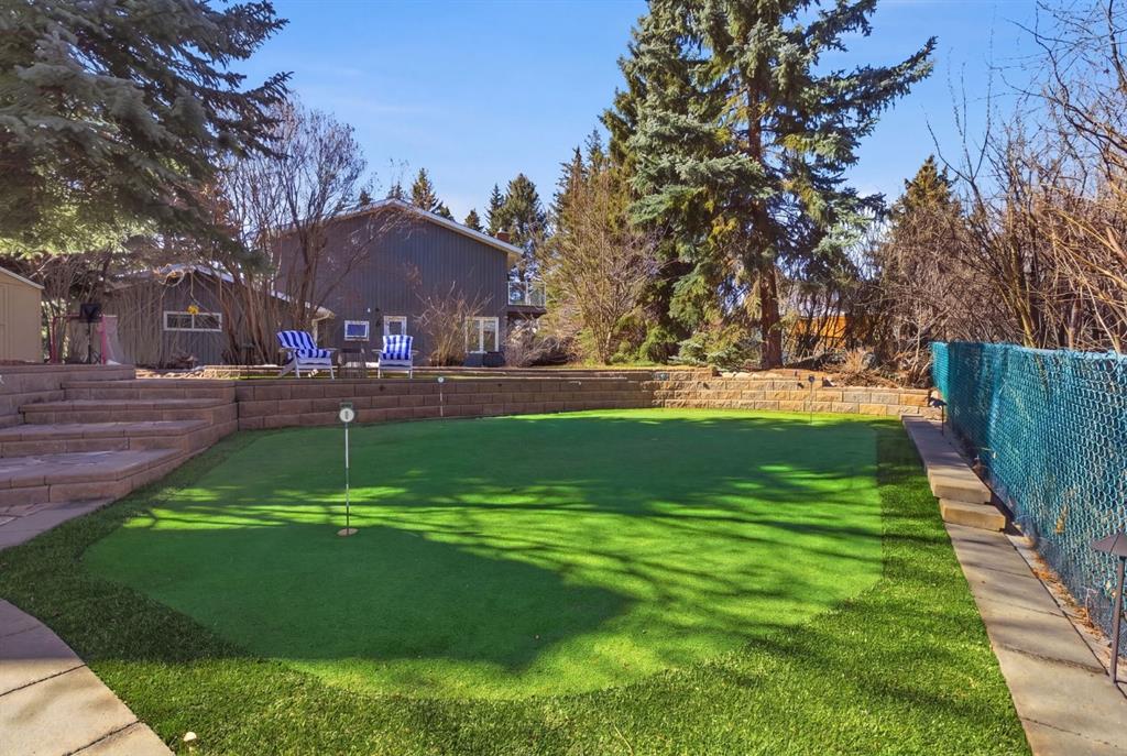 Set on an expansive pie-shaped lot that offers over 10,000 sq ft with an impressive 150-foot wide rear yard, this property delivers both space and seclusion. Stunning stone work and mature landscaping surrounds the home, while the private backyard offers multiple areas to relax, entertain, and enjoy the space, including your very own putting green. It is a setting that is incredibly hard to replicate in Calgary.