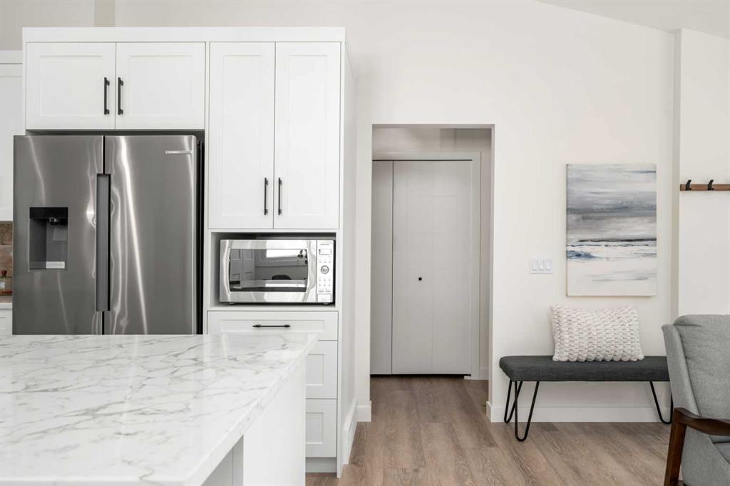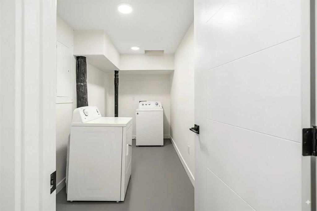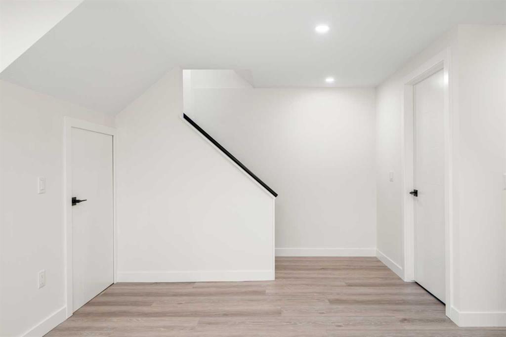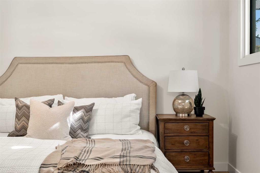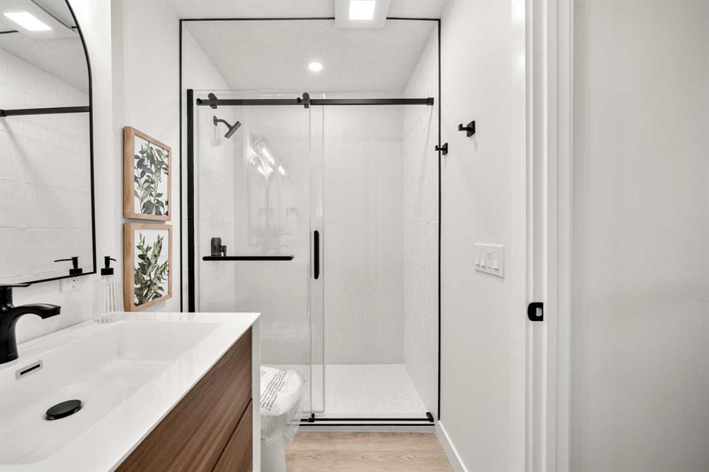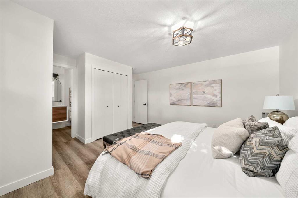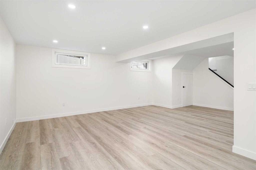 Welcome to BRENTWOOD, one of Calgary’s most beloved family communities, where this PERMITTED RENOVATION transforms a classic bungalow into a modern retreat. Set on a MASSIVE PIE LOT surrounded by mature trees, this residence combines mid-century character with today’s luxury upgrades for a lifestyle that is both stylish and functional. The main floor opens under soaring CATHEDRAL CEILINGS, where a bright front living room looks onto a quiet street through oversized windows. Wide-plank LVP FLOORING runs throughout, enhancing the clean lines of the OPEN CONCEPT LAYOUT. The chef-inspired kitchen is anchored by a large island with flush eating bar, STAINLESS STEEL APPLIANCES with a chimney hood fan, full-height cabinetry, and a BRICK CERAMIC BACKSPLASH. A defined DINING AREA comfortably fits a family table, creating a natural gathering hub for everyday life. The separate sleeping quarters offers three bedrooms, including a spacious PRIMARY SUITE with dual closets and a SPA-LIKE ENSUITE featuring a floating dual vanity and stand-up shower. Two additional bedrooms and a 4pc main bath with soaker tub complete this level, while a handy laundry chute adds convenience for busy families. Downstairs, the FULLY DEVELOPED BASEMENT offers incredible versatility with a large rec room designed for movie nights and games, plus the flexibility to convert part of the space into a 5th bedroom thanks to an existing egress window. this level also includes a 4th bedroom with walk-in closet, a modern 3pc bath with stand-up shower, dedicated laundry room, and abundant storage. Outdoors, the landscaped yard is a true retreat. An EXTERIOR BRICK FIREPLACE adds timeless charm for evenings under the trees, while a COVERED PATIO offers space to barbeque and unwind in every season. With room for a vegetable garden, a shed for storage, and plenty of green space for kids to play, this lot is both beautiful and functional. The DOUBLE DETACHED GARAGE IS INSULATED, HEATED, and features a new door and opener, offering winter comfort and year-round utility. Families will love the walkable proximity to MULTIPLE LEVELS OF SCHOOLING, the UNIVERSITY OF CALGARY, BRENTWOOD LRT STATION, the public library, shopping centres, and community recreation. Nature enthusiasts will appreciate being just minutes from NOSE HILL PARK, one of Calgary’s largest green spaces. This renovated bungalow delivers the design quality of a modern luxury home while preserving the warmth of a family-friendly Brentwood location!