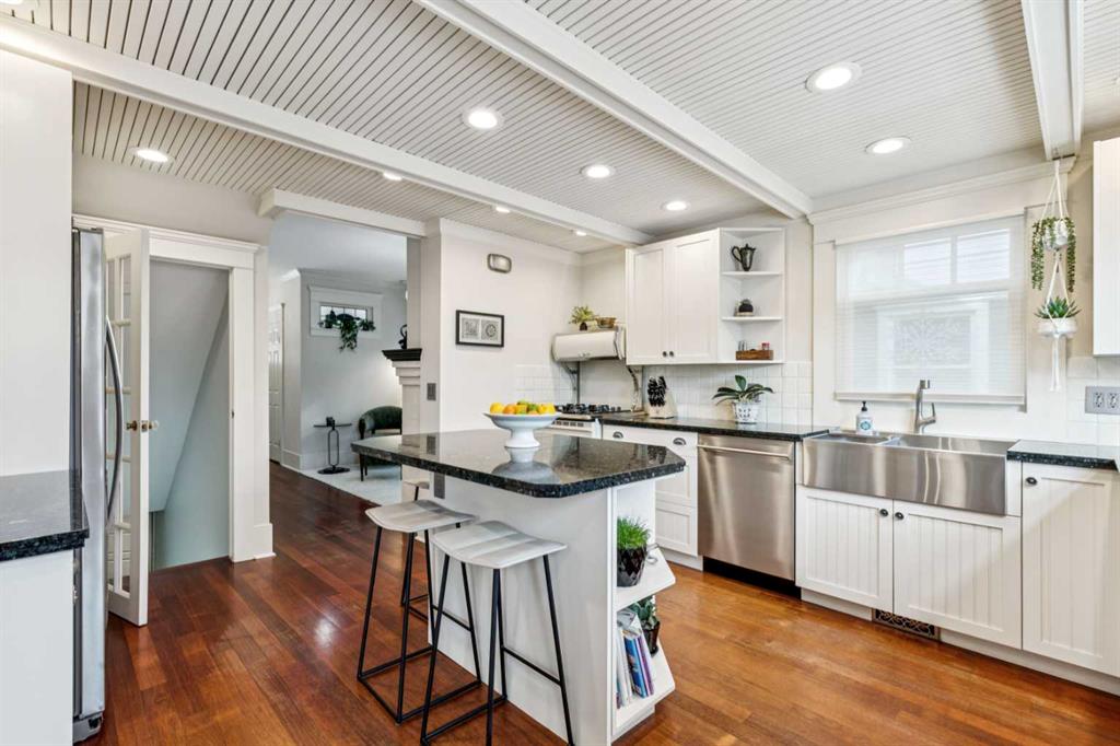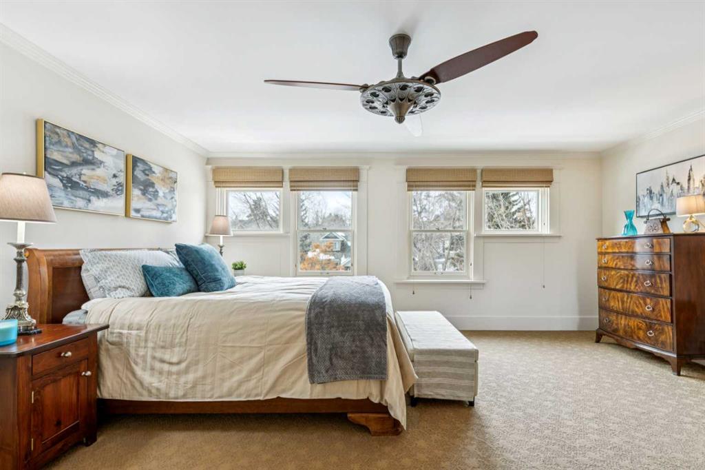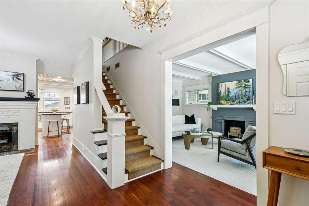 OPEN HOUSE Saturday March 14th from 2-4. Don't miss out on this charming, beautiful move in ready 2 story, 4-bedroom home boasting 2946sqft of living space. When you enter the home, you will notice that the bright living room and large dining room have maintained their charm, with impressive details including exotic hardwood floors, coffered ceilings and two gorgeous decorative fireplaces. On this level, there is also an inviting sitting room, half bath and spacious updated kitchen with granite, stainless steel appliances, island and nurtural cabinetry. The upper level has an ideal layout with a huge master bedroom with a walk-in closet, an extra closet and a spa like ensuite. This level is also home to 2 more good sized bedrooms, laundry room and a spacious family bath perfect for two kids to share. The lower level includes a large family room, den/bedroom, loads of storage and an immaculate updated mechanical room. Enjoy the low maintenance back yard with BBQ gas line, large west facing front porch and insulated double garage. Updates include Hunter Douglas blinds throughout, most windows on the main level updated with automated blinds and all upper-level updated double hung Pella windows that open from top to bottom for amazing summer airflow. Other updates are newer washer/dryer and fridge all 2024, redone front and back decks, new Pella front door and exterior paint all done in 2025, two sump pumps and back flow valve. Enjoy the stunning perennial rock garden in the front yard and treed back yard for summer privacy with quaking aspens, chokecherry, nine bark and rare river birch. Walk to amazing schools, river path, shopping and the Glencoe form this prestigious address.