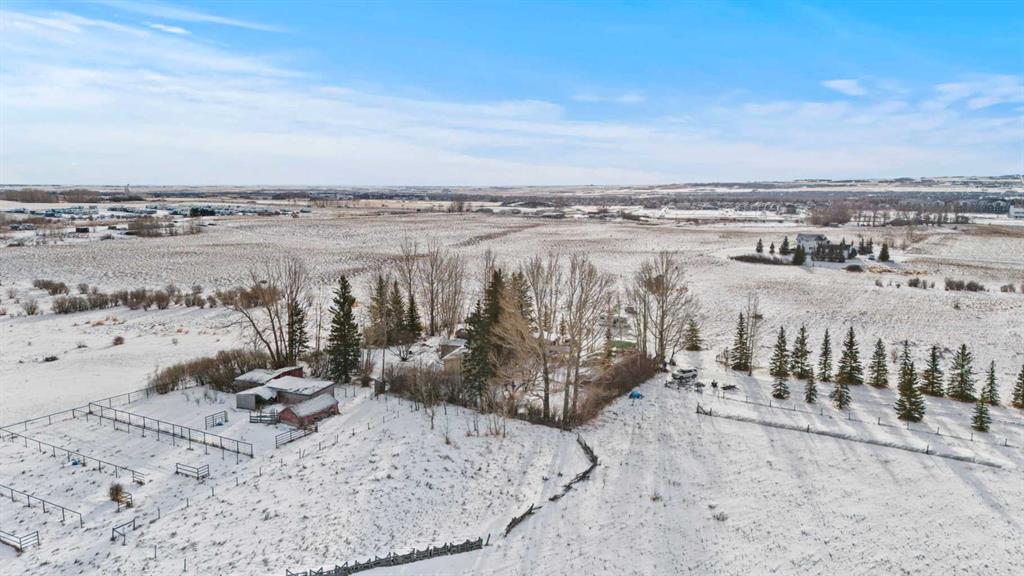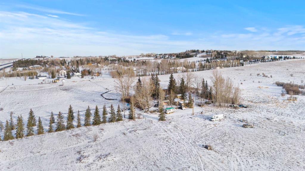 This is a rare, high-exposure 11.19-acre development site at the absolute north gateway of Okotoks, positioned just east of Highway 2A along the paved sub-road at the first set of lights entering town. Elevated topography delivers commanding, unobstructed mountain views—an increasingly scarce and premium feature—while mature spruce trees create a private, park-like setting. Offered strictly as land value with the residence included at no cost, this parcel is surrounded by established and expanding infrastructure including schools, commercial uses, golf courses, and residential neighbourhoods, all within walking distance, and supported by a new signalized intersection for safe, efficient access. With visibility, access, views, and growth already in place, this irreplaceable gateway parcel offers immediate and long-term upside for commercial or mixed-use development.