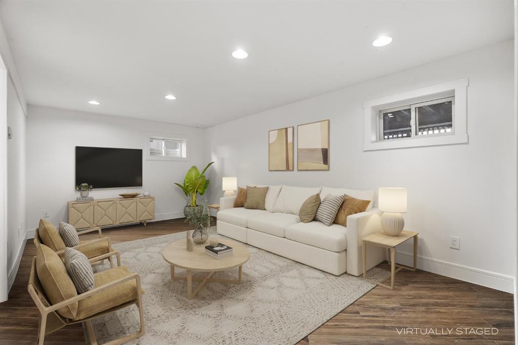 For the chef of the house, the kitchen is a true showpiece. It features brand new kitchen appliances, sleek cabinetry, and beautiful quartz countertops that make both cooking and entertaining a joy. The open design flows seamlessly into the dining and family areas, allowing you to stay connected with guests or family while you cook. The window frames the gorgeous backyard, filling the space with natural light and creating an inviting, functional heart of the home. Every element has been designed for everyday comfort and effortless hosting — from modern fixtures to abundant storage and workspace.
