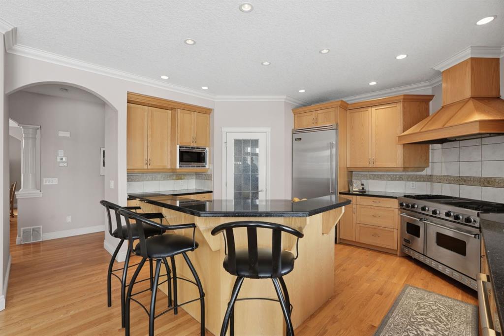 Welcome to 327 Rodeo Ridge in the prestigious golf course community of Springbank Links. This spectacular 6-bedroom estate home is nestled on a stunning private, treed lot, offering the rare combination of acreage-style privacy with significantly less upkeep, just minutes from Calgary. Thoughtfully designed across three fully finished levels, this exceptional home offers expansive and refined living space ideal for growing families and multi-generational living. The bright open-concept layout showcases rich hardwood flooring, elegant wrought iron railings, two gas fireplaces with stately mantles, and an abundance of natural light throughout. At the heart of the home is a beautifully situated gourmet kitchen featuring granite countertops, warm wood cabinetry, upgraded stainless steel appliances, and numerous built-ins. A convenient walk-through pantry connects seamlessly to the main living areas, while the bright breakfast nook overlooks the peaceful, private backyard. Entertain effortlessly in the formal dining room, gather in the inviting living spaces, or host guests at the main-floor wet bar. A main floor den provides the perfect setting for a private home office. Upstairs, the home offers four spacious bedrooms, including a luxurious primary retreat complete with a spa-inspired 4-piece ensuite featuring a jetted tub. Dual laundry areas on the upper and lower levels provide added everyday convenience. The fully developed walkout basement further enhances the home’s versatility, featuring a complete mother-in-law suite, two additional bedrooms, and generous living space—perfect for extended family, guests, or independent living arrangements. Additional highlights include a heated triple-car garage, quality craftsmanship throughout, and a mature, beautifully treed setting that offers exceptional privacy. Located in the highly sought-after Springbank Links community, residents enjoy championship golf, a pickleball court, year-round dining, and winter trail networks for walking, jogging, and cross-country skiing, all within the neighborhood. Families will appreciate the close proximity to Springbank Schools (K–12) with bus service available. Springbank High School was ranked in the top 5% of Alberta high schools by the Fraser Institute in 2024, making this an outstanding location for families focused on academic and athletic excellence. Just minutes away, Bingham Crossing offers convenient shopping, dining, and everyday services, while downtown Calgary remains an easy commute, allowing you to enjoy peaceful estate living without sacrificing city accessibility. Utilities and services include Emerald Bay Water Co-op, and the Rodeo Ridge Condo Association ($250/year) covers garbage and recycling services. This is a rare opportunity to own an elegant estate home in one of Springbank’s most prestigious golf course communities—where privacy, lifestyle, and convenience come together beautifully.