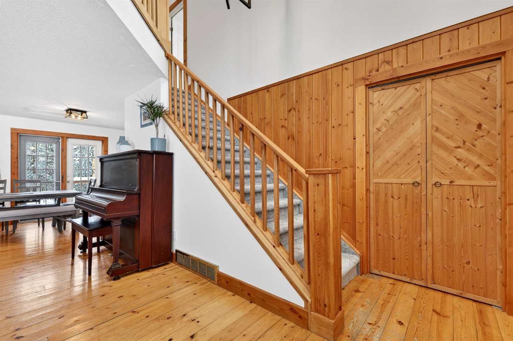 Open House Saturday February 28th at 10am to 12 noon. Charming country home located on a quiet acreage backing onto the Creek in the Wild Rose Estates area of West Bragg Creek. Imagine relaxing on your front covered porch, coffee or wine in hand and enjoying the sounds of nature surrounding you and your picturesque country farmhouse. Walking in, the vaulted foyer welcomes you to the large living room featuring a wood stove surrounded by brick. Rustic hardwood floors lead you to the dining area and country kitchen with artisan cabinetry and tiles, and stainless-steel appliances including a gas stove. The main floor family room off the kitchen is streaming with natural light, a wood burning fireplace and lots of lovely built-ins, waiting for memories to be made. The side entrance has a large and functional terracotta tiled mud room. Off the mud room is the well-lit office, a nice space for working, and one of the many bedrooms of the house, is currently being used as a gear room – so functional to be able to bring the bikes and skis into this ground level room. There is access off to the rear of the house and the main level 3-piece bathroom leading to the living room, perfect for any extended family to stay in that portion of the house. Walk upstairs to the bright, vaulted master suite with cozy sitting nook, ensuite and walk in closet. There is a peaceful feeling a person gets with the view out of your bedroom window into the tree canopy. The 2nd bedroom upstairs is currently being used as a home office with 4-piece bathroom out its door. Then the 3rd upper bedroom, a very large space indeed, is also vaulted and can serve as a gorgeous sleeping and hang out space for kids or guests alike. What a cool space this home is! The undeveloped basement features lots of storage, laundry area, workout space, and your finishing touches to make it how you want. Updates to the home in the last handful of years are substantial and include: new roof (2021), new sump pump (2025), new hot water tank (2025), new in-floor heating system and boiler (2023), new oven (2021), new Fridge (2021), main floor paint (2021), new upstairs carpet (2026), main floor bedroom and office new flooring (2024). With ongoing service and maintenance of property systems having the 2 furnaces cleaned and serviced (2025), Water System Services - ION filters (2023), storage tanks (2025), reverse osmosis (2025), well shock (2025), septic cleaned (2025), chimney and fireplaces cleaned (2025). A huge bonus, there is fibre optic to the property. The oversized double detached garage has lots of space for some toys and yard maintenance tools. The beautiful outdoor living space including a back deck, front porch, firepit, lawn area and woodlands leading down to the creek. The Wild Rose community has a lovely, shared lake, tennis courts and community firepit. If the meandering driveway didn’t sell you on the way in, it will be the cherry on top when you leave.