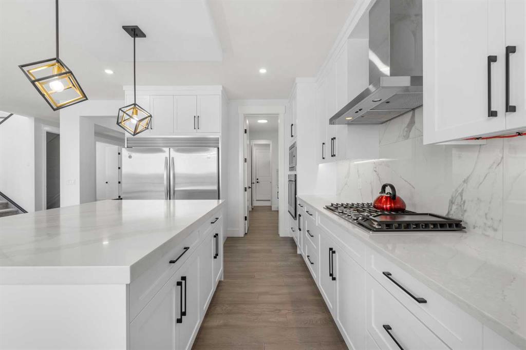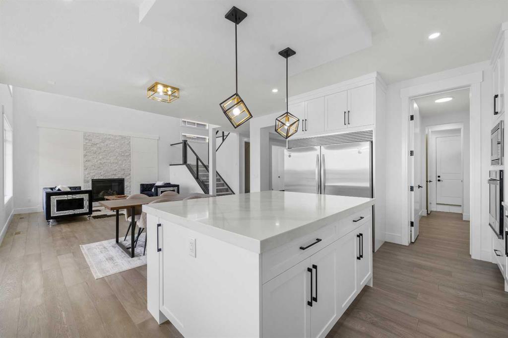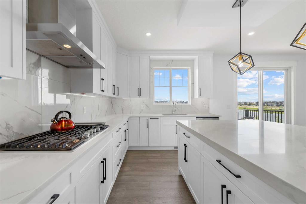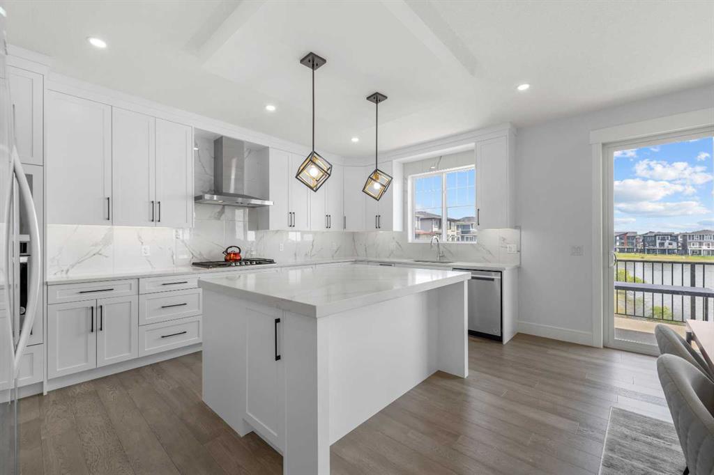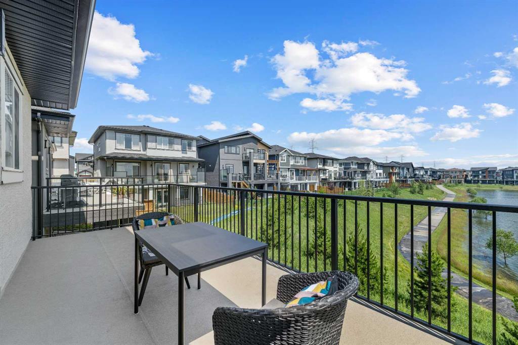 Exquisite Family Home | Backing onto Pond & Walking Path | Central Air Conditioning | 3,169 SqFt | Main Level Office | Stunning Open Floor Plan | Top of the Line Finishes | Expansive Living Space | Chef's Kitchen | Full Height Cabinets | Stainless Steel Appliances | Gas Cooktop | Sub Zero Refrigerator | Quartz Countertops | Kitchen Island | Spice Kitchen | Walk-in Pantry/Servery | Expansive Living Space | Open to Below Ceilings | Gas Fireplace | 2 Upper Level Primary Bedrooms | 2 Additional Bedrooms | Jack & Jill Bathroom | Upper Level Bonus Room | Walk-in Laundry Room with Sink | Plush Carpet | 24 LED Pot Lights | Energy Efficient Lighting | Walk-Out Basement | Incredible Backyard | Balcony | Gas BBQ Line | Patio | Views | Triple Attached Garage. Welcome to your luxurious home boasting 3,169 SqFt throughout the main and upper levels. This home is designed with modern finishes and an abundance of living space. The front door opens to a foyer with a wide hallway that leads into the expansive main level makes this the premier home to entertain during any occasion. The first living room is a great space for day seating or more intimate socializing. The open floor plan kitchen, dining and family room is where all the action happens! The sparkling chef's kitchen is outfitted with full height cabinets, built-in stainless steel appliances, a gas cooktop and a sub zero refrigerator. The quartz countertops sparkle throughout and the centre island has a barstool seating area for small meals. The walk-in pantry/servery is an incredible addition to your dry goods storage and cooking prep space. The family room has a centred stone accent wall that surrounds the gas fireplace. The kitchen, dining and family rooms are full of morning light as it beams through the large windows and a sliding glass door to the balcony. The balcony has an unobstructed views of the pond and walking paths; this East facing backdrop gives you a gorgeous sunrise! The main level home office is perfect for anyone with a work-from-home or hybrid schedule. The main level is complete with a 2pc powder room and a mud room leading to garage. Upstairs is finished with plush carpet flooring in the 2 primary bedrooms, 2 additional bedrooms & the bonus room! The first primary is a private oasis with a custom walk-in closet and private 5pc ensuite. The ensuite has dual vanities, a soaking tub, walk-in shower and private washing closet. The 2nd primary also has a walk-in closet and 5pc ensuite with dual vanities and a tub/shower combo. Bedrooms 3 & 4 are both a great size and have the Jack & Jill style 5pc ensuite with a separate dual vanity from the bathing section. The bonus room upstairs is made for your evening unwind with the family. The upper level walk-in laundry room with a rinse sink and built in cabinet storage and every home owner's dream! Downstairs, the unfinished basement is a blank canvas for your future plans. The walk-out basement opens to a concrete patio for outdoor dining and a gorgeous backyard!