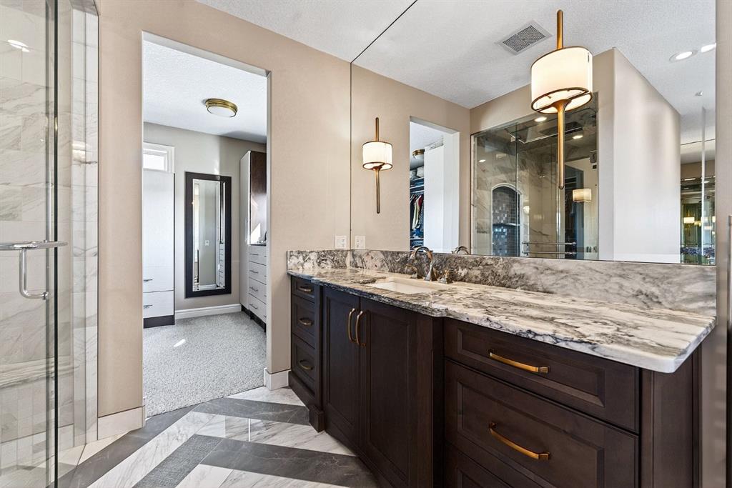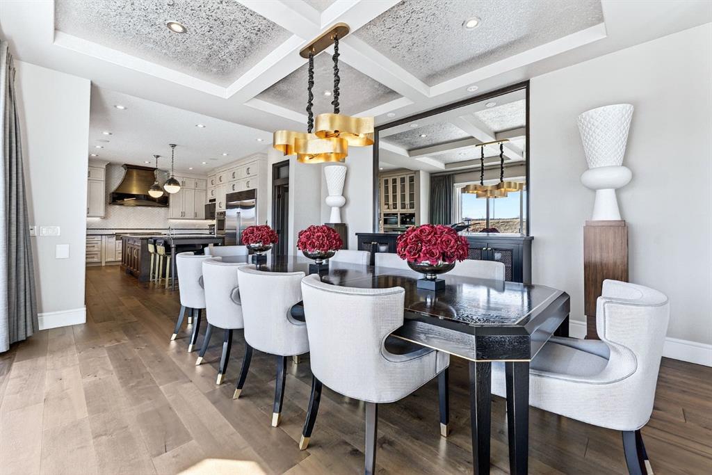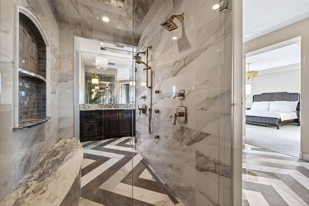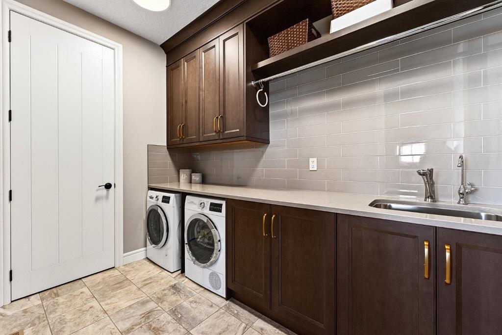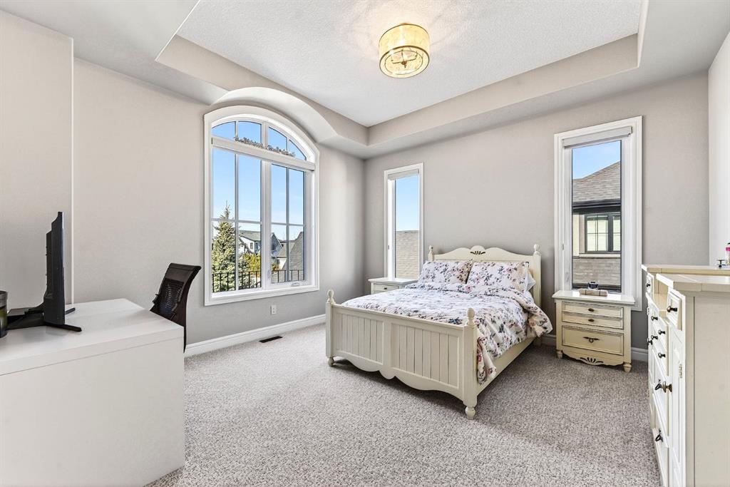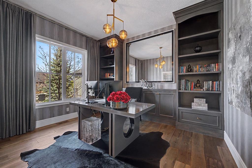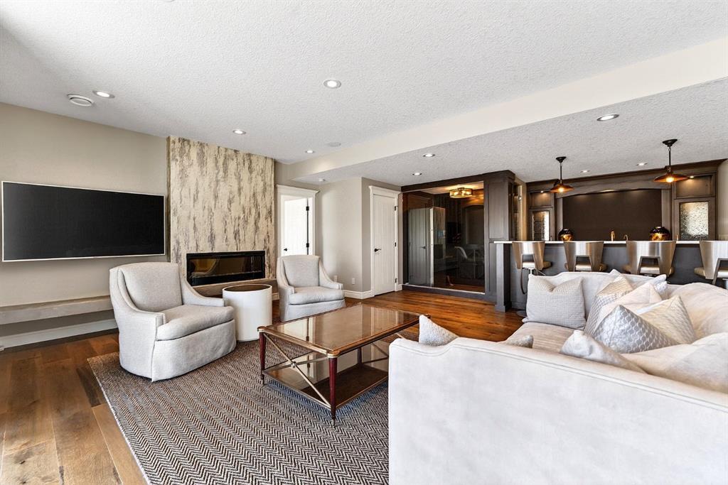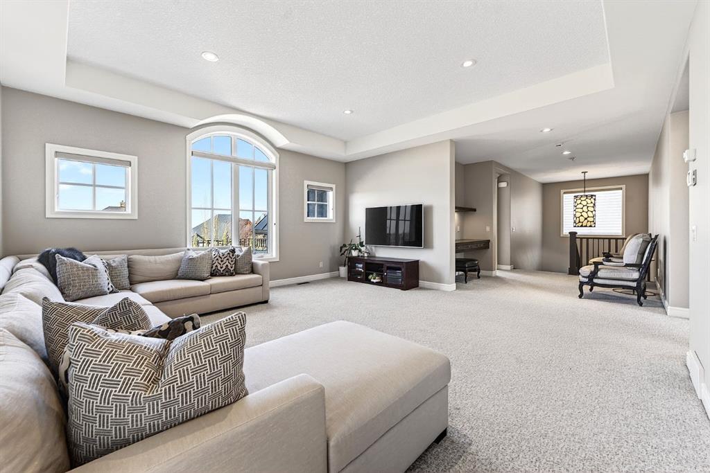 Welcome to this exceptional, never-before-listed luxury estate in Artesia at Heritage Pointe, proudly offered by its original owners, custom built by Albi, and professionally designed by James McIntyre, featuring over 6,122 sq ft of total living space. From the moment you enter, you are welcomed by a grand layout that seamlessly blends elegance and functionality, including a spacious executive office, a refined living area, and a stunning dining space anchored by a chef-inspired kitchen with an oversized island, premium finishes, and a generous walkthrough pantry with extensive built-ins for effortless organization. The main floor is completed by a thoughtfully designed mudroom with sink and a beautifully appointed powder room. Upstairs offers a rare and highly sought-after layout featuring three true primary bedroom suites, each thoughtfully designed for comfort and privacy, along with a versatile workspace, a bright central family area, and the convenience of an upper-level laundry. The main primary retreat is a showpiece, featuring a spa-inspired ensuite with a light therapy jetted tub, double-sided fireplace, an oversized walk-in shower with dual fixtures, and expansive his and hers walk-in closets and vanities. The fully developed walkout basement continues to impress with three additional bedrooms, including a fourth primary-style suite, two full bathrooms, a theatre room, home gym with cork flooring, a spacious recreation area, a second laundry, and an elegant bar with wine cellar. Outdoor living is equally remarkable with a full-width upper deck, a covered lower patio, rough-ins for a hot tub, and phantom screens, all backing onto a beautifully open setting that enhances the home’s sense of privacy and scale.