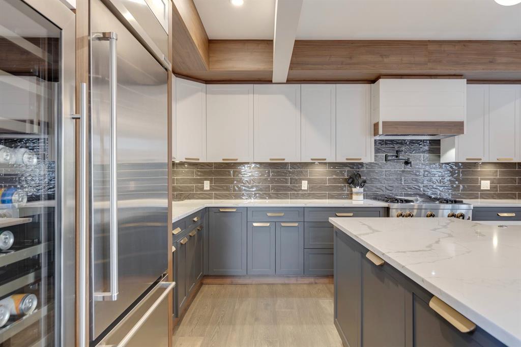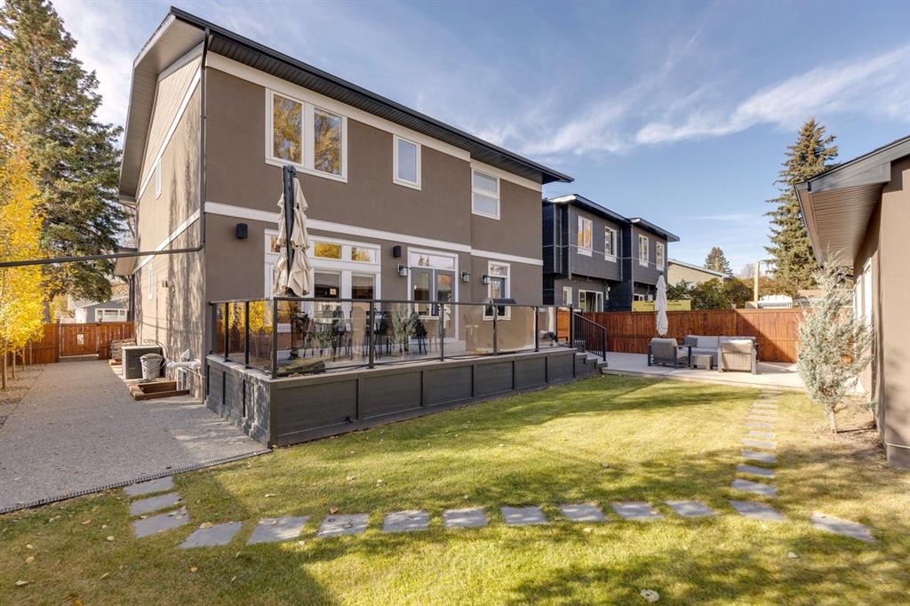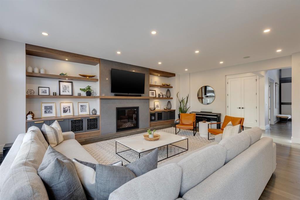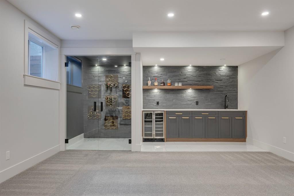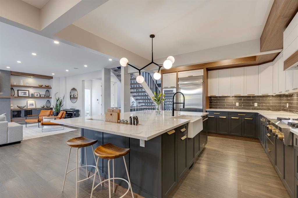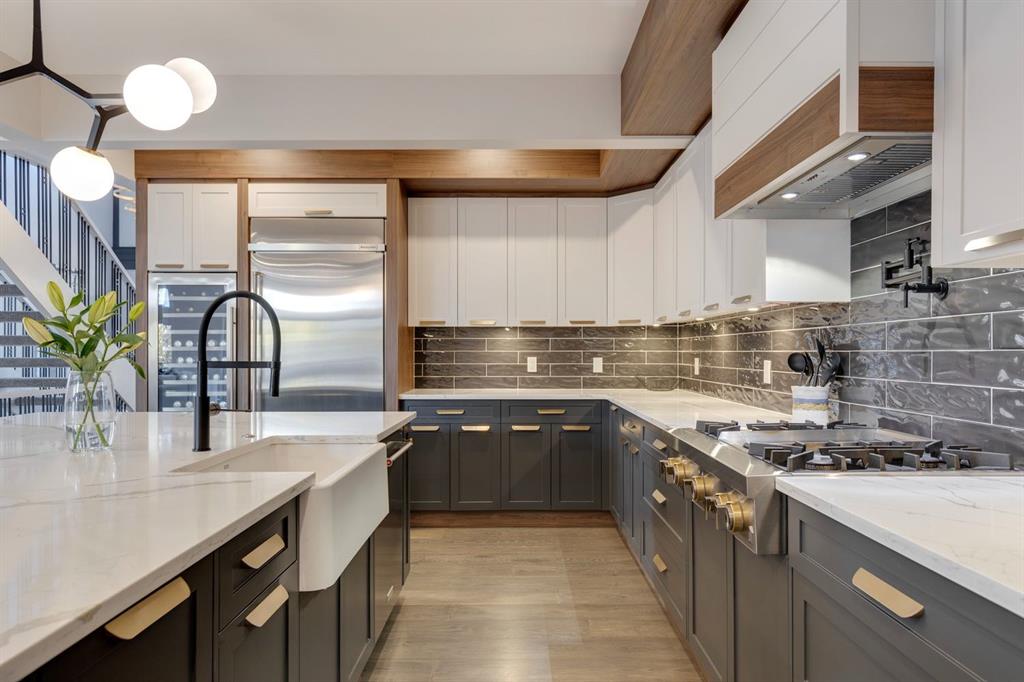 Discover modern elegance and refined living in this custom built architectural showpiece. Designed for families and entertainers alike, every element of this residence blends cutting edge technology, timeless craftsmanship, and a warm, luxurious ambiance that instantly feels like home. From the moment you arrive, you’ll be captivated by the exquisite curb appeal and inviting front porch where you can unwind with a glass of wine and wave to passing neighbours. Step inside to a warm, contemporary interior accented with rich walnut finishes throughout. A culinary enthusiasts dream kitchen is a true centrepiece, featuring an expansive eat-up island, a walk-in pantry, custom cabinetry, built-in appliances, and a massive island with a Zomodo prep sink that transforms seamlessly for entertaining. Designed to impress and inspire, this kitchen effortlessly blends functionality with sophistication, making it ideal for both intimate family meals and lavish entertaining. The open concept main floor invites connection, whether you’re hosting elegant dinner parties or cozy family nights by the fireplace. Extend your living outdoors to a spectacular, multi-tiered deck and beautifully landscaped rear yard, ideal for summer gatherings or peaceful evenings under the stars. Upstairs, the primary suite redefines luxury with a gas fireplace, coffee station with beverage fridge, and large windows framing tranquil views. The lavish ensuite pampers with a large skylight, heated floors, deep soaker tub, steam shower with body sprays, double vanity, and even a heated towel rack for ultimate comfort. Two additional spacious bedrooms, a full bath, and a large laundry room complete the upper level. The lower level presents plush carpets and exceptional versatility with two additional bedrooms (or home gym), a family room and games area, a gorgeous wet bar, and a spacious wine cellar for the wine collecting enthusiast. Located on a quiet, tree-lined street just steps from both public and catholic schools, Confederation Park and the golf course, and moments from the Calgary Winter Club, this home offers an unmatched lifestyle balancing recreation, relaxation, and urban convenience. A true smart home built with integrated voice-controlled Lutron lighting, Nest thermostats, Ring Pro security cameras, and smart irrigation, allowing you to manage your environment from anywhere. Even the triple car heated garage features belt-drive smart openers for ease and convenience. Built with uncompromising quality and integrity, every element of this home showcases expert craftsmanship, premium materials, and enduring design crafted for families who value beauty, function, and comfort. Make your dreams a reality in a home built to create memories for generations.
