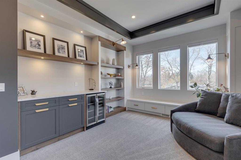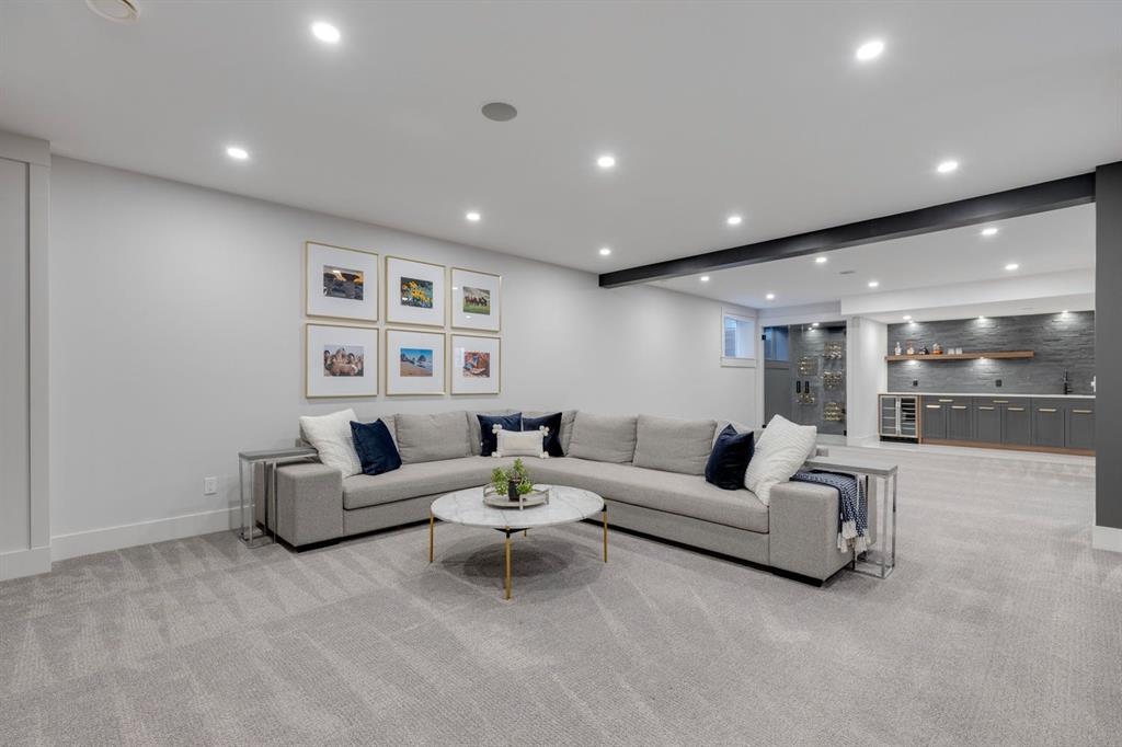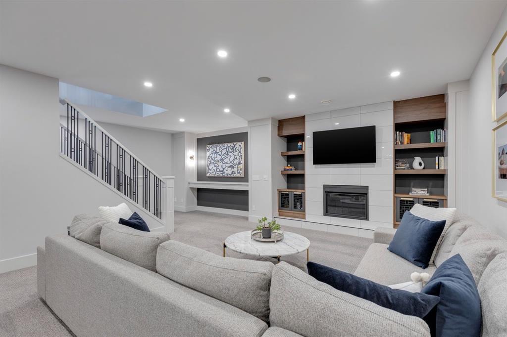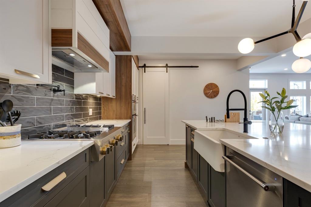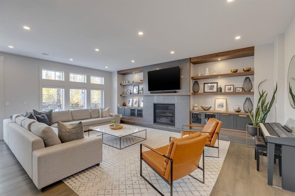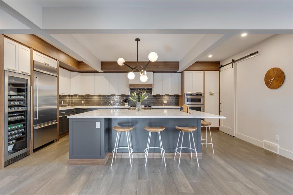 Discover modern elegance and refined living in this custom built architectural showpiece. Designed for families and entertainers alike, every element of this residence blends cutting edge technology, timeless craftsmanship, and a warm, luxurious ambiance that instantly feels like home. From the moment you arrive, you’ll be captivated by the exquisite curb appeal and inviting front porch where you can unwind with a glass of wine and wave to passing neighbours. Step inside to a warm, contemporary interior accented with rich walnut finishes throughout. A culinary enthusiasts dream kitchen is a true centrepiece, featuring an expansive eat-up island, a walk-in pantry, custom cabinetry, built-in appliances, and a massive island with a Zomodo prep sink that transforms seamlessly for entertaining. Designed to impress and inspire, this kitchen effortlessly blends functionality with sophistication, making it ideal for both intimate family meals and lavish entertaining. The open concept main floor invites connection, whether you’re hosting elegant dinner parties or cozy family nights by the fireplace. Extend your living outdoors to a spectacular, multi-tiered deck and beautifully landscaped rear yard, ideal for summer gatherings or peaceful evenings under the stars. Upstairs, the primary suite redefines luxury with a gas fireplace, coffee station with beverage fridge, and large windows framing tranquil views. The lavish ensuite pampers with a large skylight, heated floors, deep soaker tub, steam shower with body sprays, double vanity, and even a heated towel rack for ultimate comfort. Two additional spacious bedrooms, a full bath, and a large laundry room complete the upper level. The lower level presents plush carpets and exceptional versatility with two additional bedrooms (or home gym), a family room and games area, a gorgeous wet bar, and a spacious wine cellar for the wine collecting enthusiast. Located on a quiet, tree-lined street just steps from both public and catholic schools, Confederation Park and the golf course, and moments from the Calgary Winter Club, this home offers an unmatched lifestyle balancing recreation, relaxation, and urban convenience. A true smart home built with integrated voice-controlled Lutron lighting, Nest thermostats, Ring Pro security cameras, and smart irrigation, allowing you to manage your environment from anywhere. Even the triple car heated garage features belt-drive smart openers for ease and convenience. Built with uncompromising quality and integrity, every element of this home showcases expert craftsmanship, premium materials, and enduring design crafted for families who value beauty, function, and comfort. Make your dreams a reality in a home built to create memories for generations.