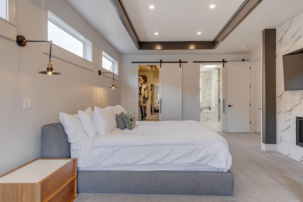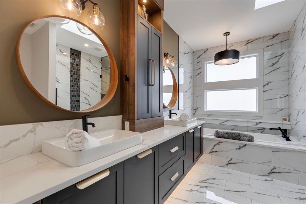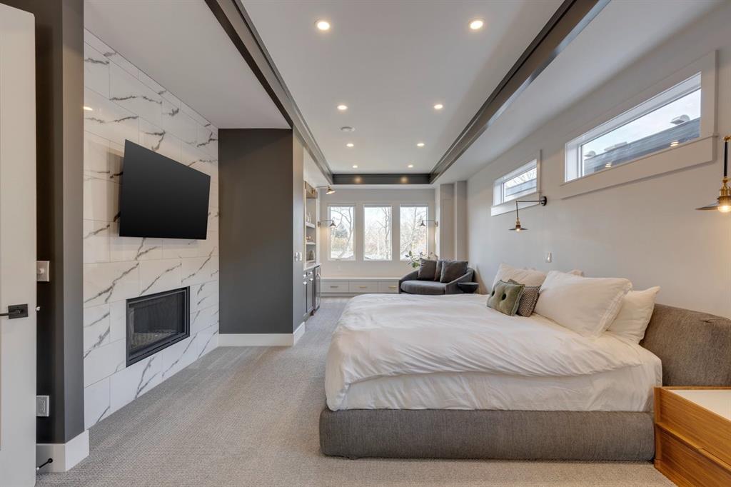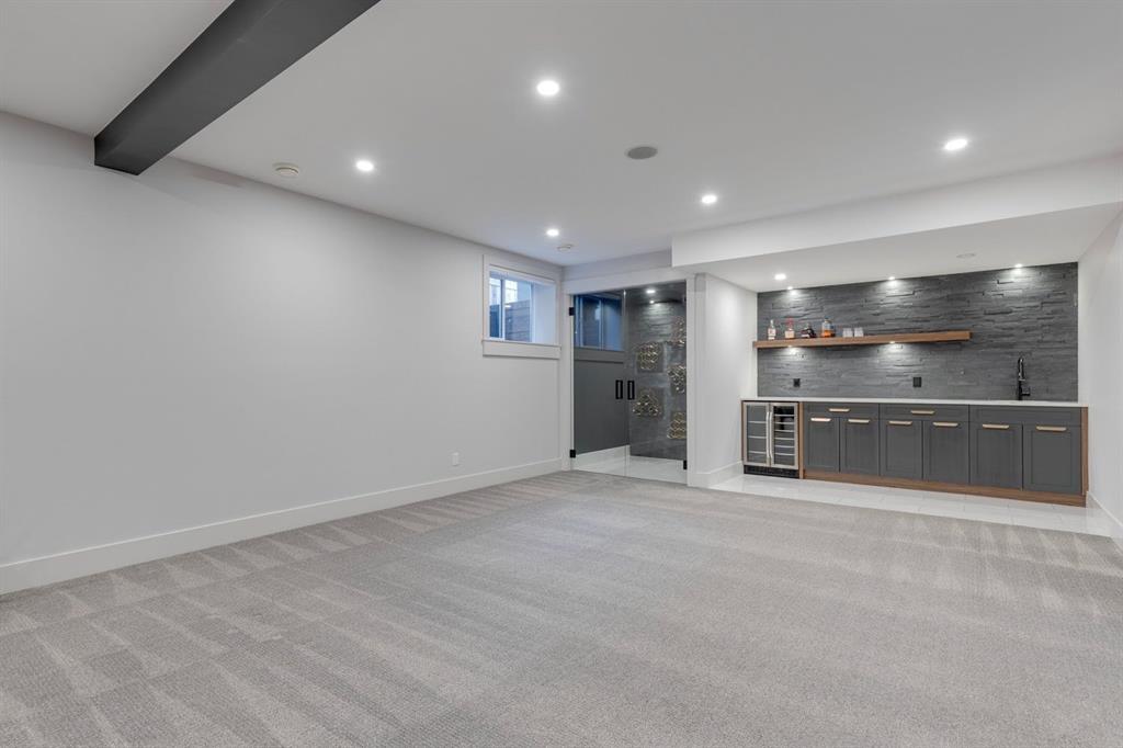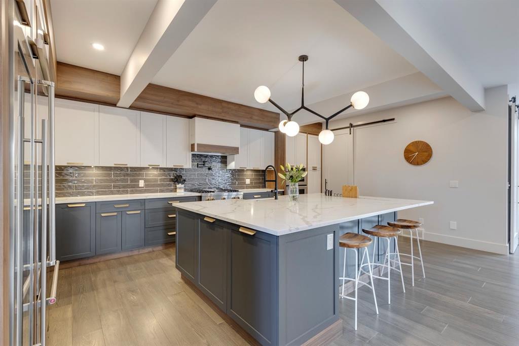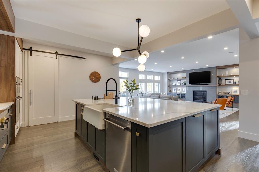 Discover modern elegance and refined living in this custom built architectural showpiece. Designed for families and entertainers alike, every element of this residence blends cutting edge technology, timeless craftsmanship, and a warm, luxurious ambiance that instantly feels like home. From the moment you arrive, you’ll be captivated by the exquisite curb appeal and inviting front porch where you can unwind with a glass of wine and wave to passing neighbours. Step inside to a warm, contemporary interior accented with rich walnut finishes throughout. A culinary enthusiasts dream kitchen is a true centrepiece, featuring an expansive eat-up island, a walk-in pantry, custom cabinetry, built-in appliances, and a massive island with a Zomodo prep sink that transforms seamlessly for entertaining. Designed to impress and inspire, this kitchen effortlessly blends functionality with sophistication, making it ideal for both intimate family meals and lavish entertaining. The open concept main floor invites connection, whether you’re hosting elegant dinner parties or cozy family nights by the fireplace. Extend your living outdoors to a spectacular, multi-tiered deck and beautifully landscaped rear yard, ideal for summer gatherings or peaceful evenings under the stars. Upstairs, the primary suite redefines luxury with a gas fireplace, coffee station with beverage fridge, and large windows framing tranquil views. The lavish ensuite pampers with a large skylight, heated floors, deep soaker tub, steam shower with body sprays, double vanity, and even a heated towel rack for ultimate comfort. Two additional spacious bedrooms, a full bath, and a large laundry room complete the upper level. The lower level presents plush carpets and exceptional versatility with two additional bedrooms (or home gym), a family room and games area, a gorgeous wet bar, and a spacious wine cellar for the wine collecting enthusiast. Located on a quiet, tree-lined street just steps from both public and catholic schools, Confederation Park and the golf course, and moments from the Calgary Winter Club, this home offers an unmatched lifestyle balancing recreation, relaxation, and urban convenience. A true smart home built with integrated voice-controlled Lutron lighting, Nest thermostats, Ring Pro security cameras, and smart irrigation, allowing you to manage your environment from anywhere. Even the triple car heated garage features belt-drive smart openers for ease and convenience. Built with uncompromising quality and integrity, every element of this home showcases expert craftsmanship, premium materials, and enduring design crafted for families who value beauty, function, and comfort. Make your dreams a reality in a home built to create memories for generations.