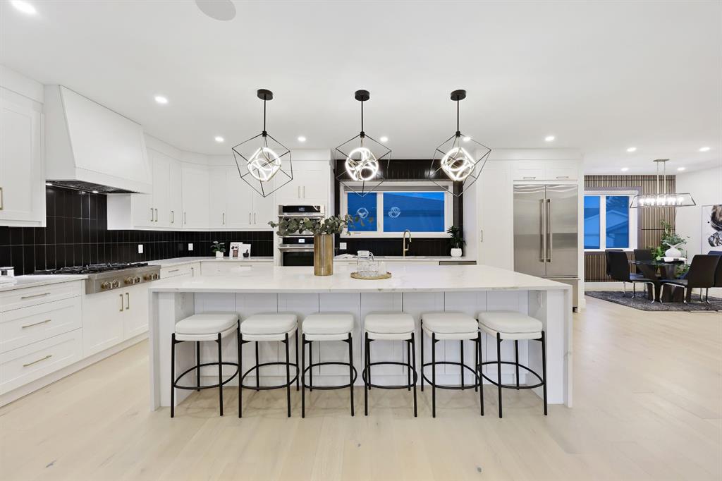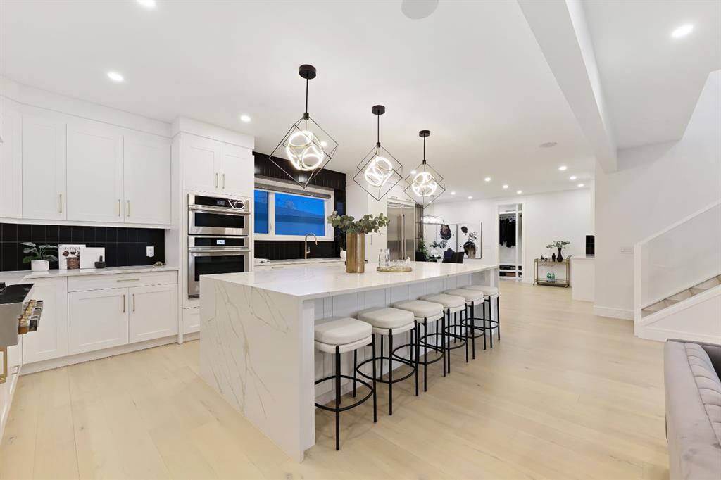 This Modern Art Piece, an exceptional custom-built luxury home located in the heart of Brentwood. Meticulously constructed by the builder as a Modern Master Piece, this home reflects uncompromising craftsmanship, premium materials, and thoughtful design throughout. Offering 7 bedrooms, 5.5 bathrooms, and over 3,600 sq. ft. of well designed living space, plus a fully developed legal basement suite with a private, separate walk-up entrance, This property delivers outstanding versatility and value. The striking contemporary exterior, showcases contemporary brick and Hardie Board finishes, enhanced by professional landscaping and elegant exterior accent lighting. Step inside to be greeted by a dramatic 19-foot ceiling in the main living room with an open-to-below second-storey design, creating a bright and expansive atmosphere. The grand living space is anchored by a custom gas fireplace with stone façade, seamlessly flowing into the gourmet kitchen, with an expensive 10-foot quartz waterfall island which serves as the centre piece perfect for entertaining, complemented by top-of-the-line Jen Air appliances and refined finishes. Adjacent to the kitchen is a stylish dining nook with custom wall paneling, while a thoughtfully designed bar offers an ideal space for evening hangouts or serving guests. A private back entry leads to a functional mudroom. The main floor also features a bedroom with its own 3-piece ensuite, ideal to entertain guests, or for extended family needs, along with another 2-piece designer powder room. Upstairs, enjoy an open bonus room overlooking the living area, framed with modern glass railings, The upper level boasts two luxurious primary bedrooms, each with spa-inspired en-suites featuring floor-to-ceiling ceramic tile, in-floor heating, and premium lavatories throughout. one with steam shower, and a free standing soaker tub, The fully developed basement with 9ft ceiling, includes a legal suite with two bedrooms, a full bathroom, a kitchen with shaker-style cabinetry, complete appliance package, and its own full-sized washer and dryer, The other portion of the basement offers roughed-in plumbing, ready for Customization to suit your lifestyle needs. The home is equipped with three separate furnaces, providing efficient climate control for each level. The backyard features two single-car garages, along with a finished lawn to complete the outdoor space.The location is truly unbeatable—just steps from Brentwood LRT Station, Brentwood Village, Northland Mall, and K–12 schools. The University of Calgary is only minutes away, and quick access to Crowchild Trail ensures effortless commuting while remaining tucked away ,completely peaceful and quite, An outstanding property with exceptional build quality, modern luxury, and an unbeatable lifestyle in one of Calgary’s most sought-after communities.