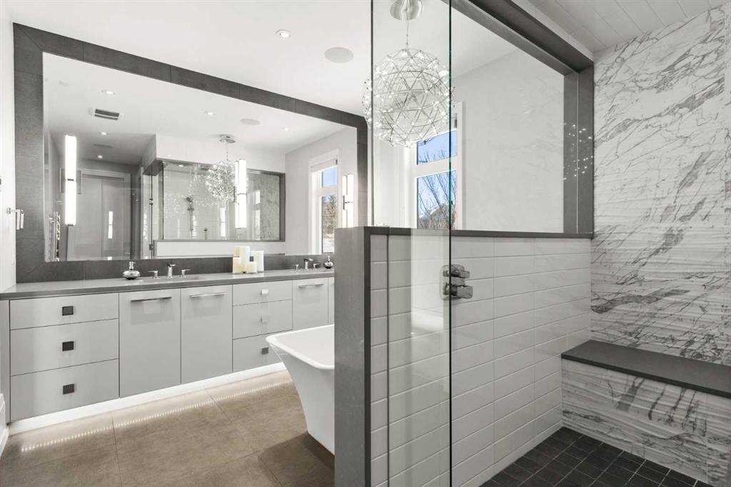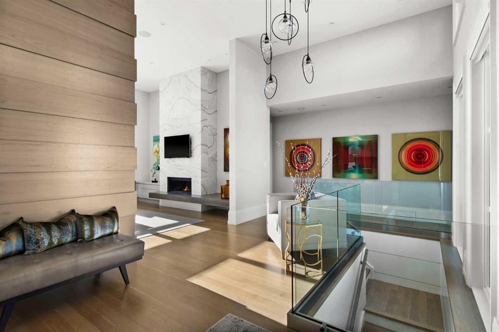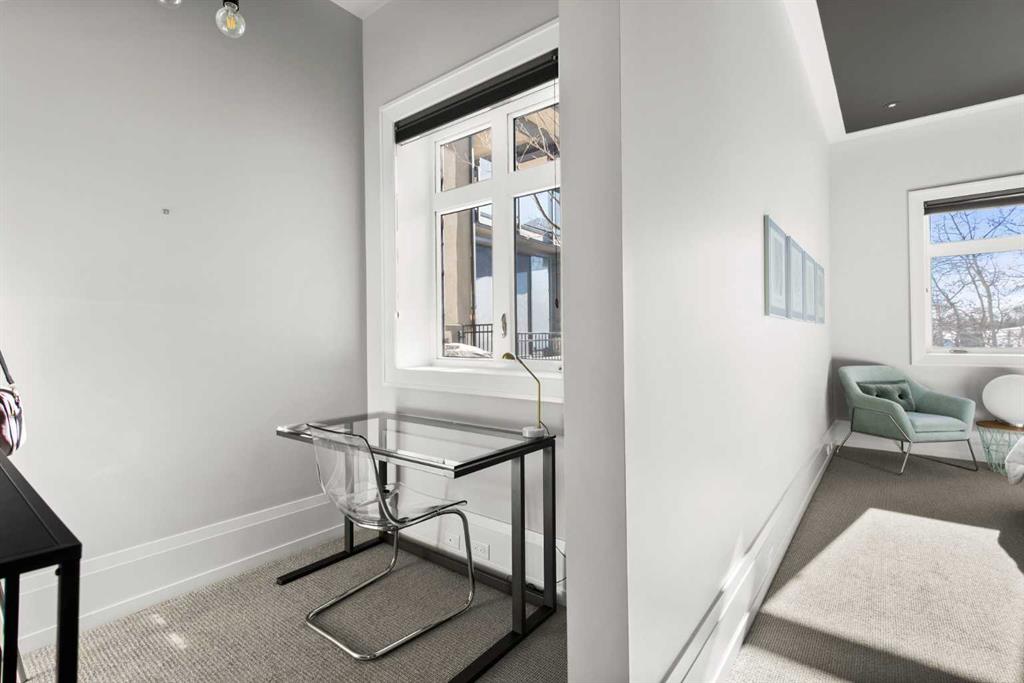 The main floor primary bedroom is a true retreat, positioned to capture the views and offering a spa-inspired ensuite and an expansive dressing room. A private office provides a quiet and refined workspace, ideal for work from home living.