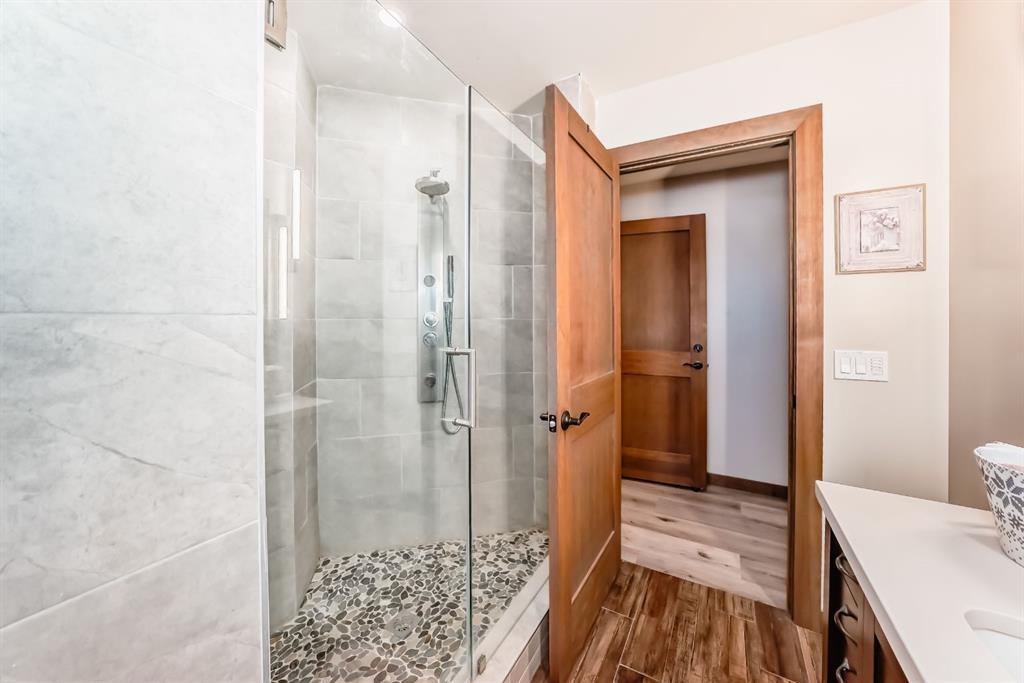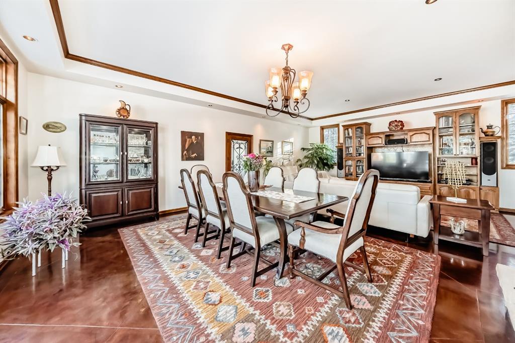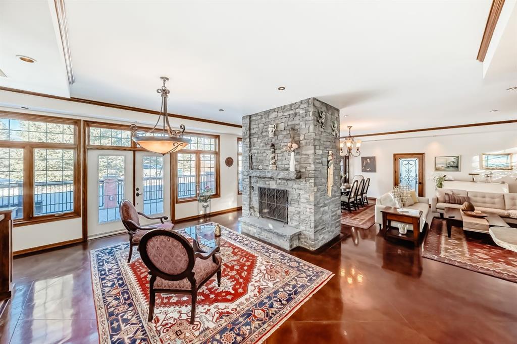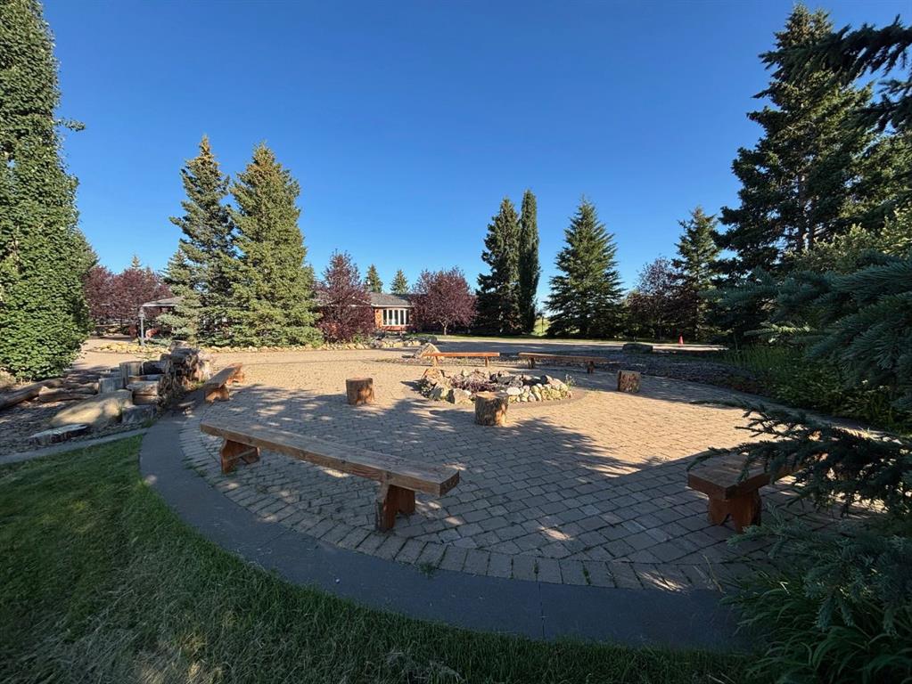 Welcome to this sprawling, solid brick, ranch-style bungalow nestled on 4 acres in coveted Springbank, 20 minutes from DT Calgary, offers 5 beds and 4.5 baths in over 6400 sqft of living space featuring an incredible 2100+ sqft 6 car garage w/ in-floor heating, a fully finished basement w/ two staircases. This luxury estate home is open plan and has unparalleled attention to detail including double, solid oak front doors, 10' ceilings, rich hardwood which was recently refinished in a white oak style (2024), and acid wash flooring welcome you upon arrival. This home is a classic gem made from the finest materials such as solid oak and acid wash flooring as you enter into the large sunken living room w/ in-floor heating, a two-sided real rundle stone wood-burning fireplace, a granite wet bar and double patio doors leading out to the large stamped concrete front patio. Kitchen boasts a huge granite-top island, a breakfast nook surrounded by walls of windows, new fridge, double wall oven, new dishwasher, gas cooktop, pantry with rolling shelves and leads out to the sandstone-coloured patio. The informal dining room is the perfect space for hosting family and friends w/ a brick wood-burning fireplace, stunning vaulted ceilings, a wet bar, wine storage to keep your favourites on hand, and patio doors leading out to the backyard patio. Fully renovated 4-piece ensuite w/ a free standing soaking tub w/ a view and large shower. The second bedroom also has 3 large windows solar blinds, darkening curtains as well as a large walk-in closet w/ a motion light and sliding door, a new 3-piece ensuite w/ a large window, and double patio doors that lead to a beautiful private patio w/ wrought iron and wood railings. All the windows have been replaced with triple pane, Low-E windows (2022). Lower level is entertainers dream w/ an enormous rec room w/ ton of seating space around the FP and space for a media unit plus three bedrooms (2 w/ large walk-in closets w/ laminate flooring and Low-E windows, solar blinds and darkening curtains), a laundry room, and third bedroom currently used as a storage room. Newer hot water tank, new washer and dryer, new high-pressure septic mound system including brand new pumps in septic tank and holding tank, two furnaces and a boiler for in floor heating, 4 electrical panels, and more in supplements. The addition of a concrete stairway (2024) has allowed for a walk-up feature leading out of the basement, perfect for older children still living at home, multi-generational households or an AirBnB suite. The basement has also been equipped with a kitchenette... Opportunities for small businesses abound in this property including: AirBnB which has successfully been run for two years, storage businesses in the oversized garage, trailer storage on the gravel pad. Extensive landscaping, three patios, a hot tub, private pond, and a pond-side enormous fire pit. Located in one of the most sought-after school districts in Alberta w/ easy access to the mountains.
