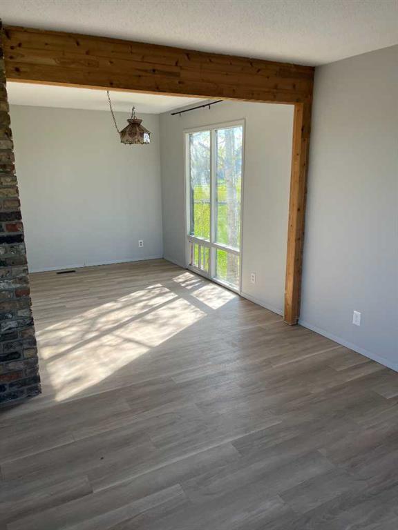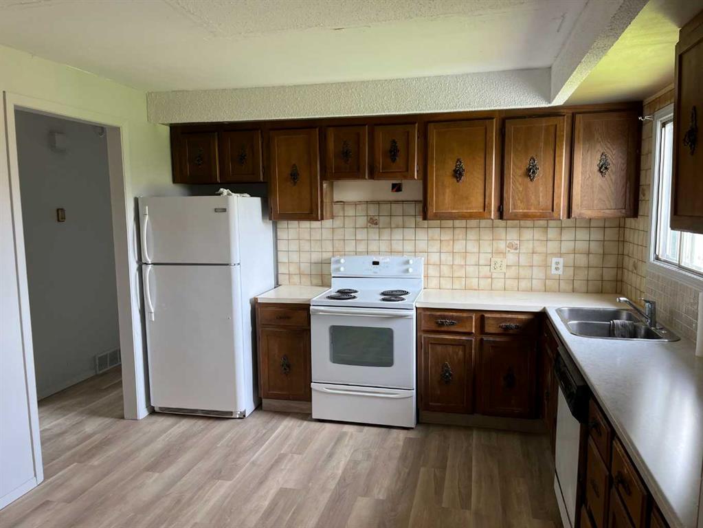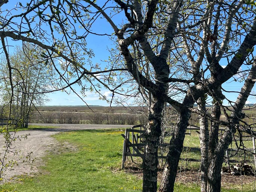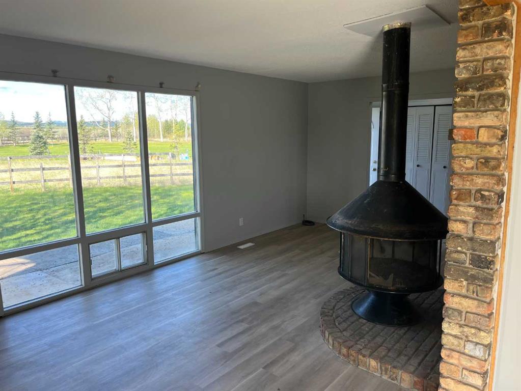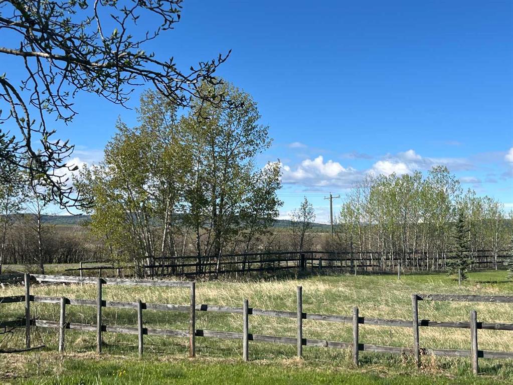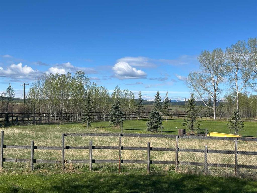Embrace the best of country living just minutes from the city on this scenic 10-acre parcel in Rocky View County. Set well back from the road behind mature trees and fencing, this 3-bedroom bungalow offers privacy, tranquillity and sweeping views of the Rocky Mountains. Whether you’re starting your acreage journey or downsizing with room to roam, this property delivers the ideal rural lifestyle, with city convenience still within easy reach. Inside, the home has been freshly painted and features all-new plank flooring throughout. Oversized windows in the living and dining areas frame breathtaking mountain views and draw in natural light from dawn to dusk. A charming wood-burning stove set against a brick surround adds warmth and character, complemented by a wood-beam ceiling for a touch of rustic appeal. The kitchen offers functional space to make your own, while the open layout encourages easy flow for everyday life and casual entertaining. Three well-sized bedrooms are tucked down the hall, including a primary with a private 3-piece ensuite. A second 4-piece bath adds family-friendly convenience. The full basement remains undeveloped and ready for your vision. Step outside and experience the full potential of country living. The land is fenced and cross-fenced with a horse shelter and a mix of open pasture and tree shelter. The attached rear storage offers practical utility, while the orientation of the home captures panoramic mountain views and golden prairie sunsets. Located just a short drive from the Calgary city limits, this peaceful property offers space to grow, play, and unwind, with the benefit of proximity to shopping, services, and commuter routes. It is only a short 10 minute drive to Westhills Shopping Centre, with its multitude of shops, restaurants and entertainment. Whether you're looking for your first acreage or a manageable homestead close to the city, this is a rare opportunity to enjoy nature, views and potential on your terms. Water is trucked in to property!