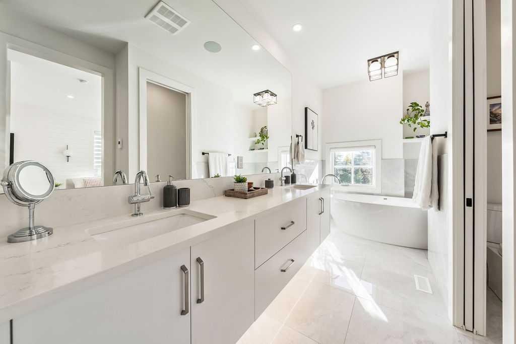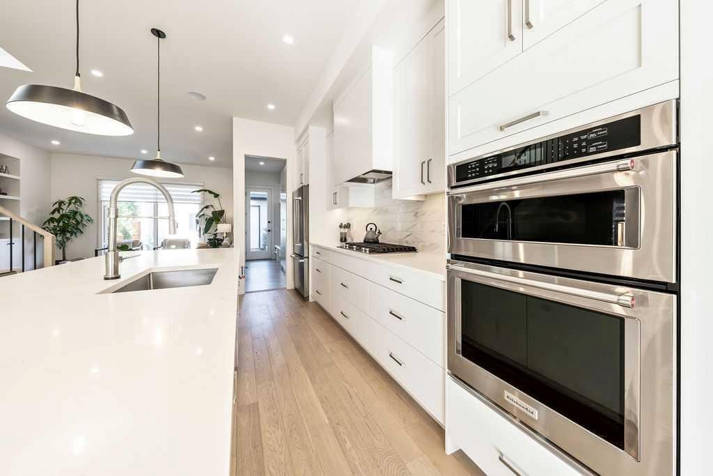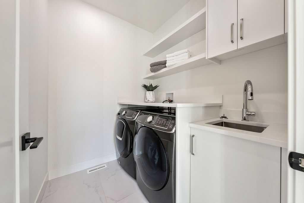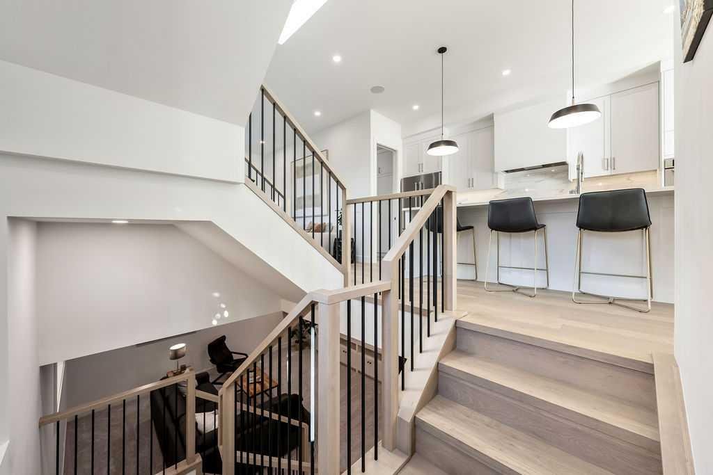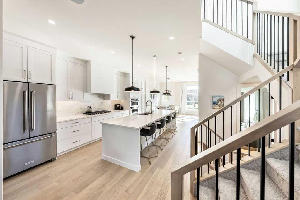 ** OPEN HOUSE - Saturday, October 18 from 1-3pm ** STUNNING HOME looking out onto a beautiful PARK and situated on a CORNER for maximum natural light throughout! This home was built thoughtfully with luxury UPGRADES from top to bottom. As you enter the home from the private side main entrance you will be greeted with the high ceilings and streams of natural light coming in through the large front windows. The amazing chef style kitchen features custom solid slab cabinetry with lots of storage, beautiful large island with plenty of seating and all upgraded appliances. Enjoy relaxing in the cozy family room by the gas fireplace. Custom built-in shelving and large patio doors make this room a great place to entertain. A large mudroom with plenty of custom cabinetry makes it easy to tuck away coats and shoes. A stylish 2 piece bathroom with soaring ceilings completes the main level. The upper level features a beautiful primary retreat looking out onto the park through it's large bright windows. The ensuite features heated floors, oversized custom shower, beautiful stand alone bath tub and a double vanity. The walk-in closet has plenty of built-in cabinetry and closet space. An additional 2 bedrooms, full 5 piece bathroom and large laundry room complete the upper level. The lower level is great for entertaining or relaxing in the large family room with built-in entertainment center and custom built bar with high end beverage fridge. An additional bedroom and full 4 piece bathroom are a great addition to the lower level. Feel comfortable all summer with A/C or enjoy sitting outside on the aggregate patio in the professionally landscaped private backyard. The oversized double garage and parking around the home make it easy and convenient for to park anywhere. Great school and shopping all nearby. This home must be seen to be appreciated!