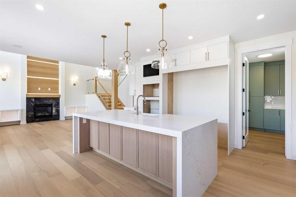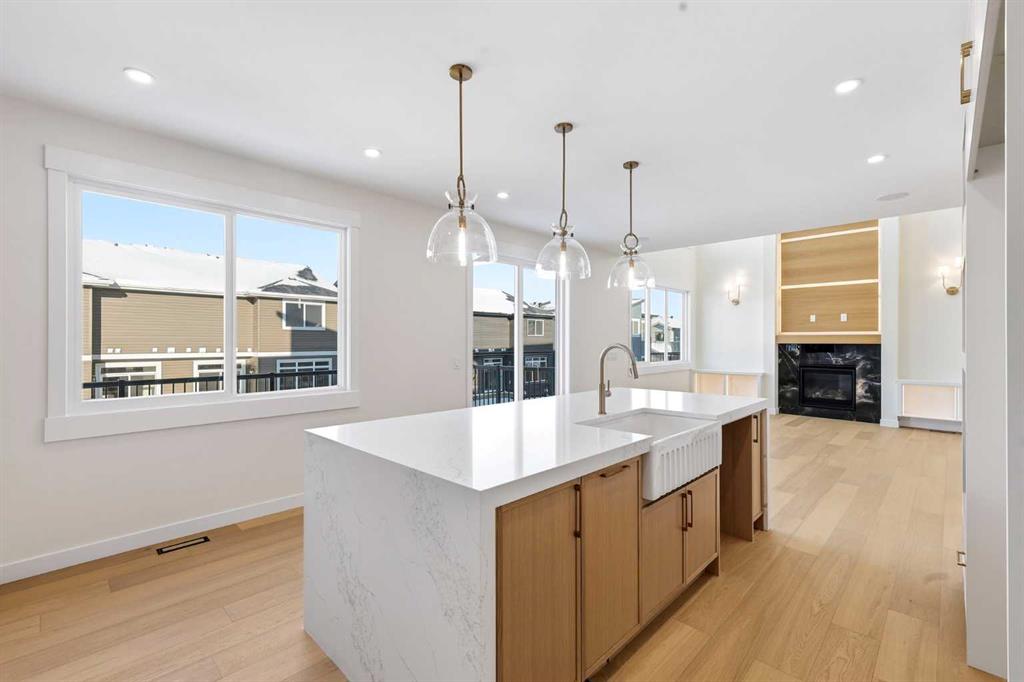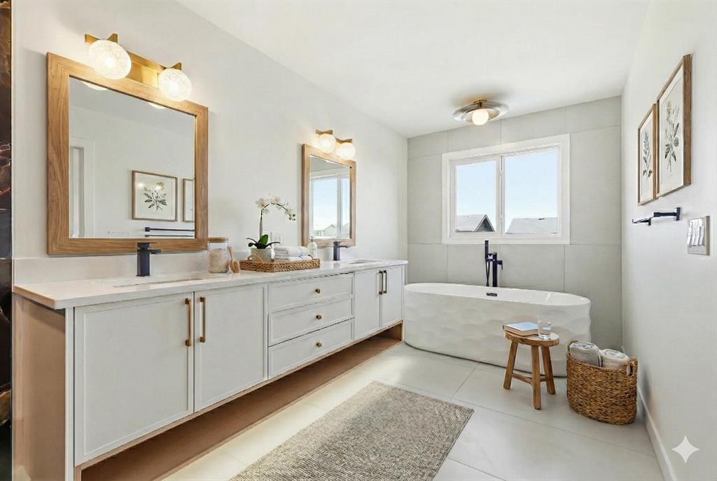 Experience grand-scale living at 343 Waterford Grove in the upscale community of Waterford. Lakeside living in Chestermere and a community designed for activity, you’re close to 8 parks and green spaces, three storm ponds, three school sites, and two neighbourhood centres. Enjoy it all without sacrificing proximity to Calgary for work. You’ll never run out of activities to enjoy with your family. This brand-new 3,152 sq. ft. estate home is meticulously designed for large families and multi-generational living, blending high-end elegance with practical design. The home totals just under 4,500 sq. ft. of potential living space, including the undeveloped basement, you’ll be able to create the space you need. Whether you add a secondary suite subject to approval and permitting by the city/municipality or the dream basement your family has always wanted. Upon entry, you are greeted by luxury wide-plank flooring and a breathtaking foyer sure to impress your future guests. The living room is open to above with grand ceilings, anchored by a gas fireplace. The chef’s kitchen is a true showstopper, featuring a massive island, built-in appliances (package to be selected and installed by the builder), and a fully ventilated spice kitchen. The unique layout is ideal for generational living, offering a main-floor second primary suite with a full ensuite bath, thoughtfully tucked away from the main living and kitchen areas. Perfect for aging parents or guests seeking privacy. Heading upstairs, you’ll notice motion-detection smart lighting on every step, adding a modern touch of safety and style. You’ll find four additional bedrooms, and three full bathrooms. The true primary retreat impresses with a soaking tub, dual vanities, and a custom glass shower. Two of the bedrooms share an adjoining bathroom, with another full bath conveniently located for guests off the bonus room. This home truly has it all. To top it off, the lot features an undeveloped walkout basement, a triple-car garage, and a location just steps from Waterford’s parks, storm ponds, and pathways. Schedule your tour today.