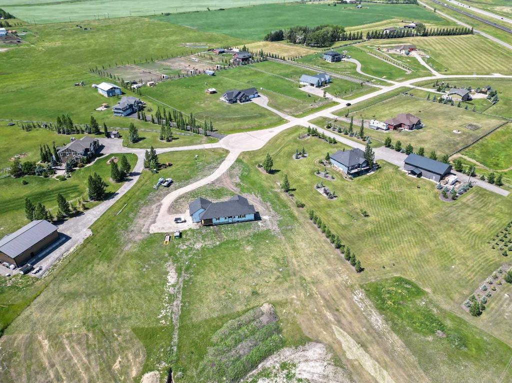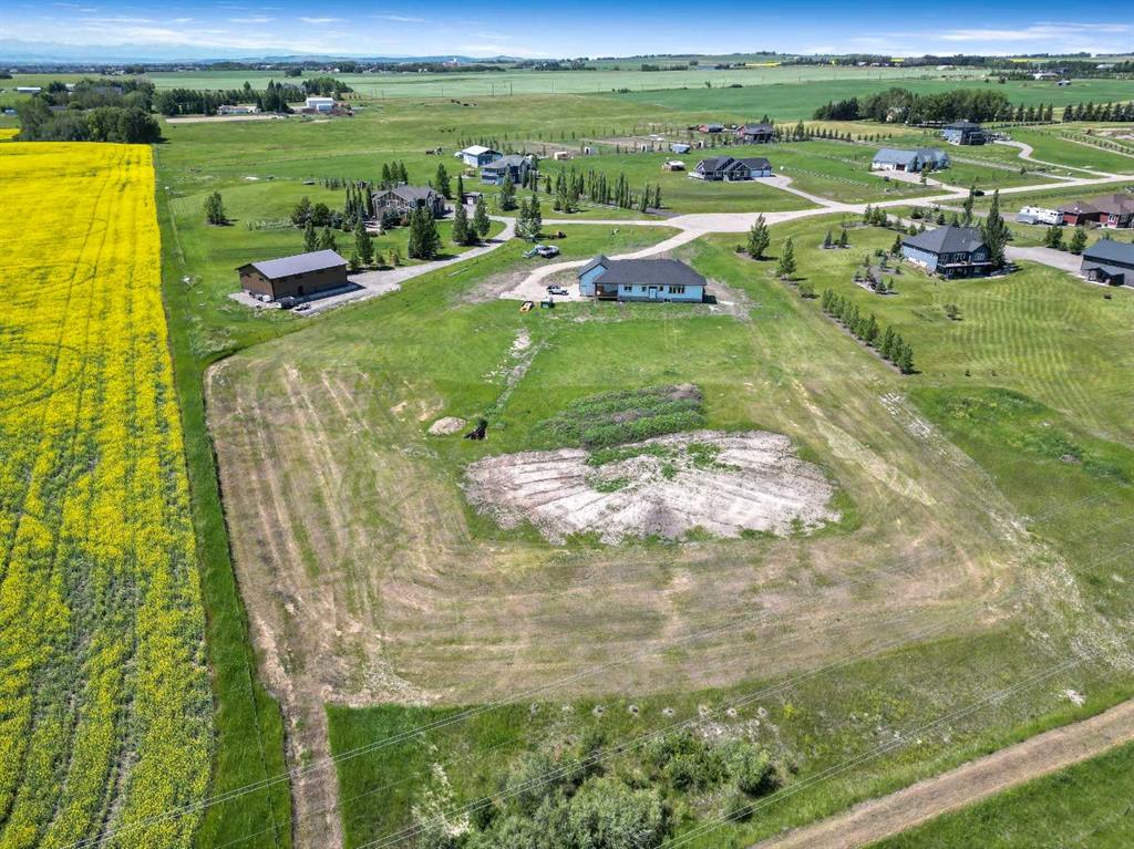 Unwind in Style and Comfort! Conveniently located just east of Okotoks and south of Calgary come and enjoy the years to come in this well-built designed to perfection 2001 sq. ft. bungalow on 4.30 acres. The main floor boasts an open concept filled with east views providing a nice flow of natural light, the warmth and coziness of a Napoleon gas fireplace flanked with built-in shelving, 9 ft. ceilings enhancing an airy atmosphere and offers ample space to comfortably accommodate large family gatherings. The kitchen is a chef’s delight, featuring timeless and natural beauty granite countertops, custom floor-to-ceiling kitchen cabinetry with remote under mounted lighting, hidden microwave shelf, island for seating, gun battle grey dual sink, and room for future dishwasher. The pantry cabinet offers pull out shelves for easy access. Options for electric or gas stove. The main level includes 3 bedrooms, including your bright & spacious & luxurious primary bedroom featuring an upscale walk-in closet with built-ins with a touch of country a barn door, an elegant 5-piece ensuite highlighted with a deep soaking stand-alone tub, shower, and double vanities, also on main offers 4-piece and a 2-piece bathroom and main floor laundry at the back entrance. The basement features a free-span steel beam, no exposed posts, it lends itself to being an open canvas for development with 9' ceilings and large windows. Oversize double attached garage with 13' ceiling height, insulated, & cement floor, nice window finishing, doggy house under the inside garage upscale entrance to the house.. Landscape will be finished to “topsoil”, 14’ x 34’ east deck pilings are installed for future development. Other features include double vapor exterior, continuous hot water with circulation pump, exterior soffit lights, cement entrance steps, sidewalks, and hardy board exterior highlighted with stone accent. Surround by covered sunrise and sunset decks to enjoy anytime of your day. All of this is located in a cul-de-sac subdivision and quick access to all amenities one needs, and to hwy 2 for the commuter in your family and minutes from South Campus Hospital or High River Hospital.