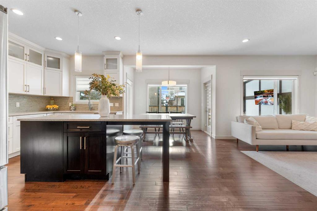 The home you’ve been waiting for in the community everyone wants to be in. Welcome to Aspenshire Estates, where this rare 4-bedrooms-up home is perfectly positioned on a sun-soaked, south-backing lot in one of Calgary’s most desirable westside communities. Walking distance to top-tier schools, Aspen Landing, dining, shopping, and everyday amenities, this is truly a home designed for modern family living. From the moment you enter, you’ll appreciate the thoughtful upgrades and timeless details, including rounded corners throughout, an open-riser staircase, custom built-ins, 9-foot basement ceilings, large basement windows, and an oversized garage. The kitchen is the heart of the home, showcasing stunning full-height white cabinetry, a large pantry, a beautiful central island, and seamless flow into the open-concept dining and living areas, anchored by a striking focal fireplace. A remodeled main-floor office with custom built-in desk space for three makes working or studying from home effortless, while a practical mudroom with added lockers keeps everything organized. The open-riser staircase leads to the upper level, where you’ll find three charming secondary bedrooms, a spacious bonus room with added, wall-anchored cabinetry, and a true primary retreat complete with a walk-in closet and a luxurious five-piece ensuite. The fully developed basement offers incredible versatility with a large 5th bedroom featuring a generous closet, a full bathroom, and a spacious open recreation area. Highlights include a built-in feature wall for TV and entertainment, a custom gym setup with 8mm rubber flooring, custom mirror, and anchored cedar wall beams, plus added wood shelving in the mechanical room for storage. Tucked under the stairs is a dream playhouse—a favorite for kids. Step outside to what may be every child’s dream backyard. A massive 38’ x 20’ poured concrete sport court seamlessly connects to existing stamped concrete and features customized lines for basketball and pickleball. Artificial turf has been added behind the court for low-maintenance play space. The backyard is further enhanced by a custom covered entertainment area, professionally constructed by Suncoast Enclosures using aluminum (anti-rust) framing and specialized panels. This space includes a built-in feature wall ready for a mounted TV with concealed power and a retractable shade for the south-facing exposure. Additional highlights include Gemstone exterior lighting on both levels of the front elevation, a fully finished garage with paint, shelving, sport lockers, and durable wall-panel storage systems (all included), central air conditioning, newer dishwasher, microwave, and hot water tank, and additional lockers added to the mudroom. This is truly where you want to raise your family—surrounded by some of the city’s top schools, close to Westside Recreation Centre, with easy access to Stoney Trail and only 20 minutes to downtown. A rare opportunity to own a thoughtfully upgraded family home.