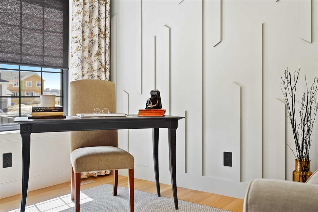 Ten-foot ceilings welcome you along with luxurious LVP flooring throughout the main floor. The chef’s kitchen is complete with quality KitchenAid appliances, quartz counters, and a spacious adjoining butler’s pantry with a second BLANCO sink, bar fridge, microwave, and extra cabinets. Black trim windows and light fixtures present an understated elegance.