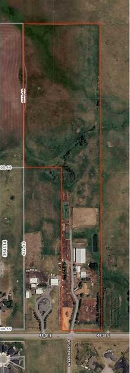 A good opportunity does not come often. An amazing opportunity is even more rare! This once in a lifetime opportunity is truly incredible! 29 acres of land, just on the edge of the fast growing town of Okotoks only a short drive to Calgary. Quiet and serene property, with panoramic views of the magnificent Rocky Mountains to the West! Stunning solar gates as you enter the property tree lined paved driveway and the sellers made sure there is enough room to make sure you are off the main road with a rig while you wait for the gates. Just across the street from the newly developed High-End Luxurious neighbourhood of Green Haven Estates. Easy and quick access to Amenities and Recreation the city has to offer. Only 3 minutes to Okotoks Costco through 370 Ave E.