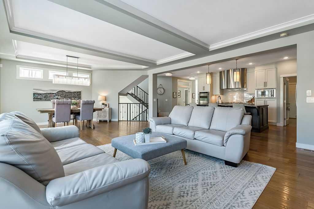 Welcome to Auburn Bay, one of Calgary’s most sought-after Lake Communities, offering year-round lakeside living. This immaculate property offers a blend of luxury, convenience, and a vibrant community lifestyle, boasting over 4,400 square feet of developed living space and is situated on a desirable corner lot, backing onto one of the community’s semi-private lake pathways. The gourmet kitchen is a chef's dream, featuring leathered granite countertops, custom stainless steel range hood, full-height cabinets, a butler's pantry, and high-end stainless steel appliances. Filled with natural light, the living areas are spacious and inviting, great for entertaining. The home also includes central A/C for year-round comfort. This elegant and extensively upgraded home includes 3+1 bedrooms and 3.5 bathrooms. The large primary bedroom features a double-sided stone fireplace and a luxurious ensuite with a stand-alone soaker tub and glass/tile shower. The washer, dryer and 75-gallon hot water tank were replaced in 2024. This home features a beautiful aggregate driveway leading to a spacious triple garage with epoxy flooring and convenient storage racks. Professionally landscaped with an abundance of trees, the property includes a full irrigation system and an artificial turf dog run for easy maintenance. Enjoy the outdoors on the covered deck, complete with roller shades, perfect for all-season use. The Homeowners Association offers year-round activities and exclusive lake access, enhancing your living experience. Walking distance to multiple schools, shopping, dining and more. Just minutes to South Health Campus, YMCA, various restaurants, and quick access to Stoney Trail and Deerfoot.