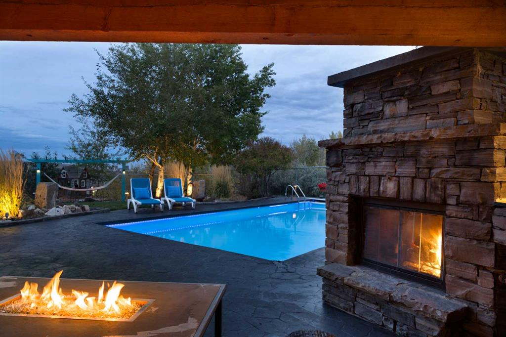Step outside to your own backyard paradise—a professionally landscaped oasis designed by an architect, featuring a 16’x32’ heated in-ground pool surrounded by stamped concrete decking, custom lighting controlled by app, and a retractable Elephant Cover for safety and convenience. Enjoy your favorite music indoors and out with the fully integrated sound system across all levels, and relax in the covered outdoor living area with a dual wood/gas fireplace and built-in Weber BBQ. There is also a gas hook up for a fire table.