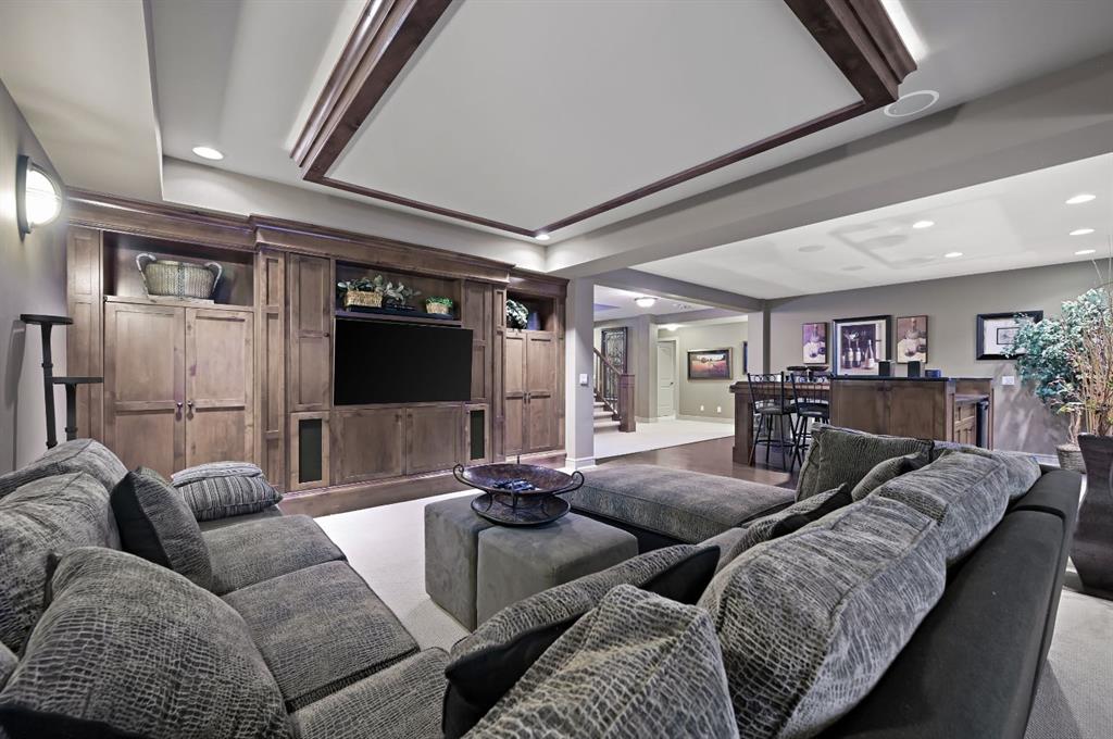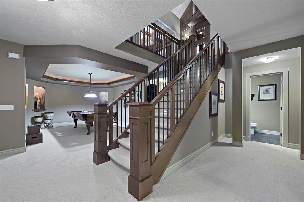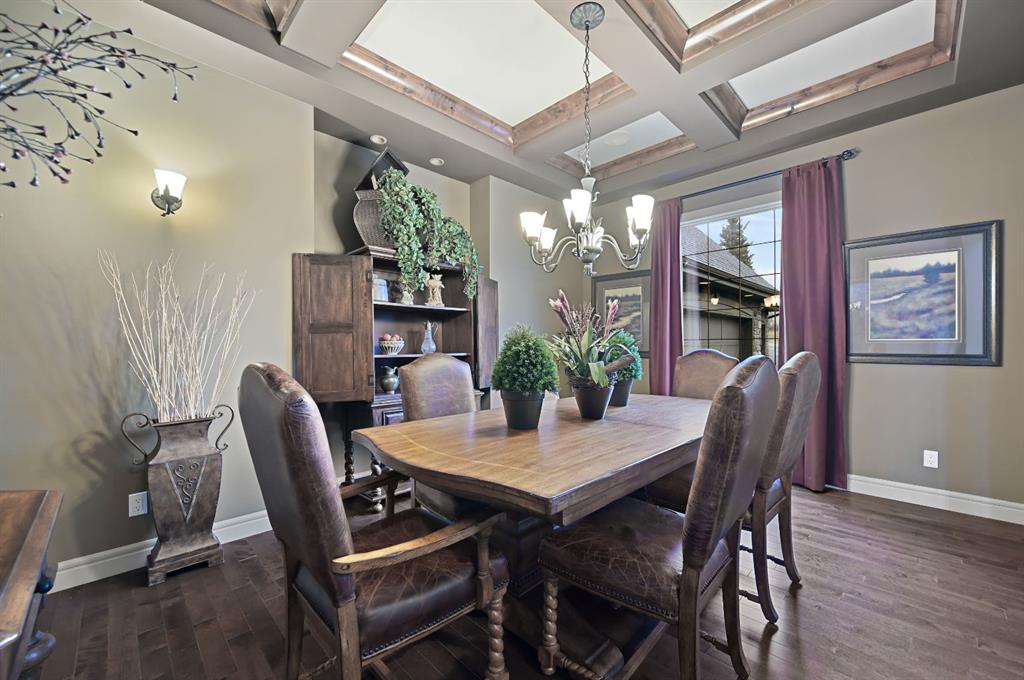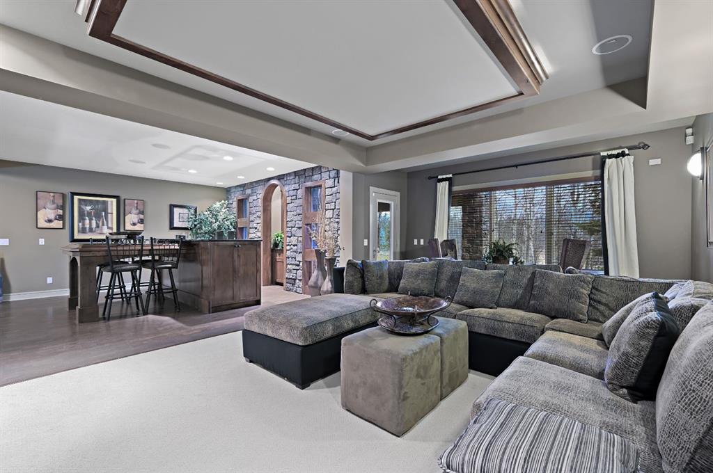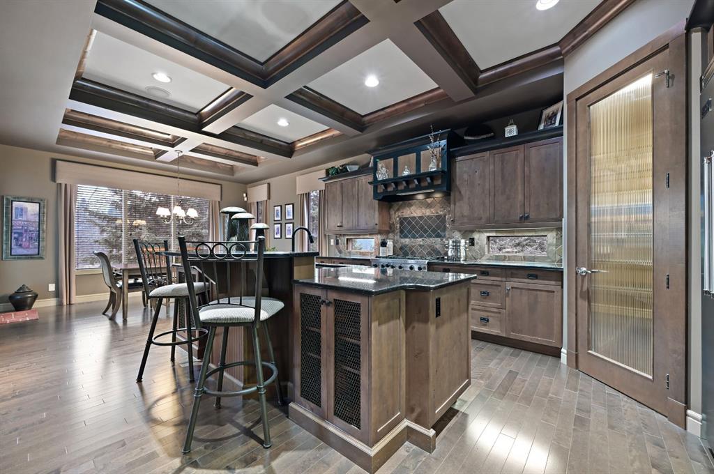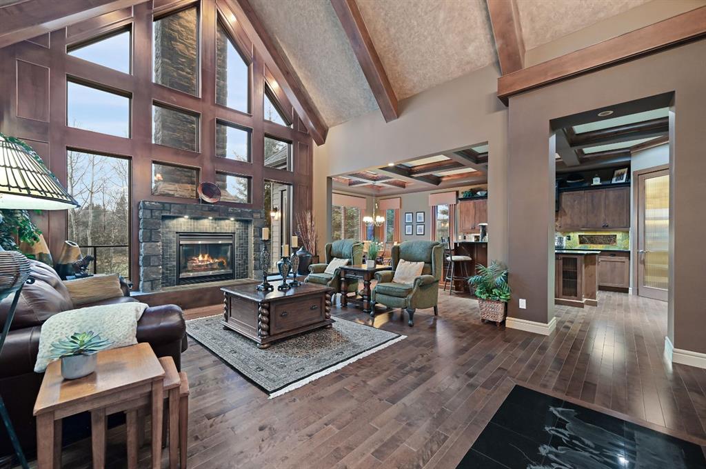 Beautiful Executive Walkout Bungalow with West Back Yard onto the prestigious Priddis Greens Golf Course! This former Show home features Extensive upgrades on the exterior with Stone Features that just say Wow! Step into a large foyer with High Vaulted ceilings accented by Beams and custom paint on the ceiling! The view to the feature back wall is amazing with decorative wood features, a warm fireplace and windows accenting this high wall and ceiling. The main floor office is a large room with extensive built ins and windows that look out over the large Front Yard. The dining room with coffered ceilings allows for family gatherings in comfort! The kitchen ( also with decorative coffered ceilings) features Knotty Alder Cabinets, upgraded Stainless Steel Appliances, 6 burner Gas Stove and a big walk in pantry. A gorgeous Island and Granite Countertops accent the large kitchen space. The large and welcoming nook offers an Exceptional Golf course view. Enjoy the Creative Tile Detail and the Rich Hardwood Flooring that warms the main floor! The Beautifully appointed large primary bedroom offers Tranquil Views and direct access to west facing deck. The luxurious ensuite has 2 vanities, a steam shower, Jet Tub and leads to a big walk-in closet. The fully finished walkout basement has the comfort of in floor heating, 3 additional bedrooms, a large wet bar with attached granite games table, Home Theatre area as well as a games room perfect for a pool table or poker area. Walk out to the covered patio and sit to enjoy nature right in your backyard. Roomy Main floor laundry and mudroom leads to the fully finished oversized triple garage offering underfloor heating and a separated stall for the special car to be away from the day to day in and out traffic! You need to see this home to fully appreciate all the extras and the fantastic location!
