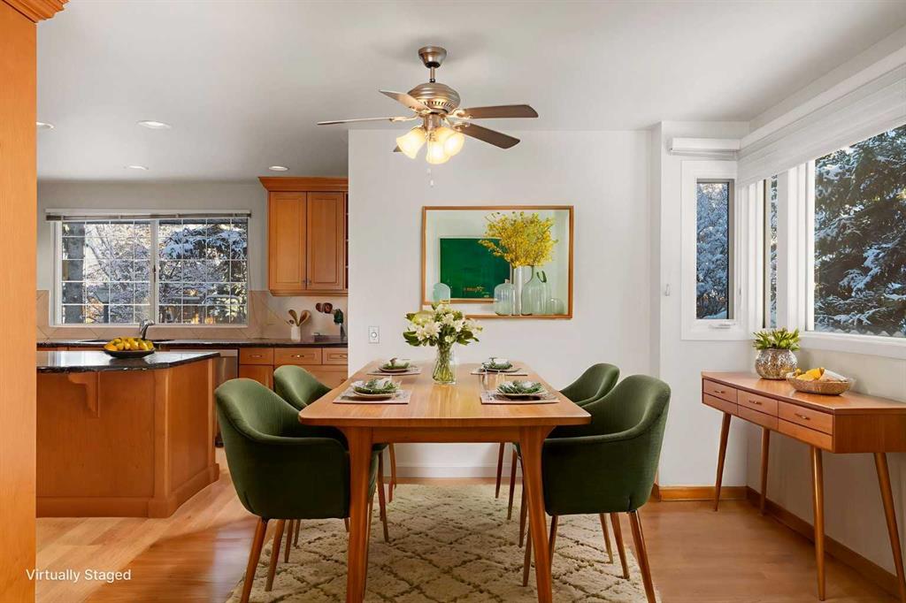 OPEN HOUSE CANCELLED. Looking for a home close to every amenity yet nestled in a quiet, mature community? This is a rare opportunity to own a spacious 2686sf 4-bedroom home in University Heights, one of Calgary’s most desirable inner-city communities. Ideally located on a quiet street across from a park and walking distance to Westmount Charter and University School. The main level features a bright living room with park views, formal dining area, updated maple kitchen with granite counters, over-sized island, lots of storage, and backyard views. A cozy family room with gas fireplace, bedroom, full bath, and laundry complete this floor. Upstairs offers three bedrooms, a 4-pc bath, and a generous bonus room off the primary bedroom ideal for an office, nursery, studio or even an ensuite. Beautiful hardwood flooring throughout most of the home. The basement includes a large rec room, workshop, utility area, and plenty of storage. Parking for all your needs with a double attached garage, front pad (fits up to 4 vehicles), and a detached single garage with lane access provides additional space for your toys, bikes, or sporting gear. The landscaped, fenced backyard features gardens and stone pathway. Close to the University District, Market Mall, Foothills & Children’s Hospitals, U of C, and numerous parks and pathways. Lovingly maintained by the original owners, this home has been cared for with pride and thoughtful updates throughout the years. Some of the photos have been virtually staged. Be sure to check out the 3D tour, then call your favourite REALTOR® to schedule your private showing!