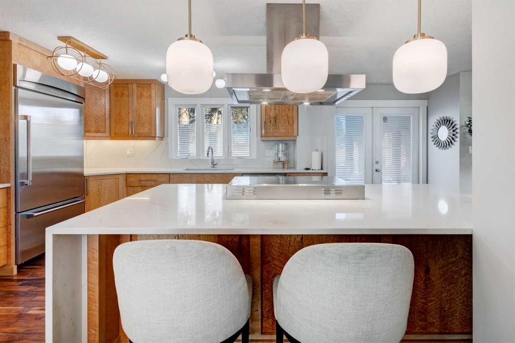 Outstanding location on a 50-ft lot just steps from North Glenmore Athletic Park, set on a mature tree-lined street surrounded by several newer builds with values approaching $3M. Great value (priced well below replacement cost!) This spacious home offers over 3,600+ sq.ft. of developed living space and was completely rebuilt from the ground up in 2007, featuring numerous upgrades beginning with the impressive grand entrance highlighted by soaring two-storey ceilings. Beautiful hardwood flooring spans the main and upper levels and complements the updated kitchen, which features newer quartz countertops, modern cabinetry, a large island with breakfast bar, and a walk-in pantry. The main floor also includes a large sunken living room, a bright and spacious dining nook, and a private office. The second level offers three well-sized bedrooms, a full bathroom, convenient upper-floor laundry, and an open flex area ideal for a study space or second office. The primary ensuite is designed for comfort with heated floors, a steam shower, large soaker tub, and double vanity. The lower level features a generous recreation or theatre room, a bathroom with heated floors, and a storage/utility room. Additional highlights include central air conditioning, two high-efficiency furnaces, solid core doors, updated shingles (2022), a pressure-treated wood fence and gates (2024), and a poured concrete patio with space to accommodate a 42-ft RV. The property also includes a hot tub and a heated garage equipped with a 50-amp hookup suitable for EV charging. Perfectly located near River Park and Marda Loop with easy access to premier schools, boutique shops, dining, golf, and extensive pathway systems, this home offers a rare opportunity to enjoy luxury living in one of Calgary’s most desirable neighbourhoods.
