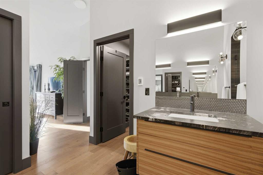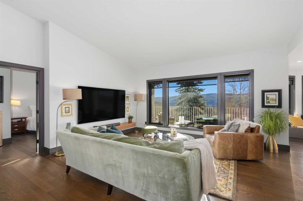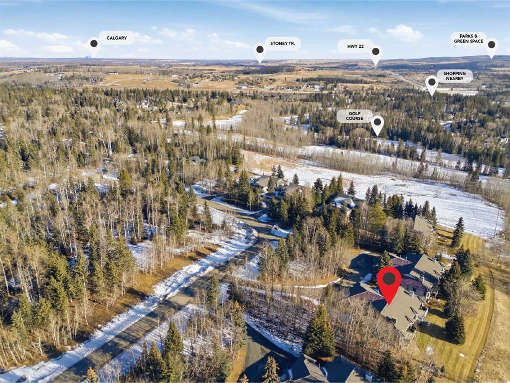 Experience luxury living in the heart of Priddis Green with this beautifully renovated Augusta-model villa bungalow, perfectly positioned to capture sweeping views of the mountains, valley, and pristine golf course. Offering over 1800 sq ft on the main level and more than 3200 sq ft of total living space, this home blends elegance with comfort. The gourmet kitchen features two-tone cabinetry, granite counters, premium stainless appliances, a 5-burner gas stove, and a striking designer penny-tile backsplash. The spacious primary suite includes a stunning spa-inspired ensuite with heated floors, oversized multi-spray shower, dual sinks, and a skylight. Vaulted and flat ceilings, wide-plank flooring, custom walnut built-ins, skylights, and an impressive, curved staircase elevate the main floor. The walk-out basement is bright and inviting with wall-to-wall windows, generous entertainment areas surrounding the 3 sided fireplace. Play pool or cards while watching the big screen, a full bath, and a large bedroom. Additional upgrades include LUX triple-pane windows, two new furnaces, central A/C, enhanced soundproofing, and an oversized double garage with extra storage and 220v, extra space for you golf club and bikes. Also set up for 220v Hot Tub out back. Set within a well-managed condo community with a strong reserve fund, this exceptional villa offers unmatched tranquility, convenience, and lifestyle — from cross-country skiing at your doorstep to golfing just steps away.
