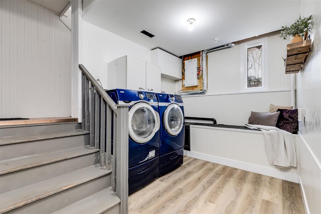 Comfort and efficiency were clearly prioritized. The home is equipped with three furnaces providing separate zoning for each level, two central air conditioning units serving the main and upper floors, an upgraded electrical panel, a new gas hot water tank, and a Nest smart thermostat. A new washer and dryer on the upper level add everyday convenience.