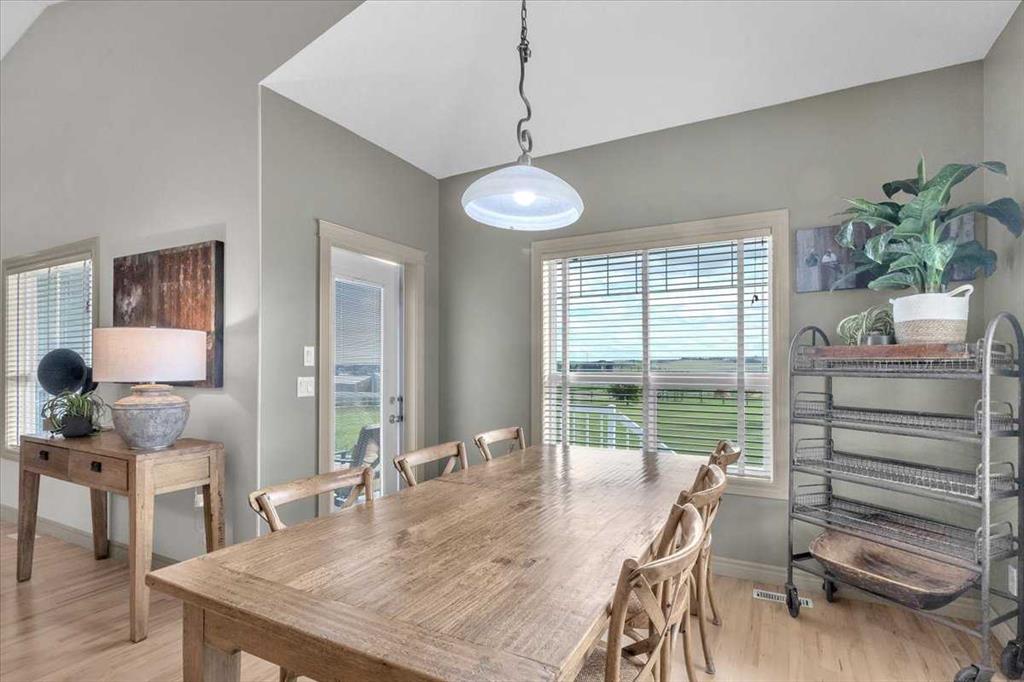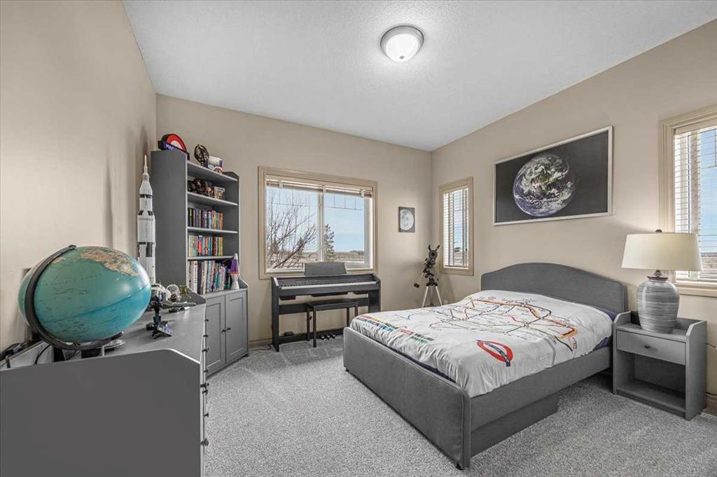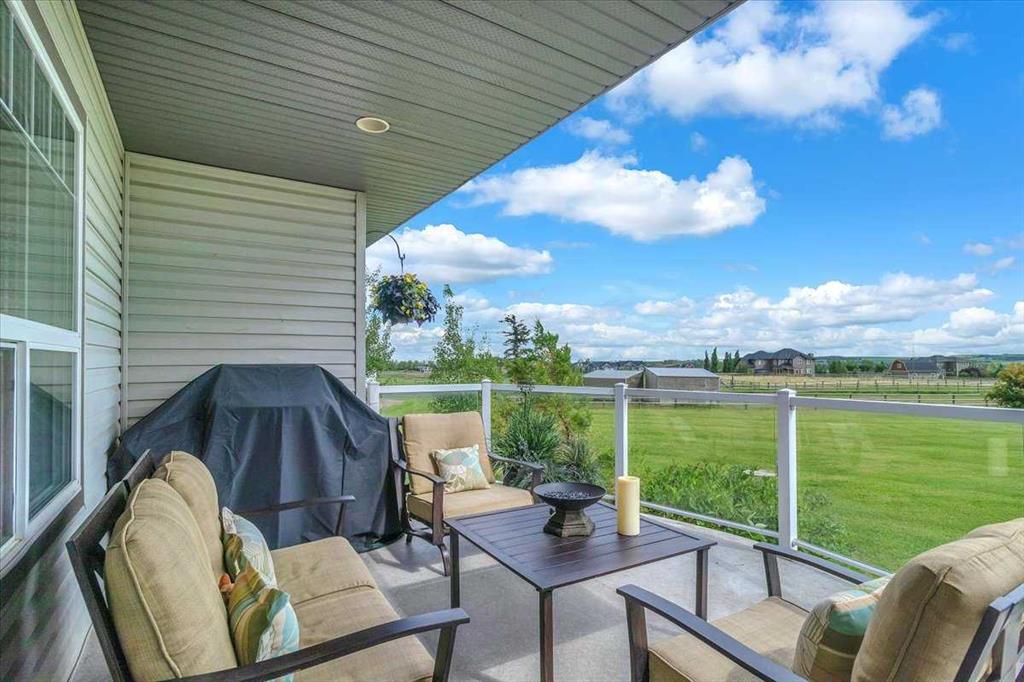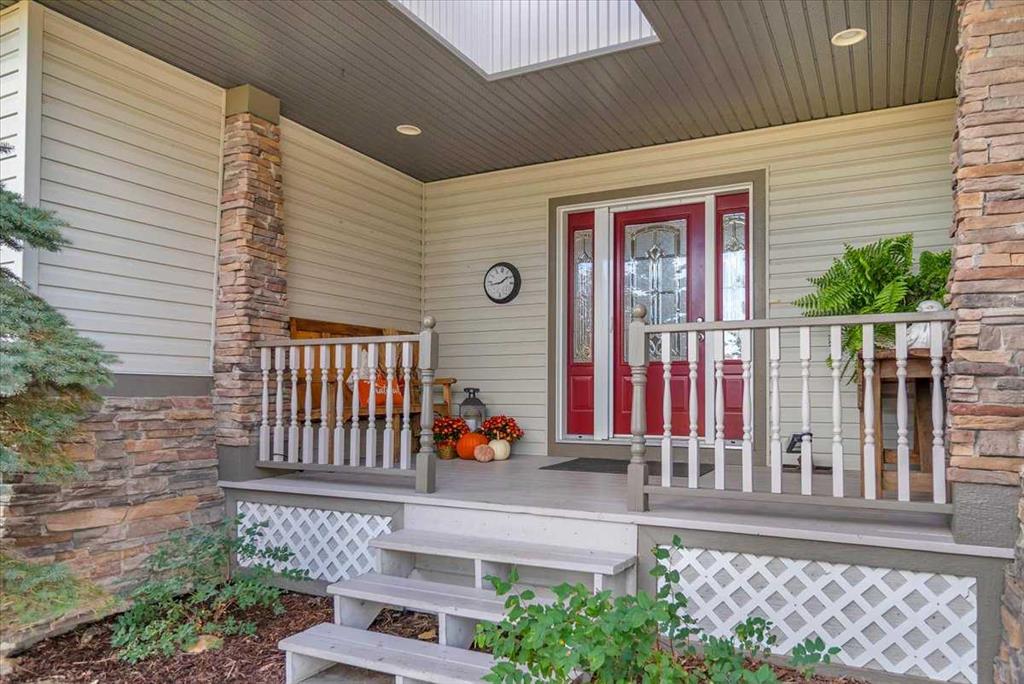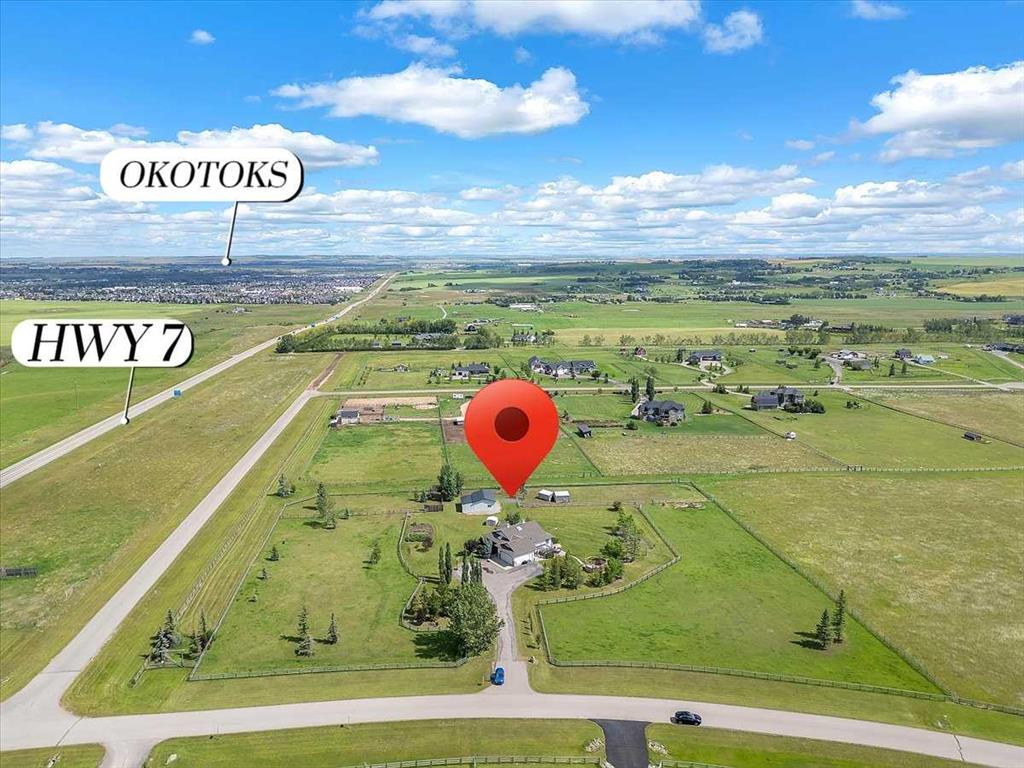 Step right into a world where rural serenity meets urban accessibility-just minutes to Okotoks! Nestled in a picturesque sub-division with southwest views including foothills and mountain views, this beautiful acreage is a haven for horse lovers and offers 4.25 acres which are fenced and cross fenced into 4 pastures-each with post and rail fencing, giving it a unique country charm. This perfect setting features a walk-out bungalow with over 2600 sqft of developed living space in an open floorplan, with vaulted ceilings, 2 beds up and 2 down, air conditioning and paved drive right to the front step. Along with a barn that comes with 2 stalls, a tack room, horse shelters and additional storage, this beautiful equestrian community is bordered to the south by 8 acres of reserve and riding trails including 10m wide riding trails throughout the subdivision making this a dream location for equestrians and those looking for additional space. Inside, this welcoming home offers an open concept layout with vaulted ceilings, a skylight that floods the home with natural light, a cozy fireplace and doors that lead out to the south facing deck from which to enjoy the breathtaking views of the valley and foothills. The open kitchen, dining and living room are great for entertaining and the master bedroom with 5 pc ensuite, another bedroom and 4 pc bath complete the main floor living space (both bedrooms have new carpet). You will appreciate the curved staircase that leads down into the bright walk out basement, featuring two bedrooms, a 4 pc bath, a cold room for your garden produce, a large family room with gas fireplace and functional wet bar which makes for another great space to entertain your family and friends. Outside, a private patio off the walkout basement provides a serene retreat, while on the west side you will find another extra patio area where you can soak in the sun and enjoy the mountains. The charming firepit area adds warmth and character to the outside space and you will appreciate the garden space. The well is a great producer at 6 g/m. You will find the perfect blend of outdoor living while close to Okotoks in this unique and beautiful space! (Private and public school buses come to the door)
