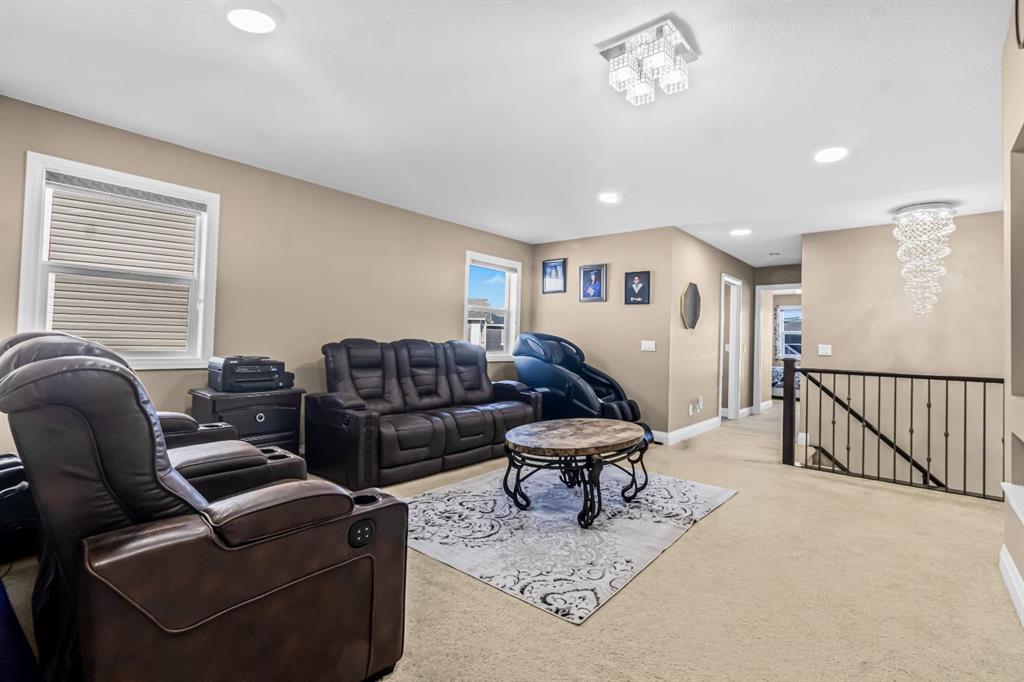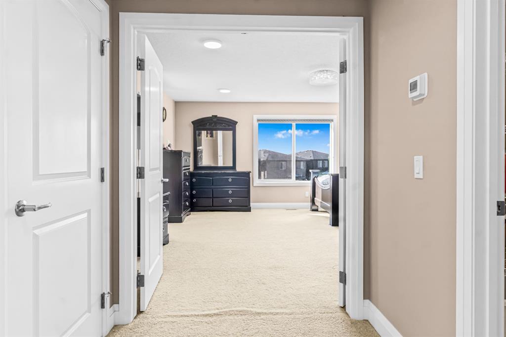 Welcome to this FULLY UPGRADED, executive home nestled in the heart of Cornerstone, one of Calgary’s most sought-after, amenity rich communities. This beautifully appointed home offers over 4,400sqft of total living space, combining elegance, functionality, and comfort for today’s modern family. Step through the grand double-door entrance into a spacious, sunlit family room, perfect for welcoming guests or relaxing in style. The open-concept floor plan seamlessly connects the family room to the gourmet chef’s kitchen, featuring granite countertops, premium cabinetry, and a massive island ideal for entertaining. Just off the main kitchen, you’ll find a beautiful SPICE KITCHEN with a walk-in pantry, making everyday cooking and hosting effortless. Flooded with natural light, the second spacious living room features a modern gas fireplace and flows perfectly into your dining area. There is also a main floor den that can easily function as a bedroom, complemented by a full bathroom, offering both flexibility and convenience. Upstairs, you’ll find four generously sized bedrooms, including a truly spectacular primary retreat. The primary master bedroom offers a peaceful escape with a massive walk-in closet and a luxurious ensuite featuring double vanities, soaker tub and a custom tiled shower. The other 3 bedrooms on the upper floor also each have direct access to a full bathroom. A centrally located bonus room provides a cozy family hangout space, and the pocket office/prayer room adds convenience and versatility for today’s modern lifestyle. The fully finished basement is an incredible asset—featuring a 3-BEDROOM illegal suite (subject to city approval) with a separate entrance, its own laundry, and a full bathroom—perfect as a mortgage helper or for extended family living. Outside, find your fully fenced and landscaped backyard, offering privacy, serenity, and an excellent place to hang out. Other notable features of this home include a triple car driveway, massive double car garage, dual furnaces, over 6,200sqft lot, rear alley access and so much more! This is an extremely rare opportunity to own a custom-upgraded luxury home in an elite community. Homes like this don’t come along often—schedule your private showing today!