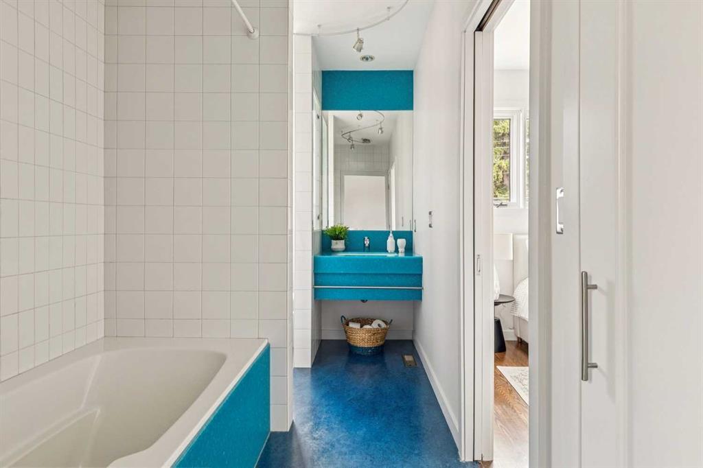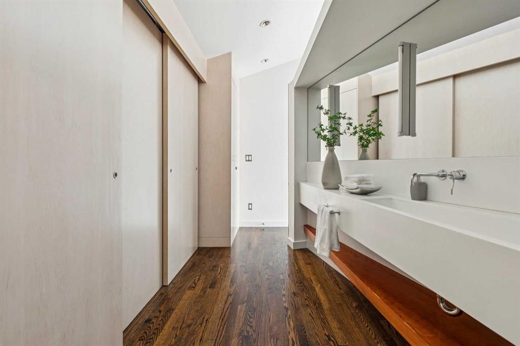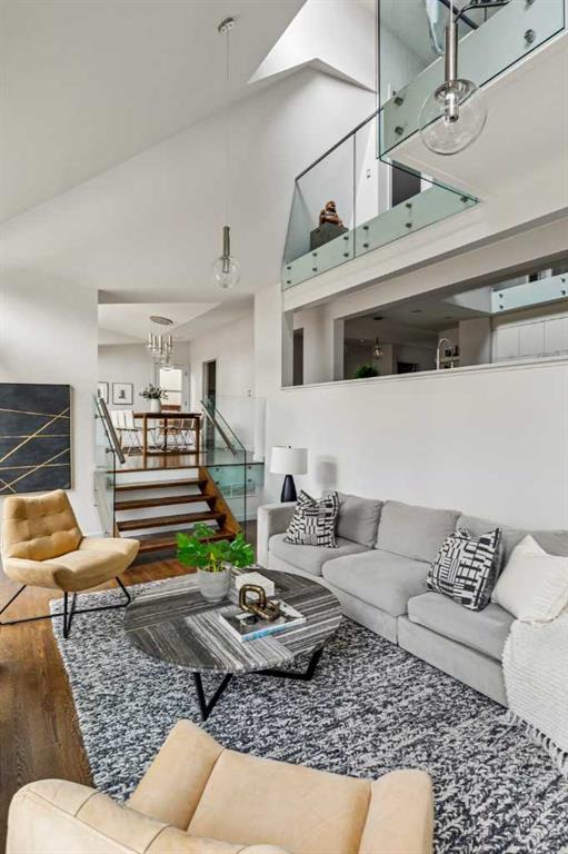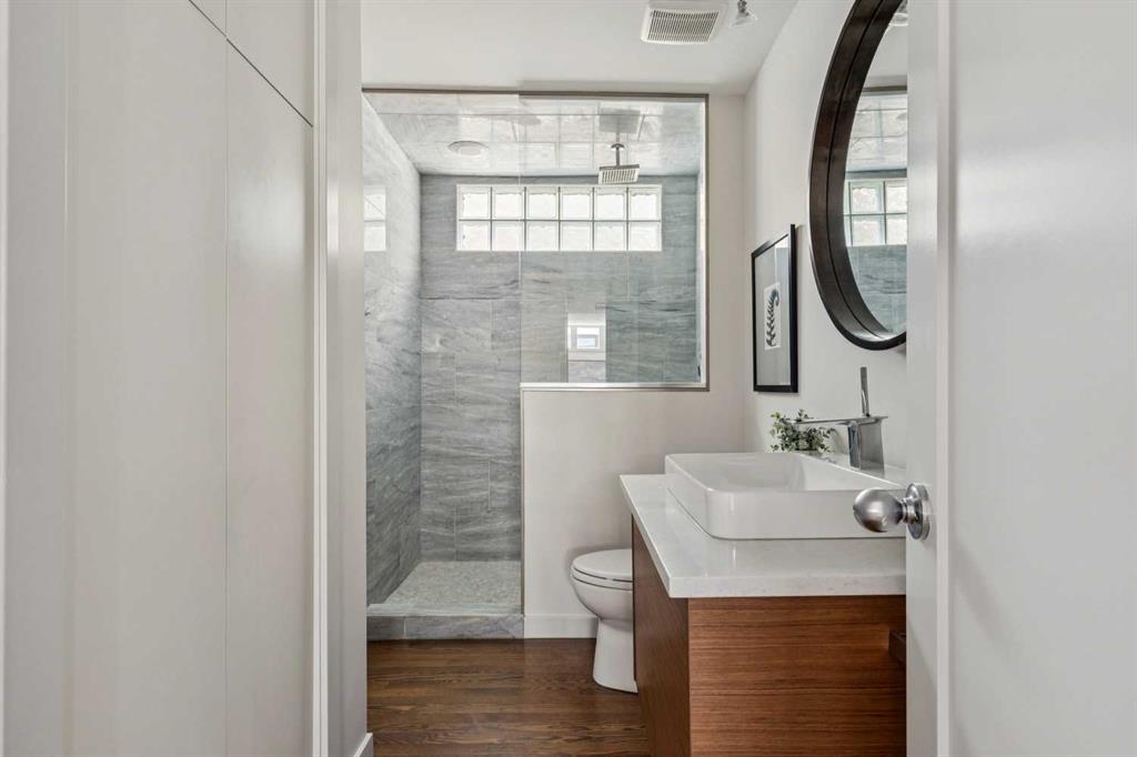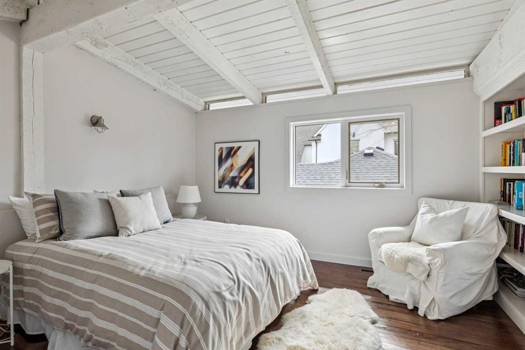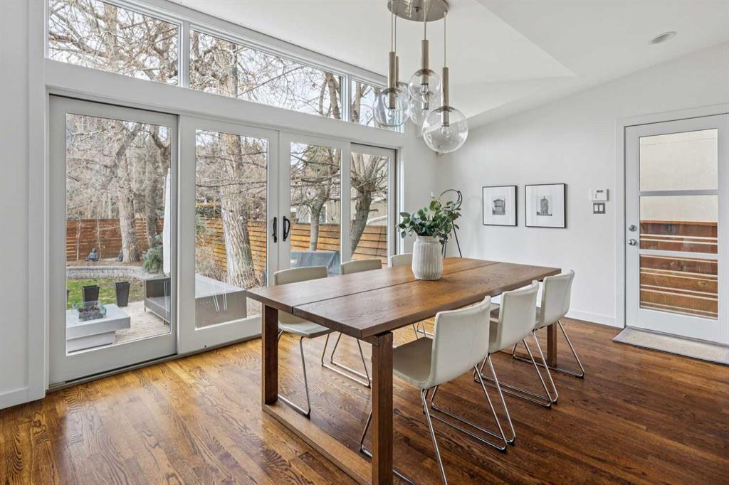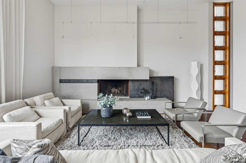 Open house Saturday April 25 2:30–4 pm. One of a kind two story executive family home in prime East Elbow Park location offering over 4000 square feet above grade, a total of 5 bedrooms, double attached garage + beautiful sunny west facing backyard. This modernist home features an intriguing layout + expansive principal rooms throughout. The elevated living room showcases soaring ceilings + a striking concrete framed wood-burning fireplace, while the formal dining room provides an impressive space for entertaining. At the front of the home, a comfortable self-contained sitting room/den with sliding glass doors offers a private designated space away from the hub of the house. The chef’s kitchen, renovated approximately 10 years ago, is well laid out with professional appliance, an island, abundant storage + overlooks the sunken family room which along with the large informal dining area are filled with natural light from a wall of windows + patio doors that open onto the private west facing backyard complete with deck + mature trees. To complete the main floor there is a cheery laundry room with added storage + an added feature of a main floor bedroom with easy access to a 3-piece bath that adds versatility to the property. Upstairs, four generously sized bedrooms are all ensuited . The primary suite is a standout with a floating concrete + cherry wall, an efficient closet system, a well-appointed ensuite + its own private office space. The exterior offers strong contemporary curb appeal with newer finishes completed in 2024 + a welcoming glass entry. Additional features include a double heated attached garage with epoxy flooring, large mudroom with extra storage, developed lower level (renovated in 2024) + newer rear windows. Ideally located on a very quiet street that is within walking distance to all levels of schools, 4th Street shopping, the pathway system + the Glencoe Club. A rare opportunity to own a distinctive architectural home in one of Calgary’s most sought-after neighborhoods.