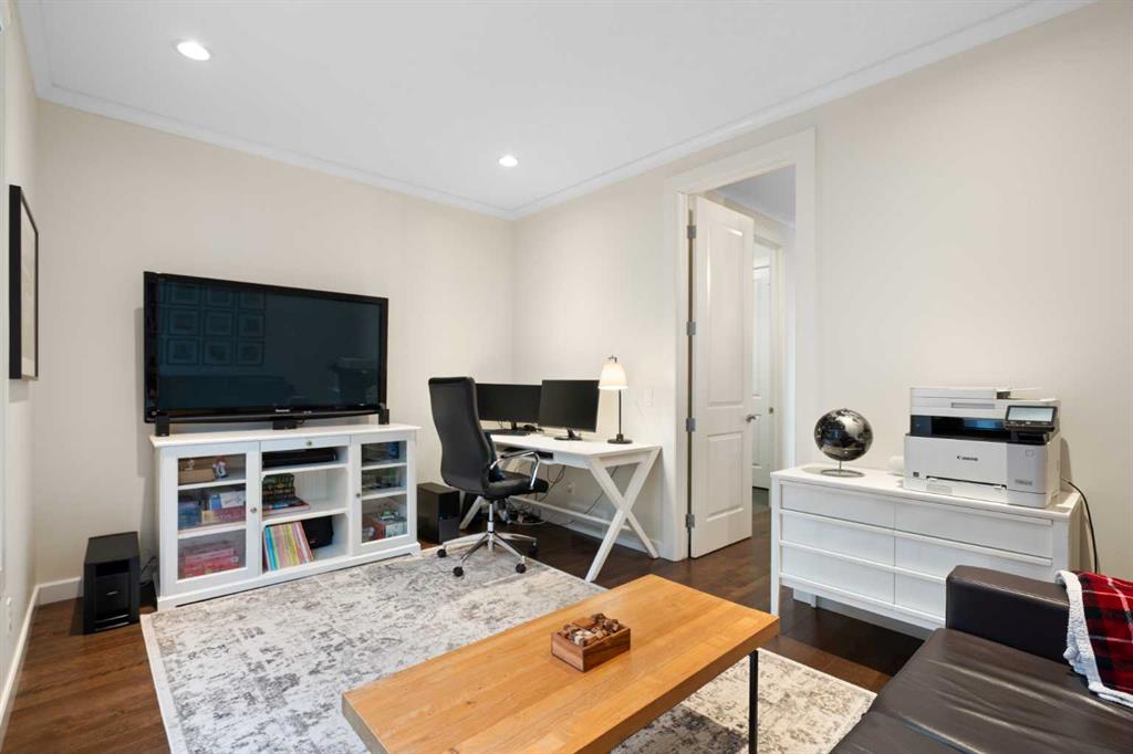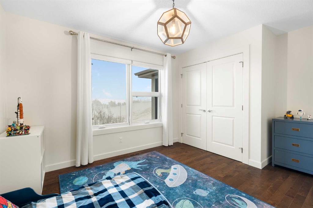 The walkout basement offers an impressive footprint with two additional bedrooms (one currently set up as a gym), a large recreation/theatre area with wet bar, and a whimsical under-stair playhouse (Harry Potter would be jealous). From the upper deck, an architectural curved staircase leads down to the fully fenced and beautifully landscaped backyard, creating a private outdoor space for relaxing, entertaining, and enjoying the natural surroundings. The home is also equipped with Gemstone exterior lighting, offering year-round customizable lighting that adds both style and convenience.