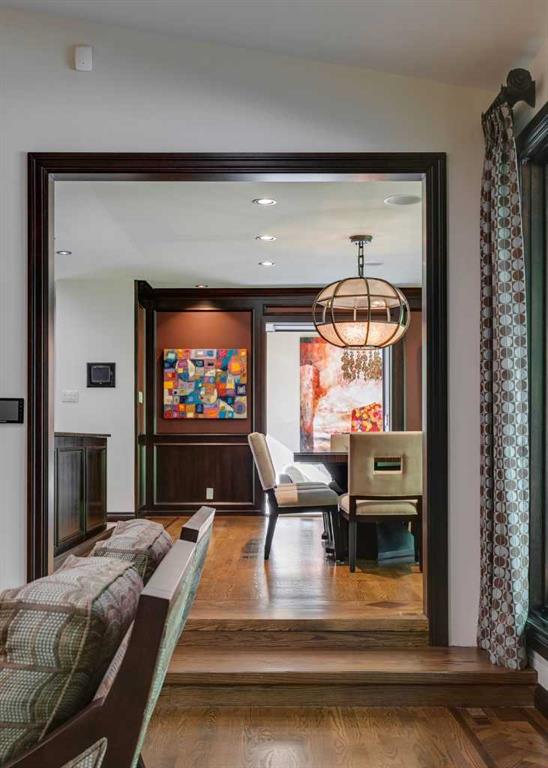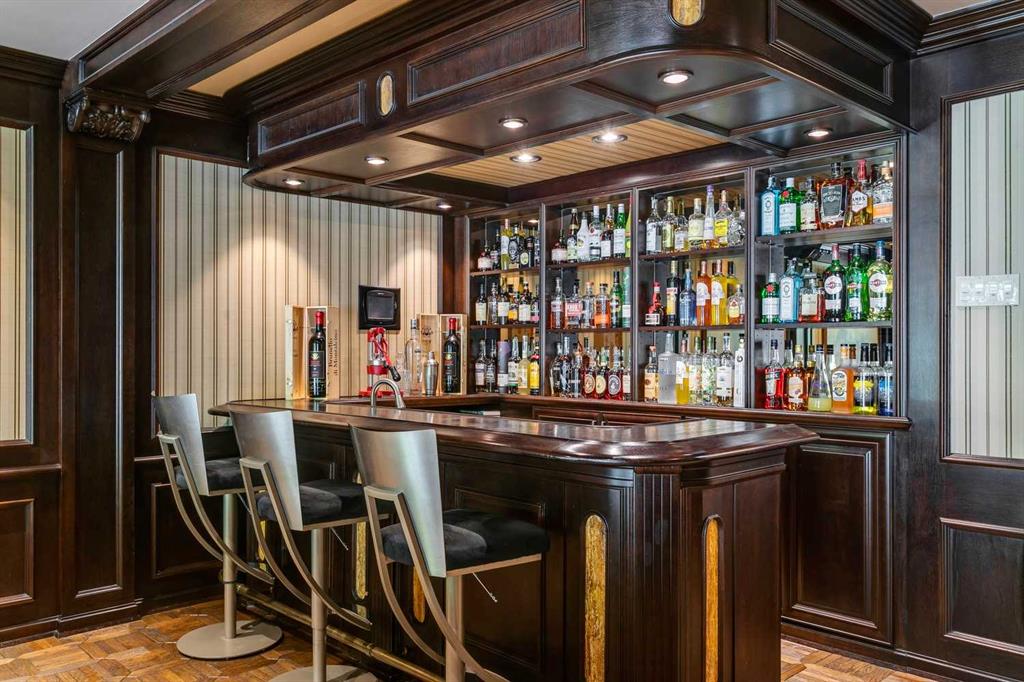 This exceptional, high-end bungalow rests gracefully on a sprawling double lot, offering an unmatched level of sophistication and elegance. With meticulous attention to detail and no expense spared, this home is a true work of art. As you approach the residence nestled within the curve of the cul-de-sac, the picturesque, park-like setting immediately sets the tone. Step through the hand-chiseled walnut doors into a grand foyer that hints at the splendor beyond. The main rooms are nothing short of magnificent—expansive in scale and exquisite in finish. Rich hardwood with parquet detailing, ledgestone and ornate metal fireplace surrounds, floor-to-ceiling windows framing the lush gardens, and custom recessed lighting all blend seamlessly with smart home technology and advanced security features. At the heart of this extraordinary home lies the chef-inspired kitchen, a perfect balance of function and flair. Designed for the most discerning culinary enthusiast, it features a walk-in cooler, gas cooktop, double ovens, and commercial-grade appliances. Whether hosting an elegant soirée or preparing an intimate dinner, this kitchen delivers both performance and beauty. A variety of inviting spaces allow for relaxation or entertainment: a sun-drenched family room, a sumptuous den complete with hotel-style bar and brass foot rail, a theatre room with 108” screen, and a home gym with shower and sauna. The sleeping quarters are equally impressive. Each of the five generous bedrooms offers the ultimate in comfort and privacy. The primary suite is a sanctuary, featuring a sunken lounge area, cozy fireplace, walk-in closet, and spa-inspired ensuite. Every detail contributes to a sense of calm sophistication. Outside, the meticulously manicured grounds create a private outdoor haven. Stroll along enchanting garden pathways or simply enjoy the serenity of the landscaped oasis that surrounds you—a perfect backdrop for entertaining or quiet reflection. Future Development Potential - This extraordinary property sits on two full lots, offering exceptional flexibility for the future. While the existing home is an architectural gem and not a teardown, the unique double-lot configuration provides the rare opportunity to divide the land should one choose to explore redevelopment potential down the road. It’s the best of both worlds: a timeless estate today, and an investment in tomorrow. Located in the exclusive enclave of Eagle Ridge, surrounded by other distinguished residences, this property stands as a symbol of achievement and refined taste. With its extraordinary features, unparalleled craftsmanship, and prestigious setting, it represents a once-in-a-lifetime opportunity to own one of Calgary’s most exceptional homes.