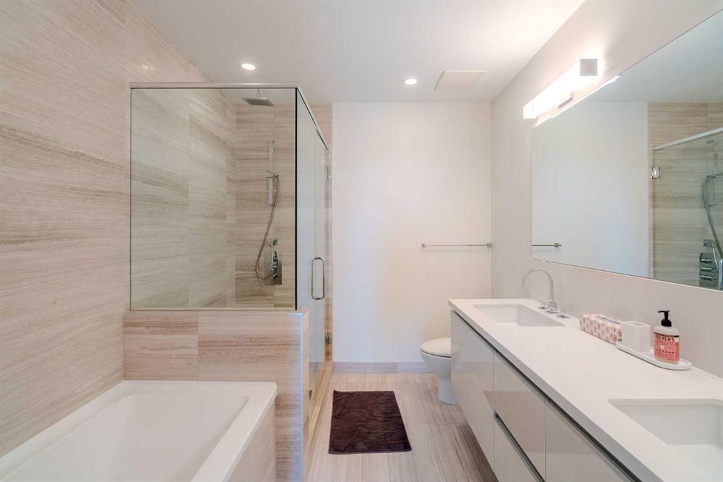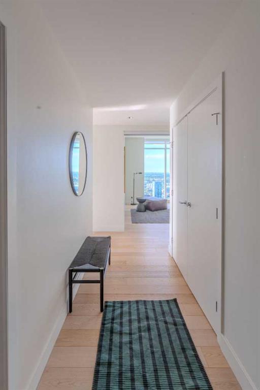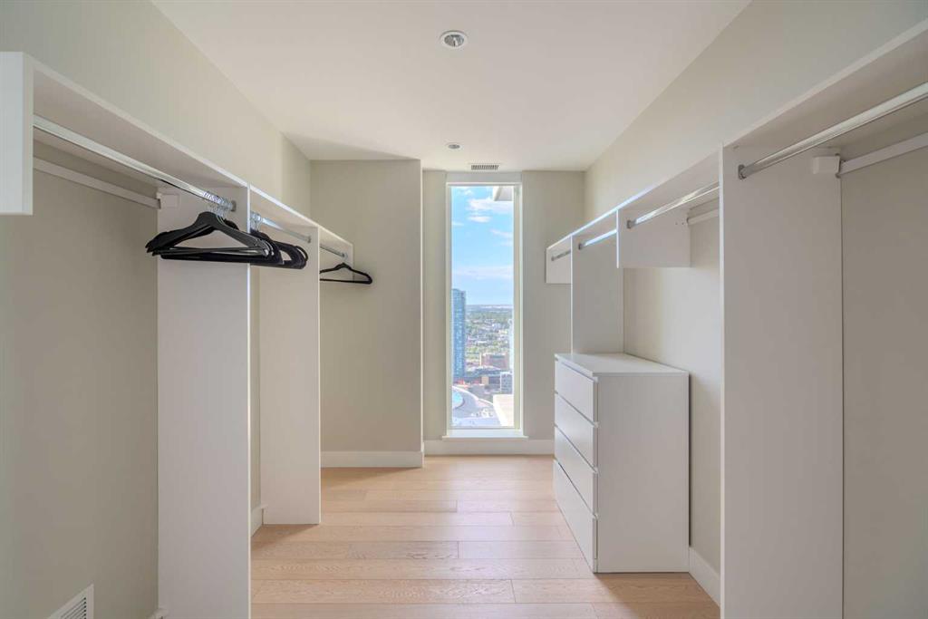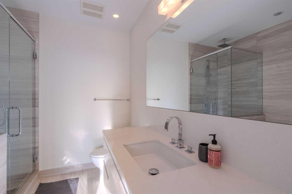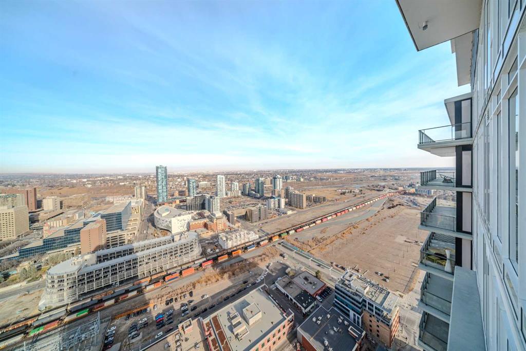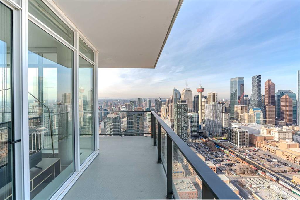 Enjoy unobstructed, panoramic views of both the downtown skyline and the majestic Rocky Mountains through floor-to-ceiling windows that flood the home with natural light. The north-west exposure is completely un-obstructed corner to corner, ensuring privacy and an incredible backdrop to every room. A expansive wraparound balcony comes complete with natural gas connection. The sleek, modern kitchen is equipped with Miele appliances and premium Armony Cucine cabinetry from Italy, complete with a sophisticated silent-close system found throughout the kitchen and both ensuites.