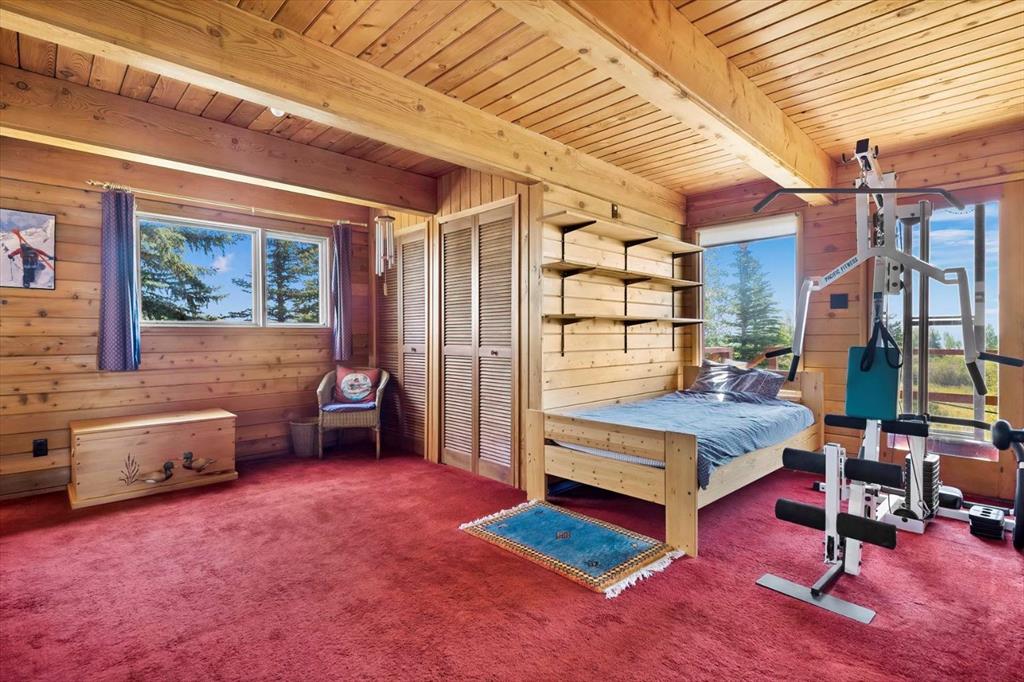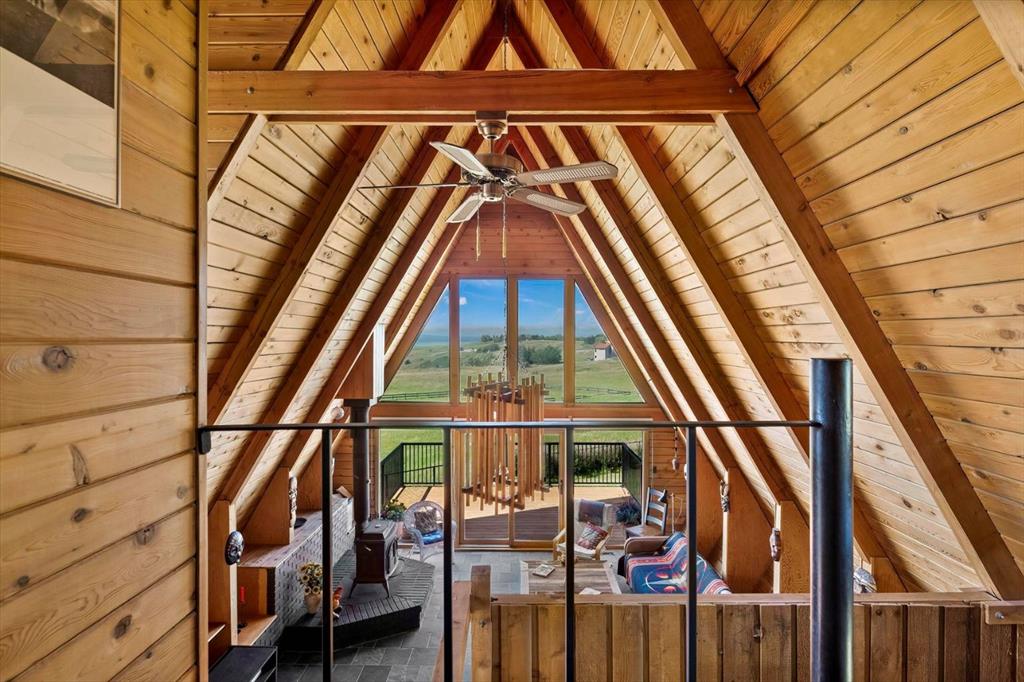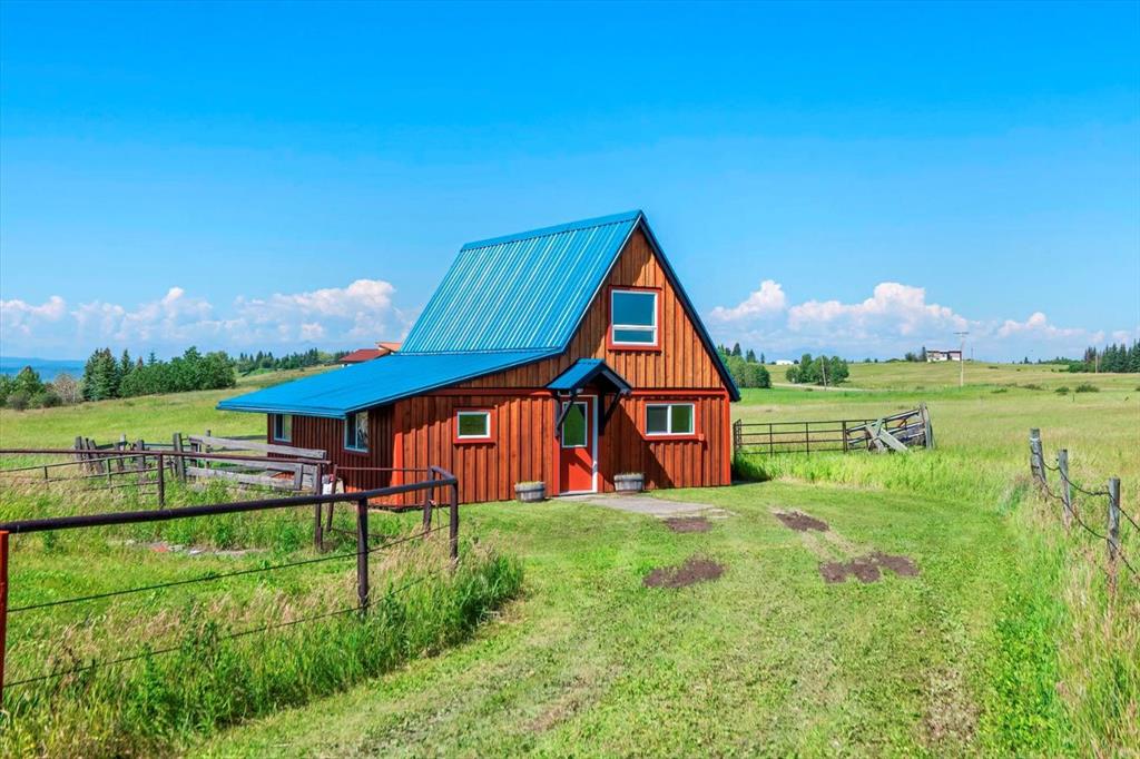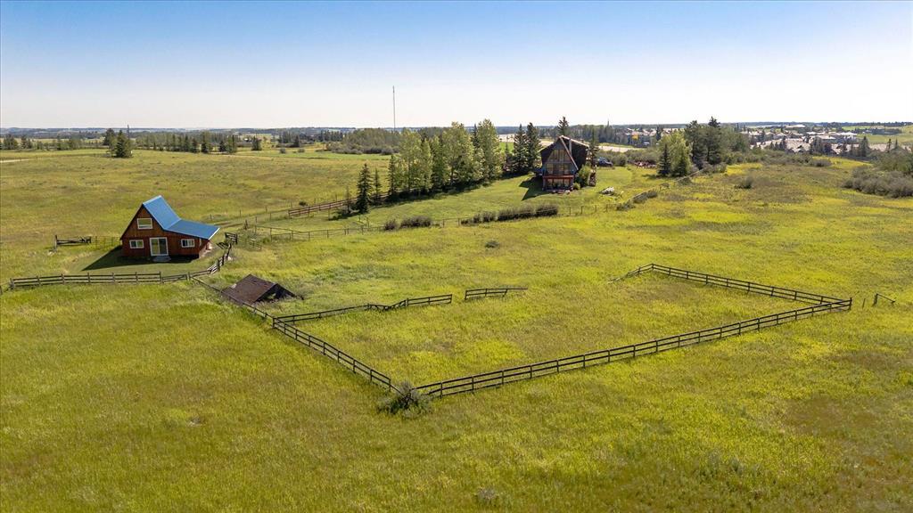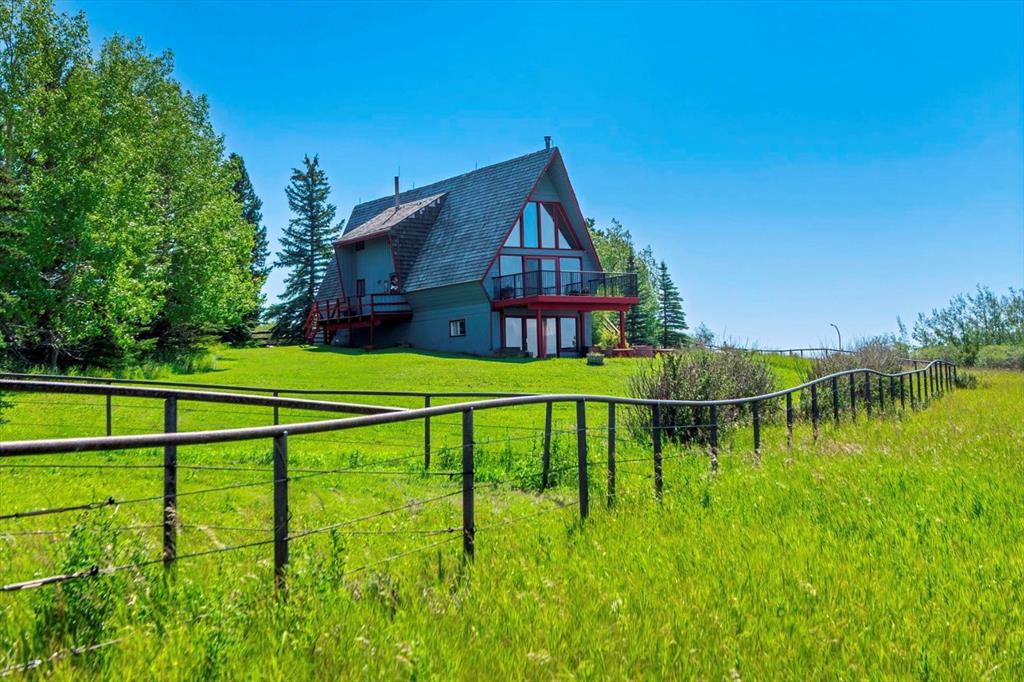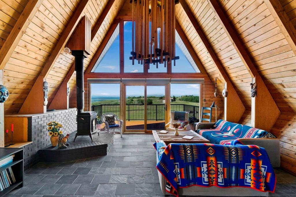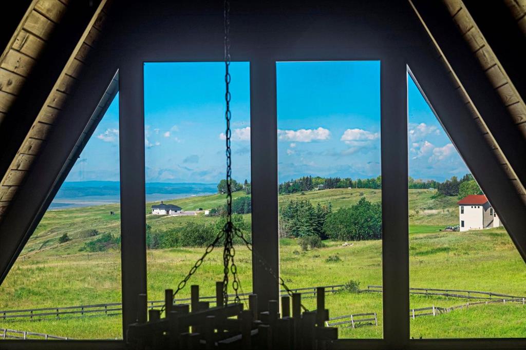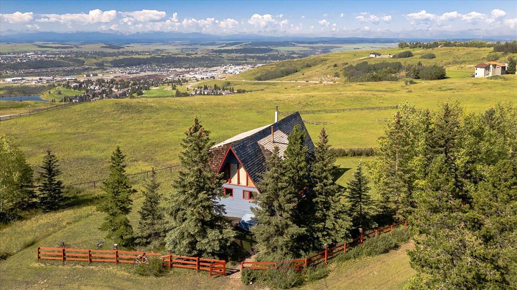 From the country road just five minutes from Cochrane, this A-frame cedar chalet appears as a charming retreat tucked among the trees. Step back to discover the extraordinary truth - 20 sweeping acres unfold before you, revealing some of the most coveted panoramic views in the region, stretching east to west toward the Rocky Mountains. All this and yet you are just a 5 minute drive to Cochrane, 15 minutes to Calgary and you can be at the Calgary airport in less than half an hour!