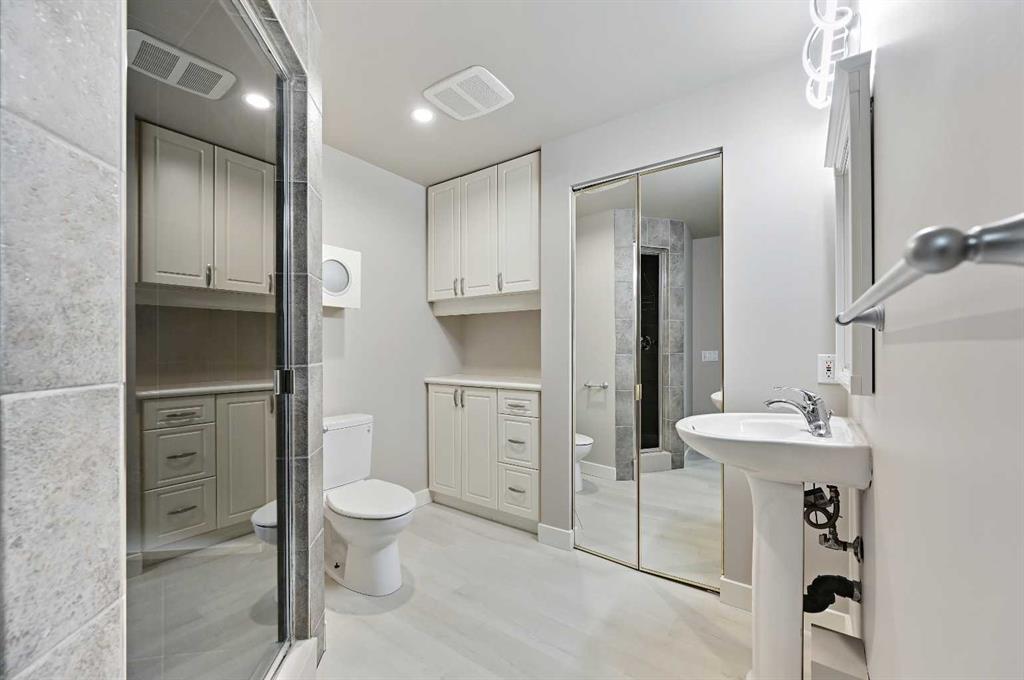 The fully developed basement extends the living space with a large rec room, flex area, 4th bedroom, 3-piece bath with steam shower and heated floor, a finished storage room, and a second kitchen (no stove connection).