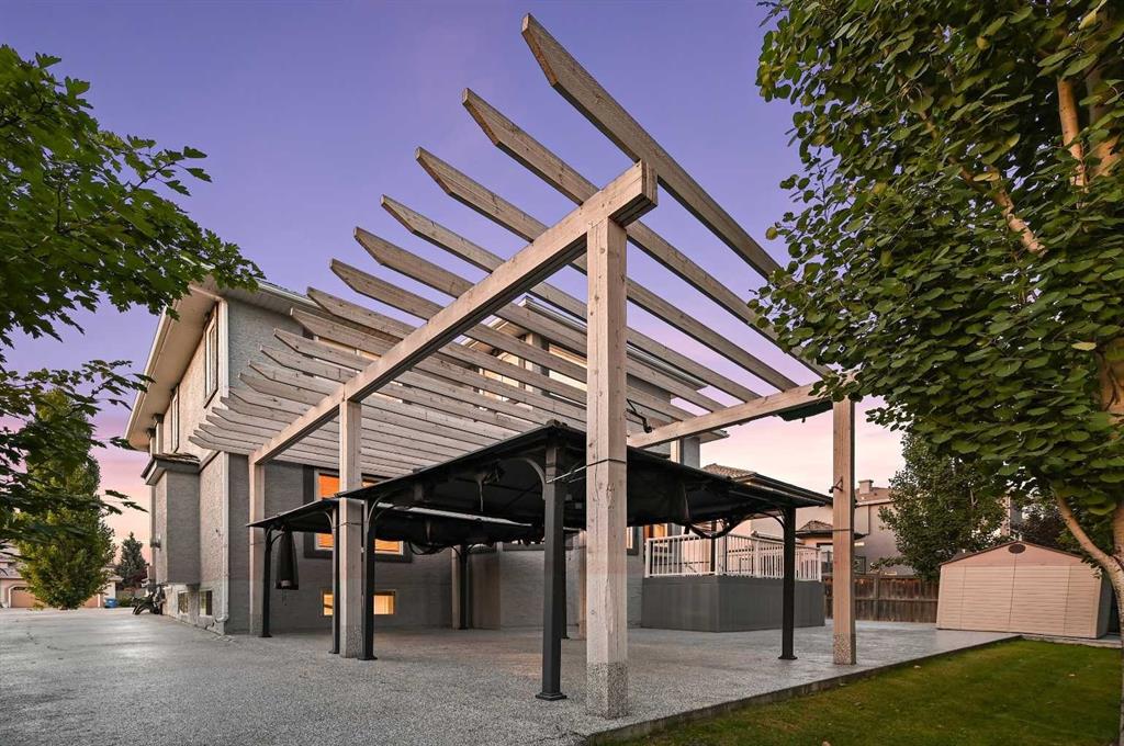 Outdoors, the south-facing low maintenance backyard is a private oasis with a pergola, two gazebos, a covered BBQ area, epoxy-coated patio, and two storage sheds—perfect for both relaxation and entertaining.