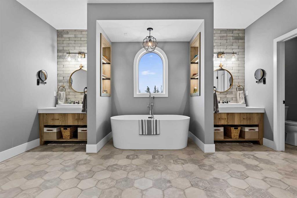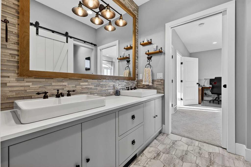 Upstairs, retreat to a large bonus room with mountain views, the perfect place to relax and unwind. Two spacious bedrooms are connected by a beautifully finished Jack & Jill bathroom, while a designer laundry room adds everyday convenience. Further down the open hallway you’ll find the primary suite that is nothing short of spectacular!! Featuring west-facing mountain views, its own fireplace, and the showstopping en-suite bathroom with top tier luxury, complete with a deep soaker tub, his and hers sinks and vanities, massive walk-in shower, designated water closet, and an expansive walk-in that truly has the WOW Factor.