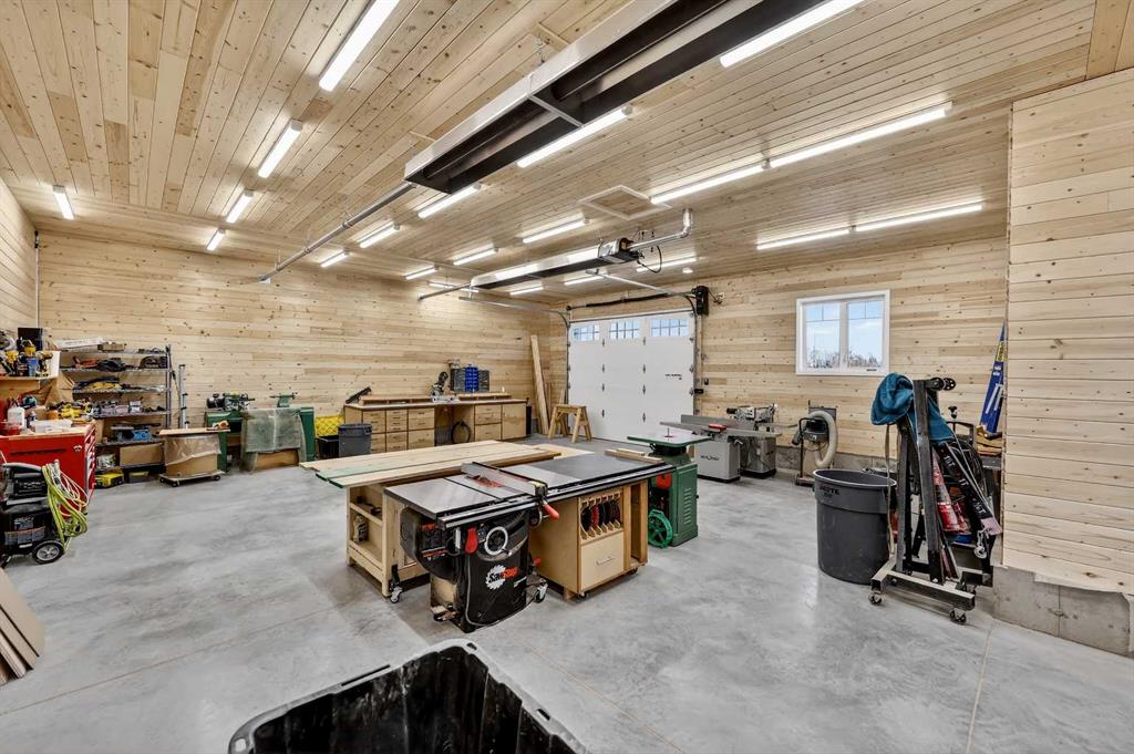 The striking exterior immediately sets the tone with HardiePlank siding, extensive stone detailing, Gemstone lighting, a welcoming front porch, and a brand new 44'x20' cedar deck designed for entertaining and sunset views roughed in for an outdoor fireplace. A heated 4-car garage and a newly completed 1,420 sq ft detached workshop, architecturally matched to the home with freshly paved access, provide exceptional space for vehicles, hobbies, or ample storage.