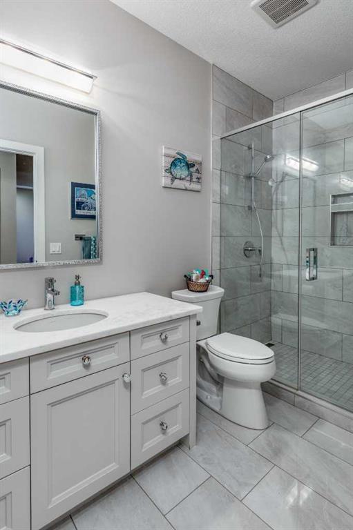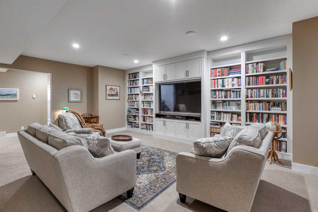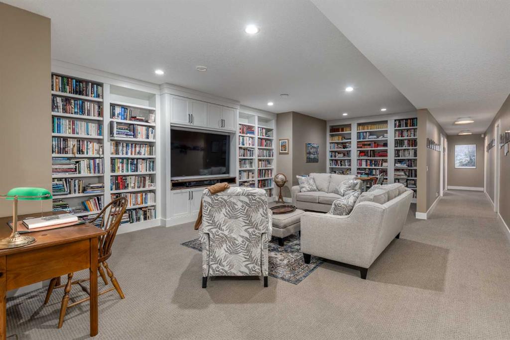 The fully developed lower level (completed in 2023) includes in-floor heat throughout, three additional bedrooms, an expansive recreation room with custom bookshelves and cabinetry, a dedicated wine room, massive storage space, and both a 3-piece and 5-piece bathroom — each featuring heated tile floors and glass-enclosed tiled showers.