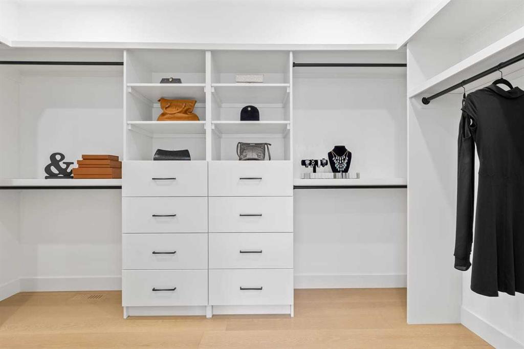 Set within the prestigious community of Patterson Heights – The Point - this exceptional luxury residence offers over 5,000 sq. ft. of elevated living designed for comfort and functionality. From the moment you arrive, the home makes a statement with a grand entryway highlighted by a floor-to-ceiling custom closet. Just off the entrance, a well-appointed mudroom features a walk-in closet and a striking full-height wall unit, providing direct access to the oversized double garage. The garage is fully outfitted with EV charging outlets, a gas heater rough-in, and hot and cold water taps. Completing this level is a full bathroom with quartz countertops and a floor-to-ceiling glass shower. The main living space is defined by 10-foot ceilings and wide vinyl plank flooring, creating a clean, modern flow throughout. The living room offers warmth and style with a custom wall unit and ambient LED lighting, while the dedicated bar area, complete with a bar fridge, is ideal for hosting. A private, light-filled gym with recessed lighting, floating shelving, and generous space for equipment. A striking open-riser staircase and a private elevator connect all 3 levels and lead to the stunning 2nd floor. Here, you’ll find a bright home office overlooking a large window, a sleek powder room, and a refined dining area anchored by a built-in LED-lit wall feature. Glass sliding doors open to a large East facing balcony, while the family room impresses with a coffered ceiling, art-block feature wall, and gas fireplace. Additional sliding doors lead to a fully landscaped backyard complemented by a composite rear deck with a gas line, backing onto peaceful green space, where nature and wildlife create a serene setting. The chef-inspired kitchen anchors the home with a quartz waterfall island, hidden cabinetry, two-tone modern cabinets, and high-end stainless steel appliances. A fully equipped spice kitchen allows for effortless entertaining, while a modern breakfast nook with a statement light fixture completes the space. The upper level is a private sanctuary, beginning with a grand primary suite set behind French doors. Enjoy a private balcony overlooking green space, a juice bar, in-floor heated ensuite, and a spa-style bathroom featuring a freestanding tub and a glass-enclosed steam shower with rainfall head and granite seating. Two additional bedrooms share a Jack & Jill bathroom with quartz countertops, while a fourth bedroom offers its own full bath and walk-in closet. A thoughtfully finished laundry room enhances everyday convenience. A bonus room with downtown views and an additional wall unit completes the upper level, which continues the home’s open feel with 9-foot ceilings throughout. Additional highlights: basement under-slab heating rough-in, a 75-gallon hot water tank, two high-efficiency furnaces, two central A/C units, and extensive built-in cabinetry. Don't miss the opportunity to own this exceptional luxury home. Book your private showing today!