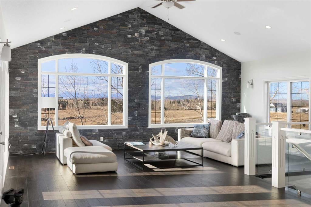 A lifestyle most only dream of! Historic Rocky Mountain views - just 8 minutes to Cochrane! Gorgeous custom-designed two-storey home featuring 4 bedrooms and 3.5 baths, with over 4900 sqft of developed living, AND 1,200 sq.ft. of wraparound decking on two levels.