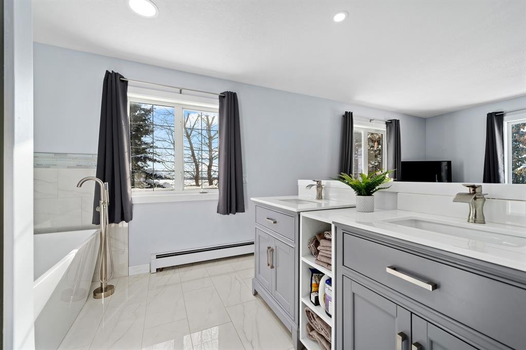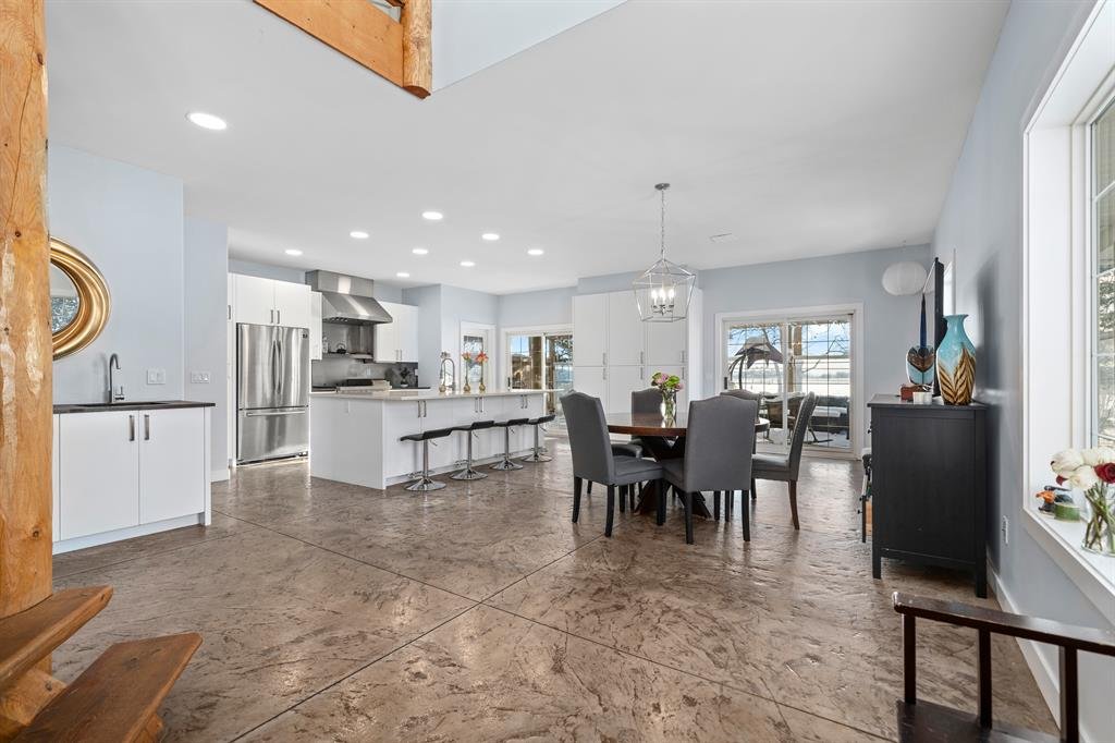 RARE LIVE/WORK OPPORTUNITY WITH EXCELLENT ROAD EXPOSURE FOR YOUR BUSINESS! 3.35 ACRES, ZONED C-HWY (MIXED USE, SEE SUPPLEMENTS FOR DETAILS). This one-of-a-kind property is located 10 minutes north of Cochrane (HWY 22 & HWY 567) and offers a fully renovated 2751 SQ FT home with a 4169 SQ FT commercial space. The bright and open main floor features a spacious living room with office space, a cozy dining room, and a 3 piece bath/laundry all highlighted by gorgeous stamped concrete floors. The luxurious chef’s kitchen offers quartz countertops, a spacious island/breakfast bar, a coffee station with a second sink, ample cabinet space, and high-end appliances – perfect for entertaining and the at-home gourmet. Upstairs, relax in the primary retreat which includes an upscale 5-piece ensuite (relaxing soaker tub, stand-up shower, double sinks), a large walk-in closet, and views of the Rocky Mountains. Completing the upstairs are 3 additional bedrooms, a 4 piece bathroom, and plenty of storage. You will fall in love with the oversized (49'2" x 21'2" 0), heated/insulated garage where you could easily park 6 vehicles/toys - perfect for a home mechanic, car enthusiast, or tradesperson. The commercial space offers a huge showroom, front desk, office, 2 bathrooms, loft/office, and additional garage. This space is ideal for any entrepreneur or established business. Other features included a custom log wood staircase, a large patio, new chain link fencing & amazing views. Ideally located just minutes from Cochrane and a short commute to Calgary this property offers huge potential and would be hard to recreate. Please reach out for more details and to arrange a private viewing. *** RESIDENTIAL - 2751 SQ FT, COMMERCIAL - 4169 SQ FT. ***